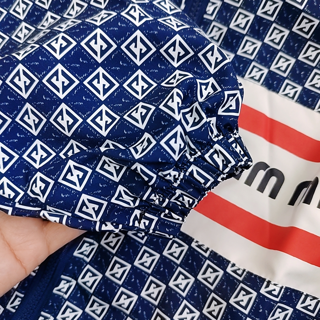 外套蓝色基地搭配白色几何图案,瞬间提升了整体酷炫感。