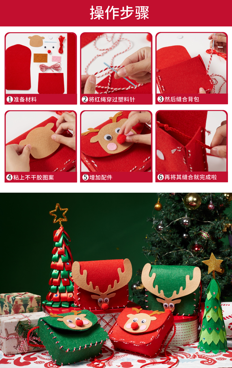 圣诞节手工diy幼儿园儿童制作材料包圣诞不织布背包