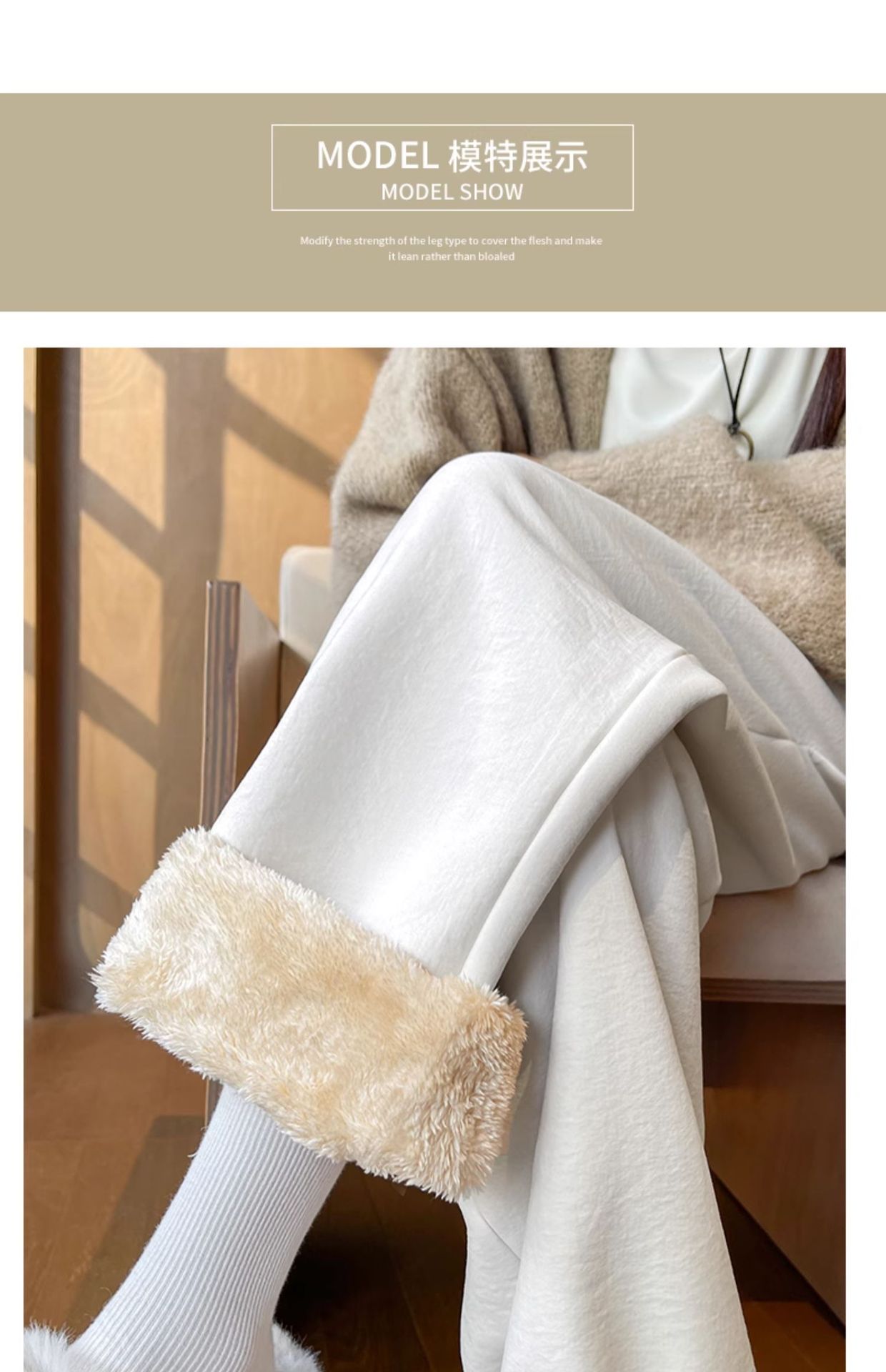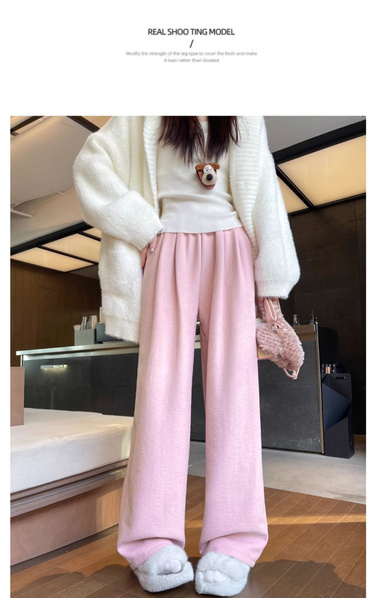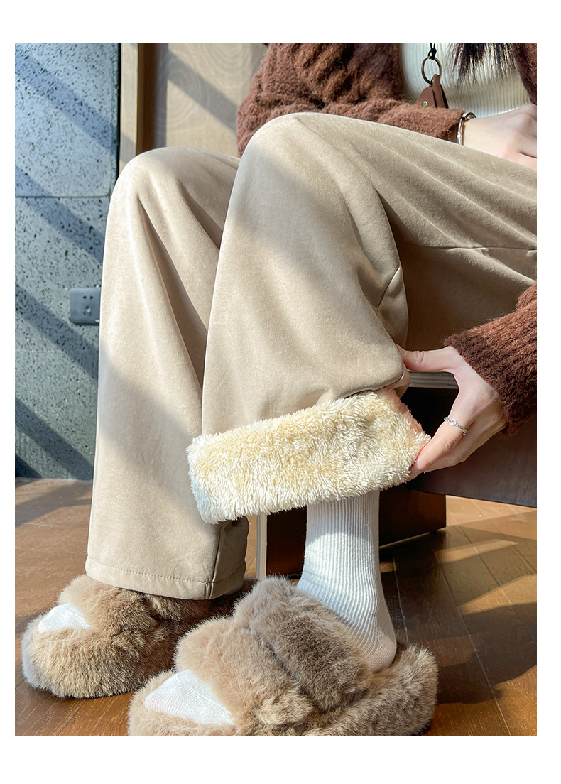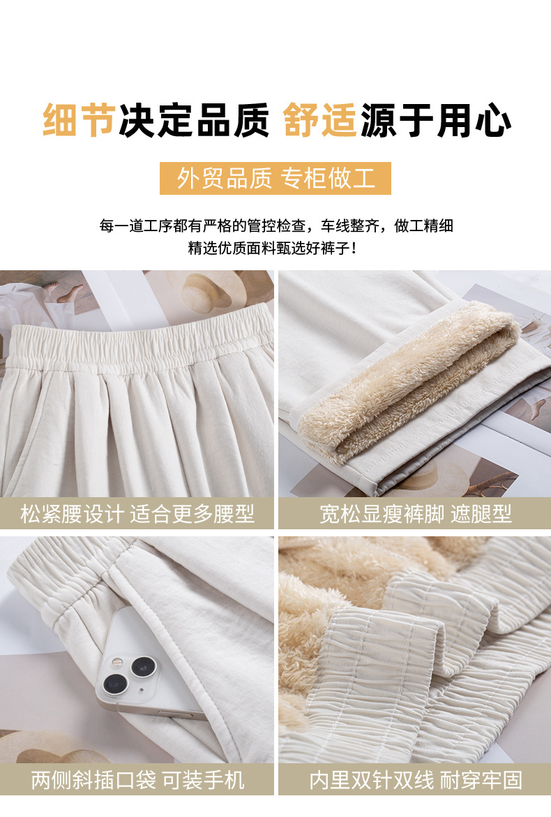 「加绒奶芙阔腿裤」白色奶芙山本裤女秋冬季加绒加厚保暖棉裤外穿羊羔绒防风阔腿裤子
