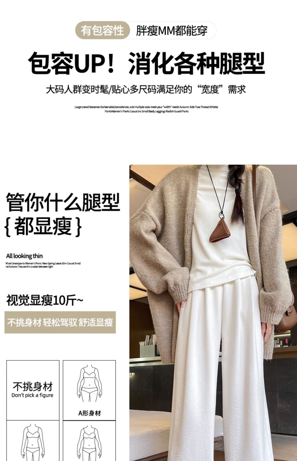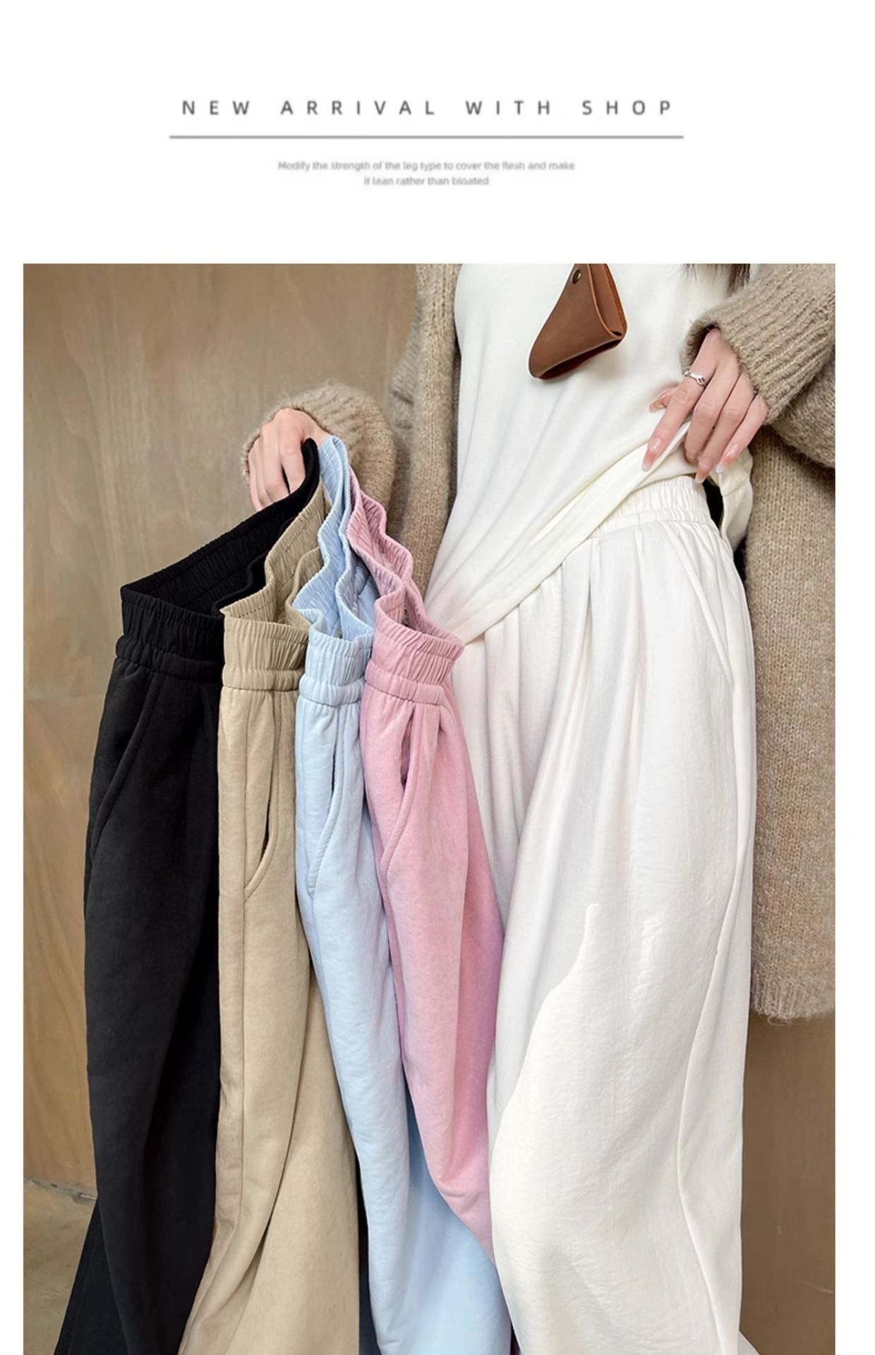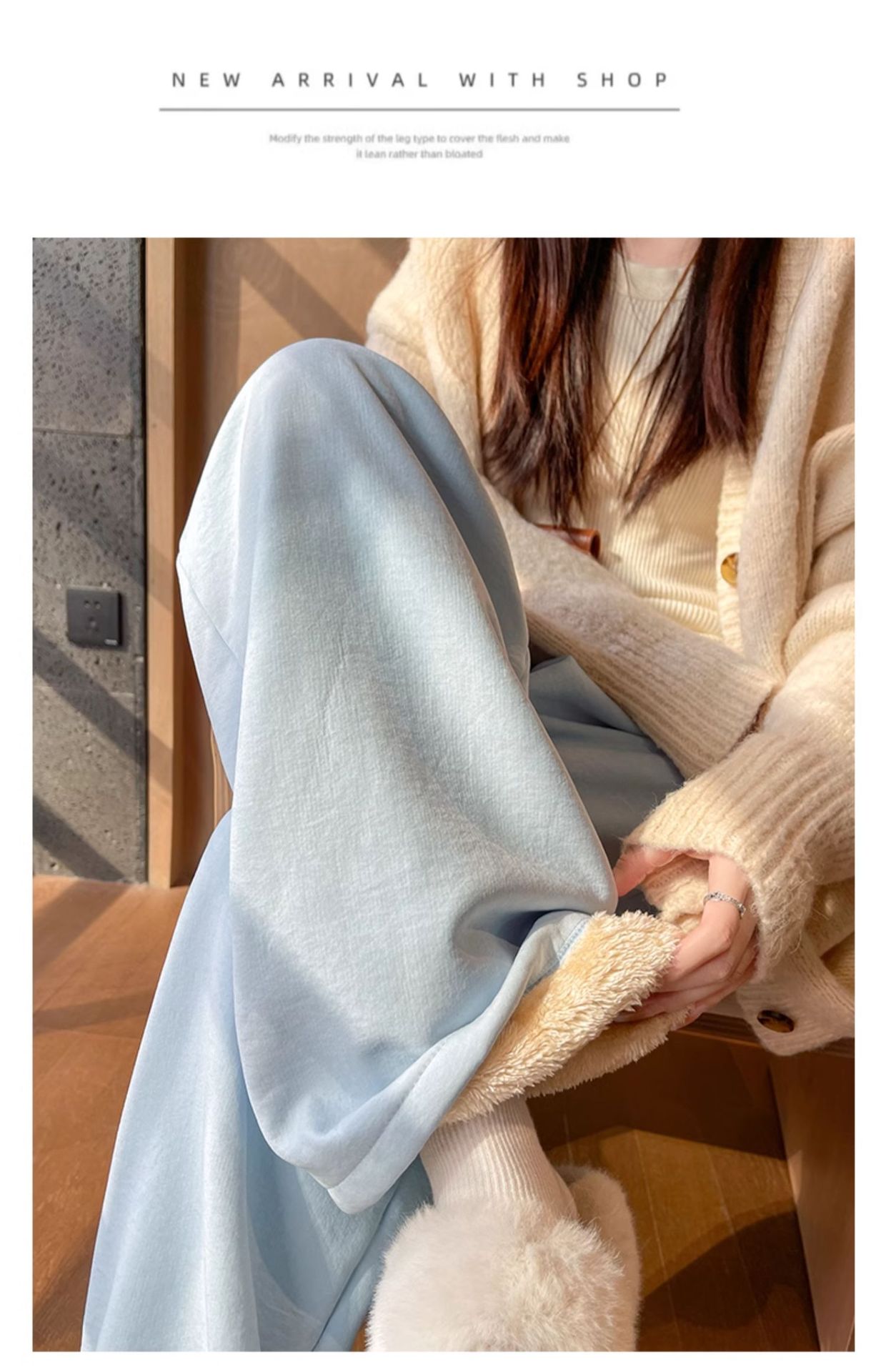 「加绒奶芙阔腿裤」白色奶芙山本裤女秋冬季加绒加厚保暖棉裤外穿羊羔绒防风阔腿裤子