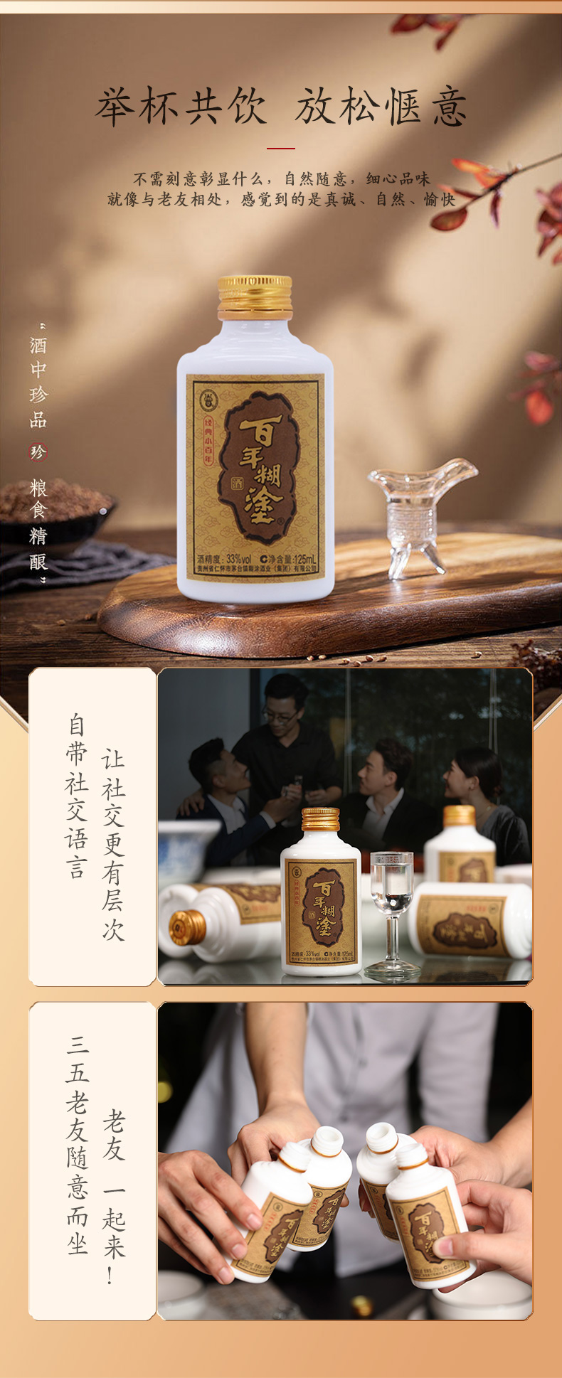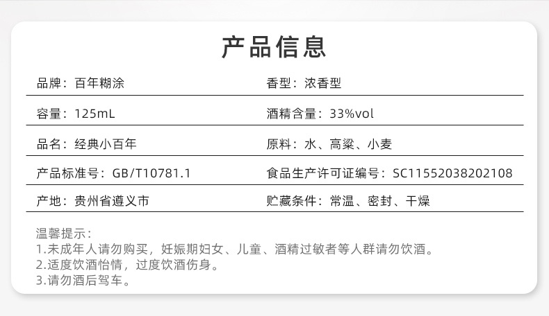 【积分限量购】百年糊涂浓香型白酒33度/52度125mL*24瓶 经典小百年