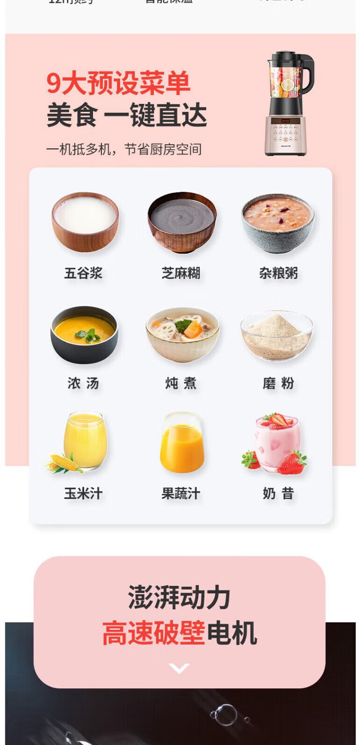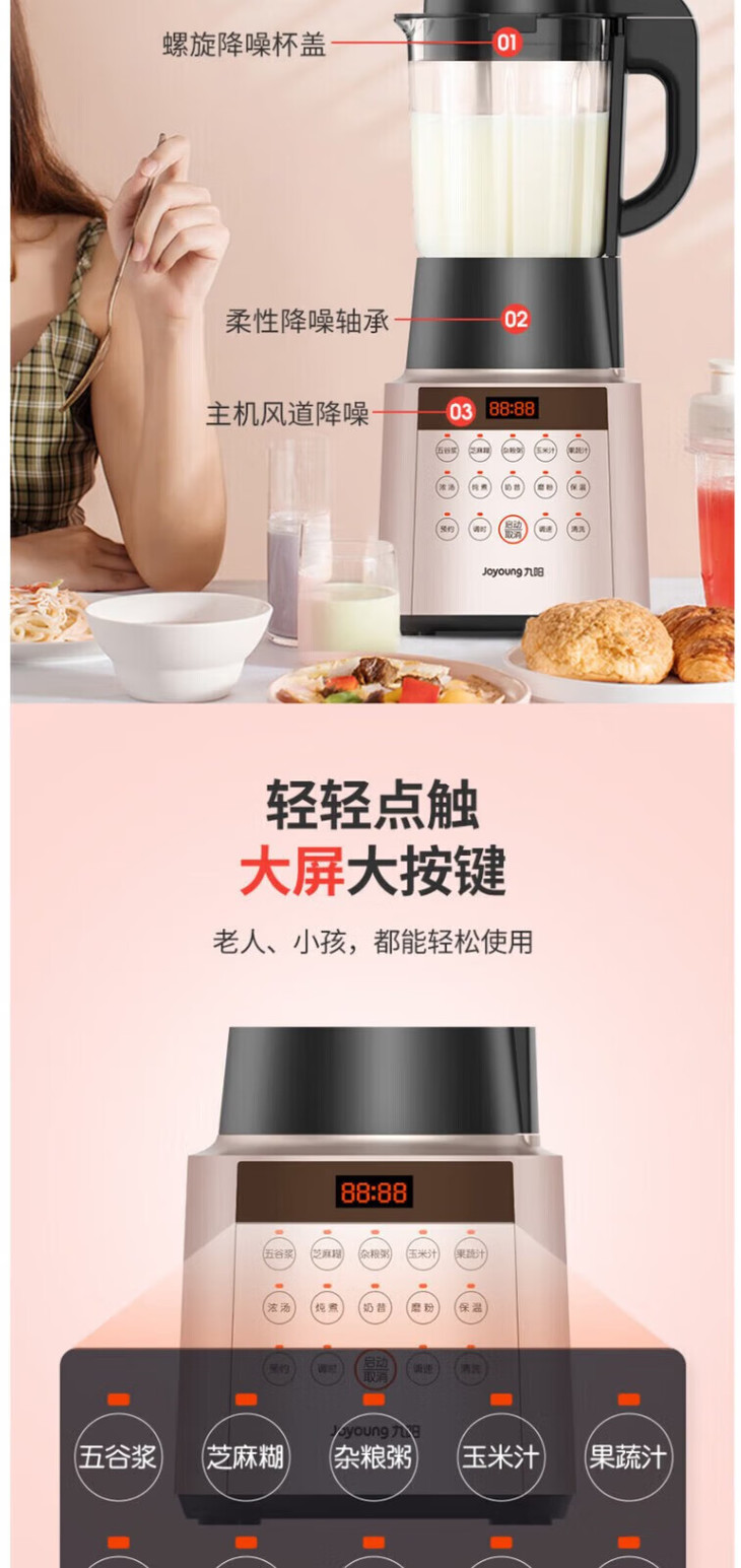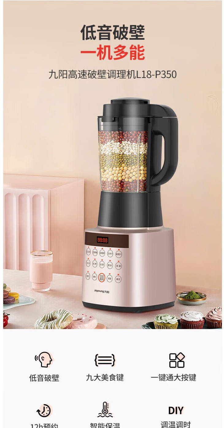 九阳(13184)(Joyoung) L18-P350 破壁机 低音破壁机预约加热破壁料理机辅食家用豆浆机榨汁机多功能搅拌机