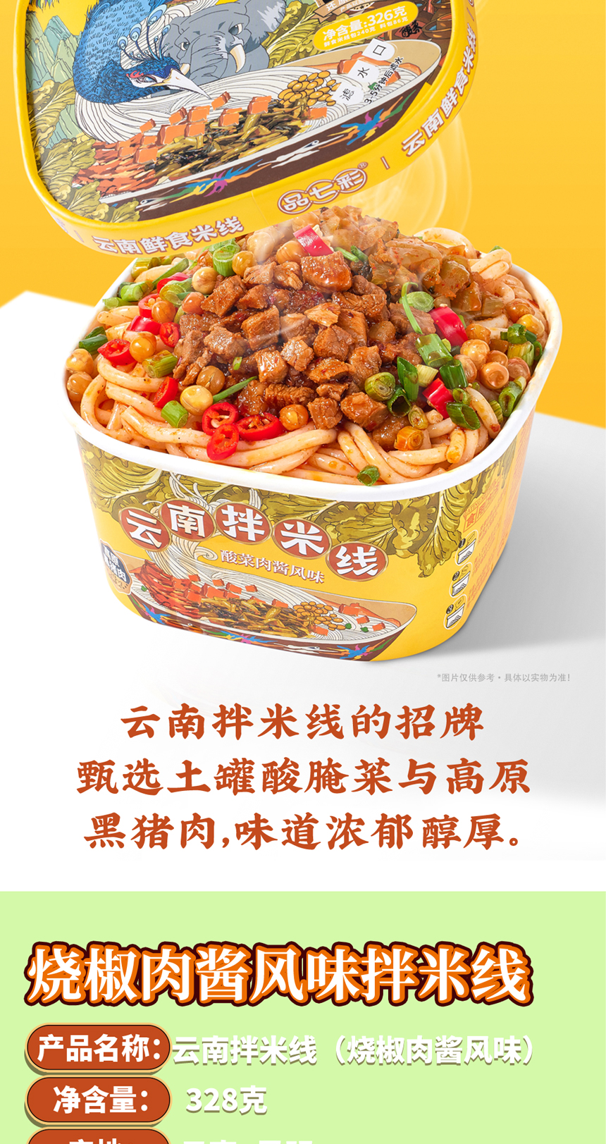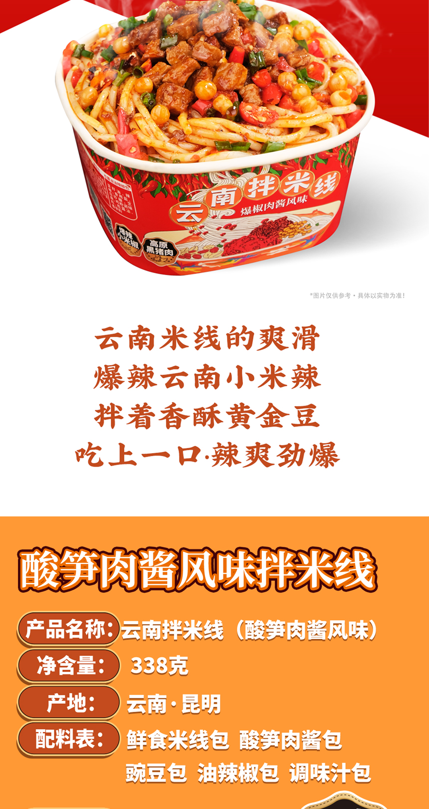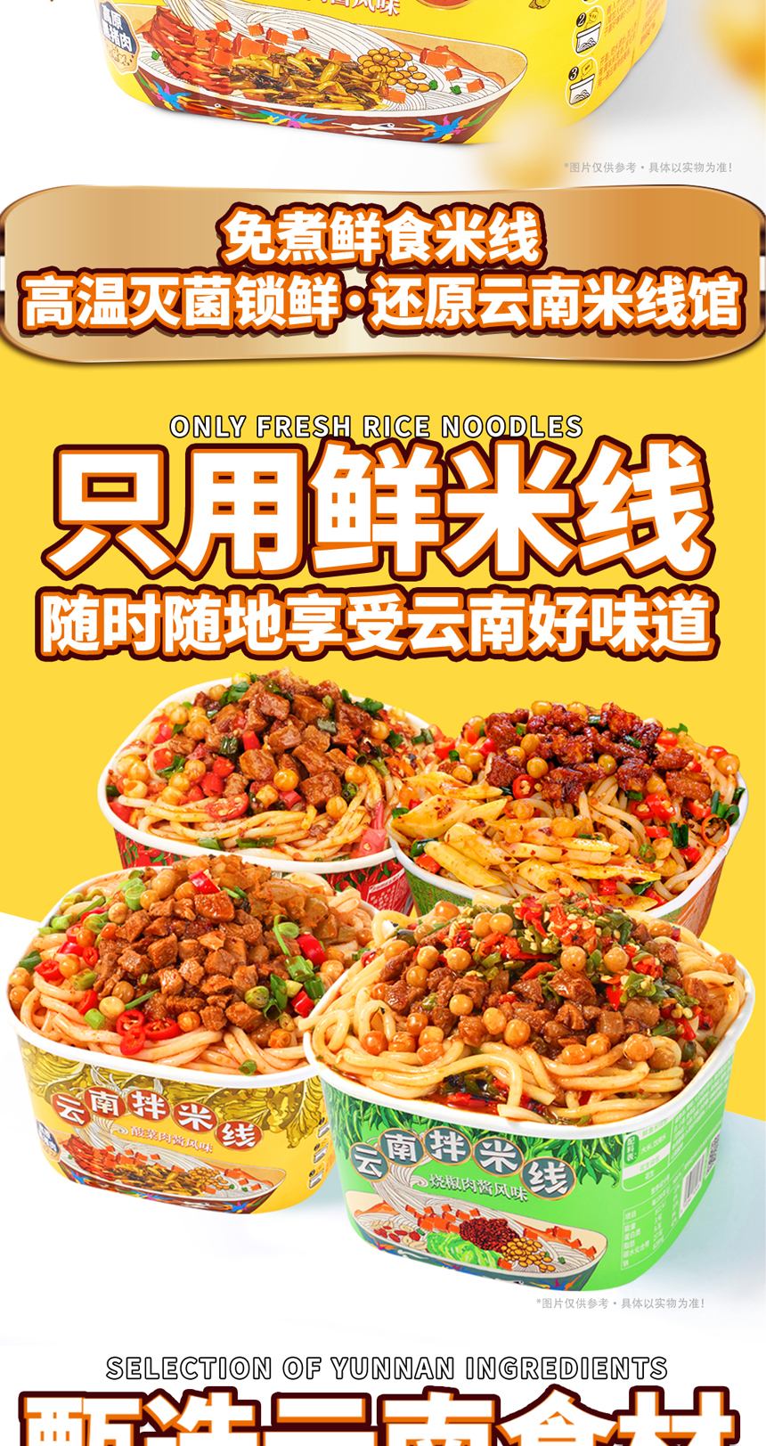 云南碗装鲜食免煮拌米线 (烧椒肉酱风味+酸菜肉酱风味+爆椒肉酱风味+酸笋肉酱风味多重风味)香辣 酸爽 鲜香 纯正口感 舌尖上的云南之旅 吃一次就上瘾!