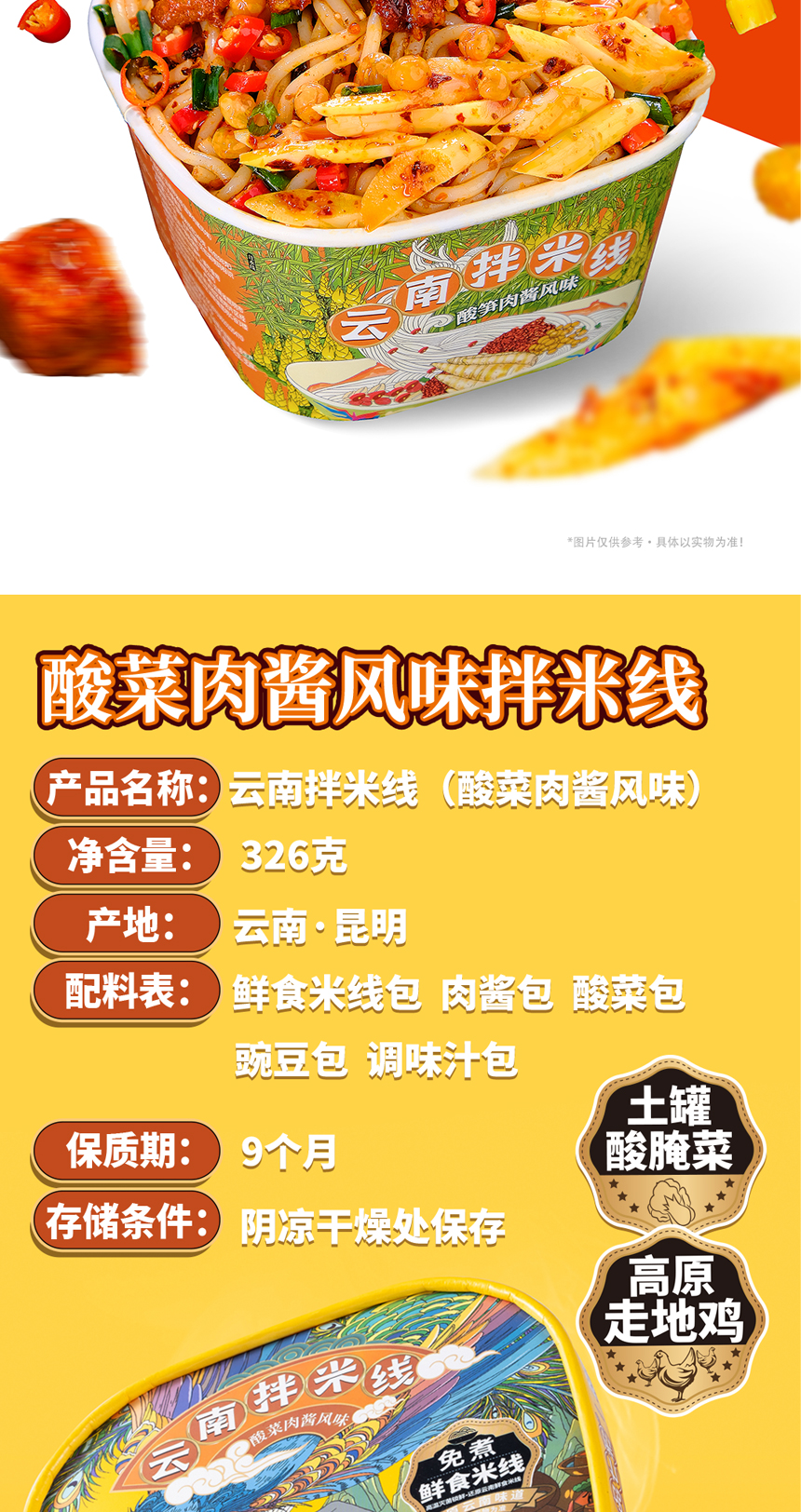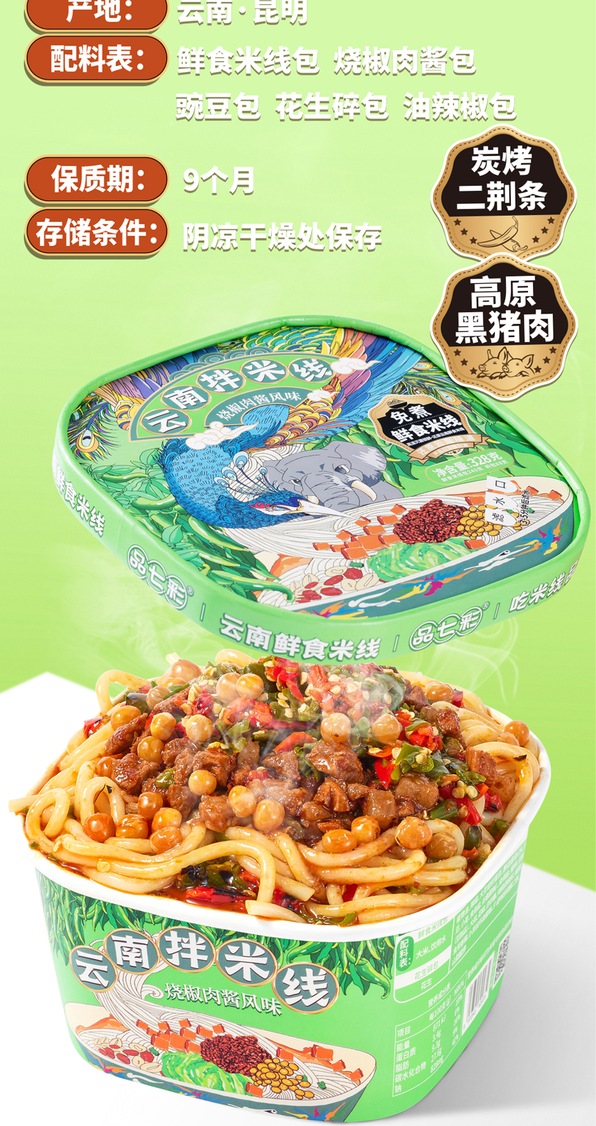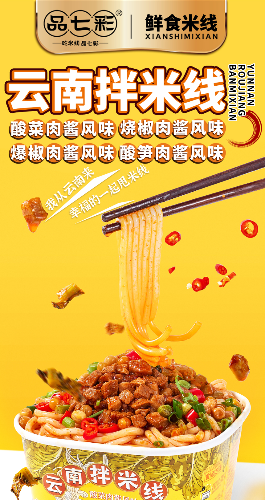 云南碗装鲜食免煮拌米线 (烧椒肉酱风味+酸菜肉酱风味+爆椒肉酱风味+酸笋肉酱风味多重风味)香辣 酸爽 鲜香 纯正口感 舌尖上的云南之旅 吃一次就上瘾!