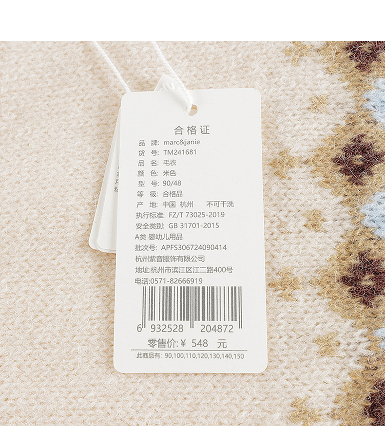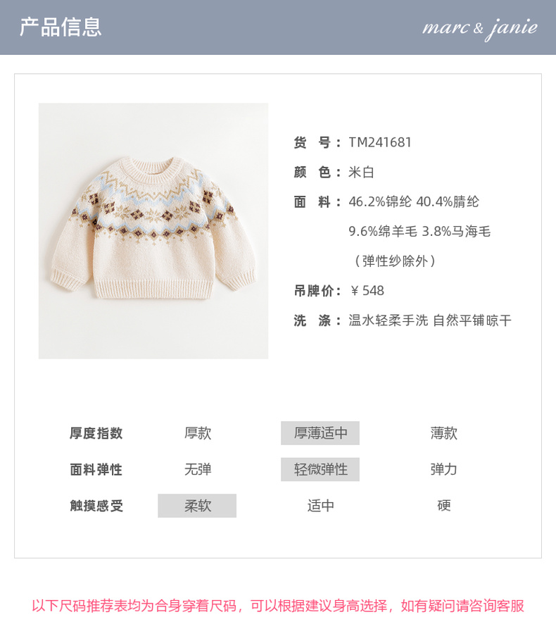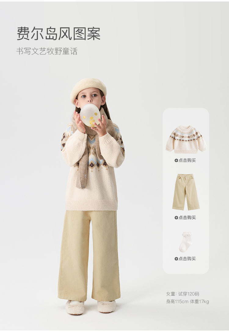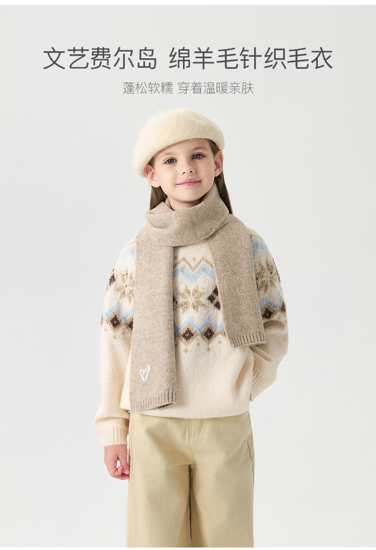 马克珍妮女童文艺费尔岛风绵羊毛针织毛衣2024年秋冬新款241681