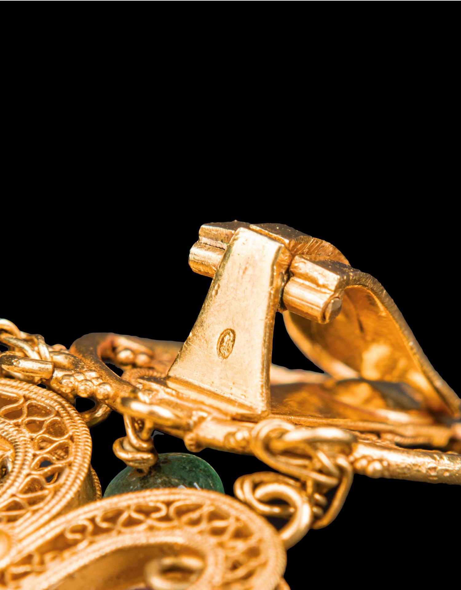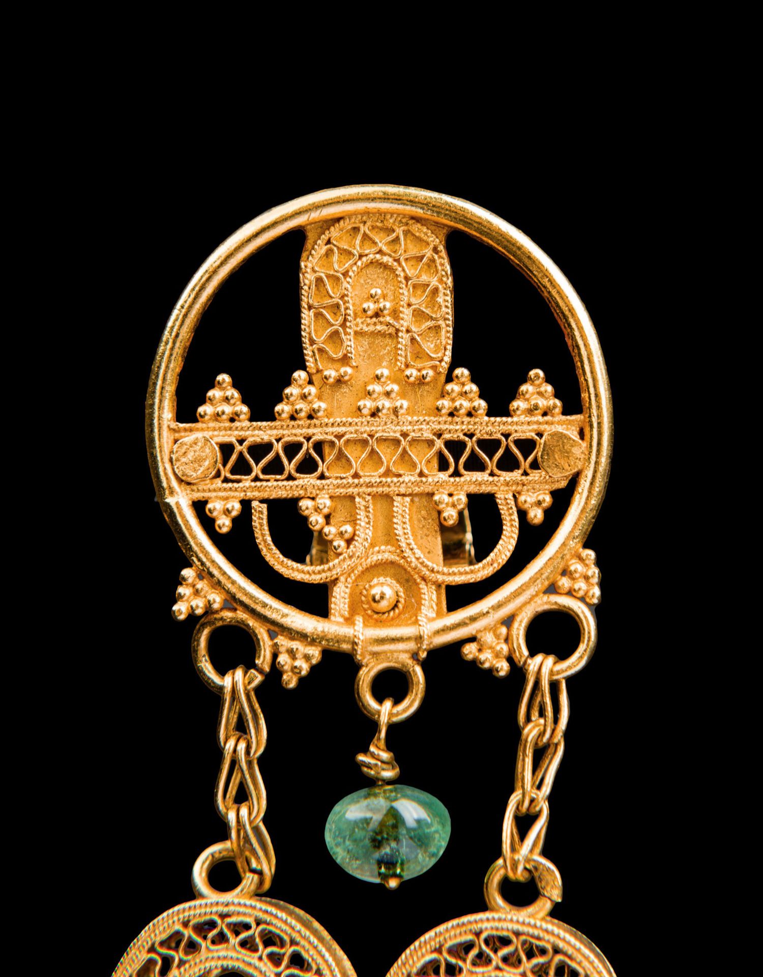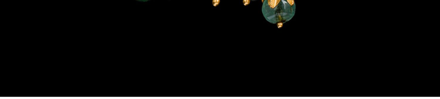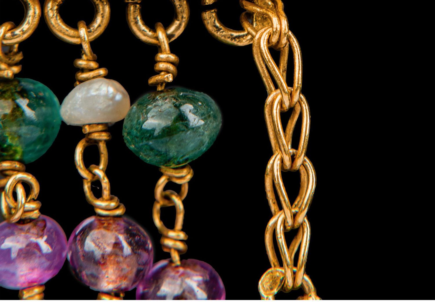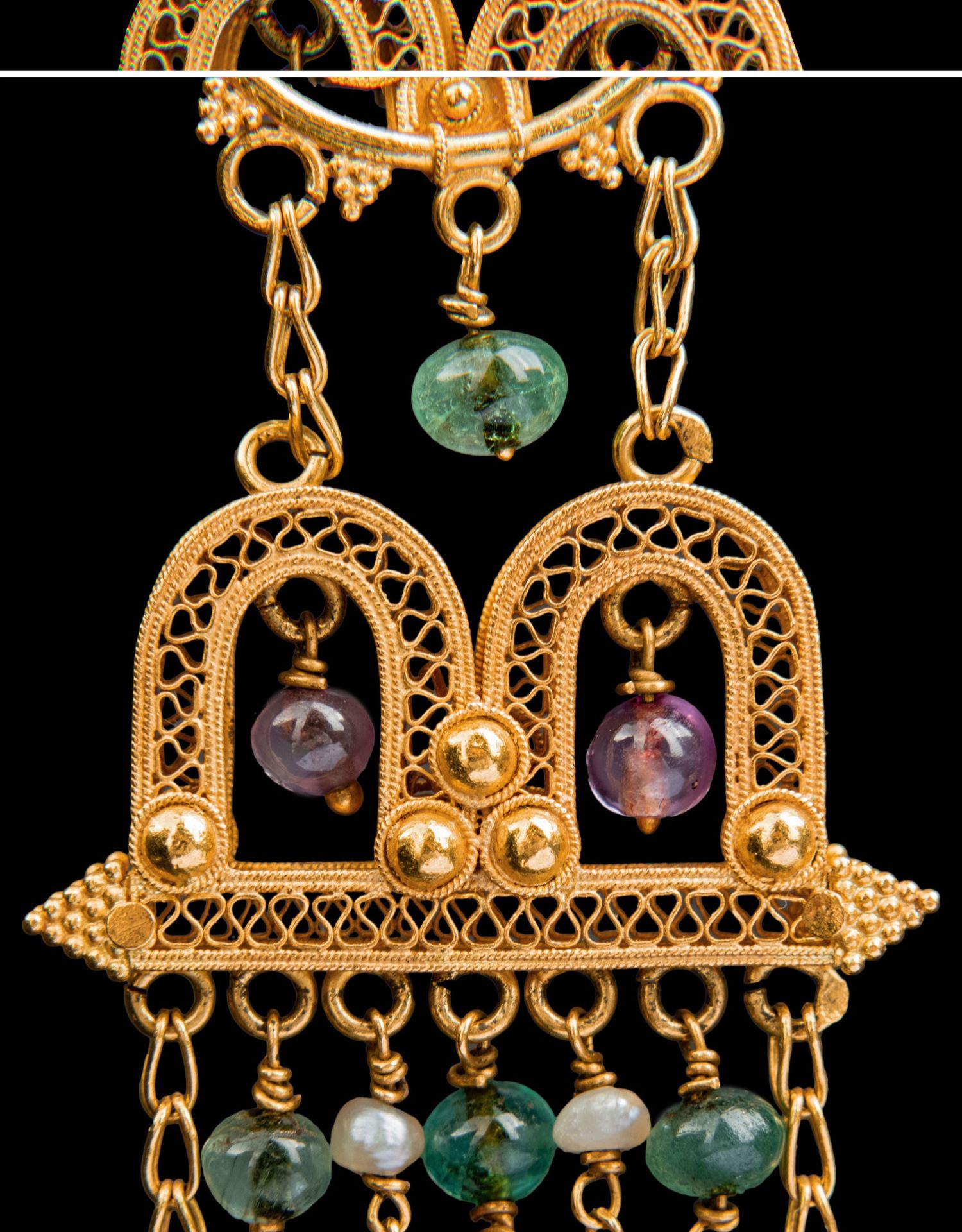 独角鹿西洋古董珠宝希腊18K金镶祖母绿粉色蓝宝石珍珠耳坠耳环