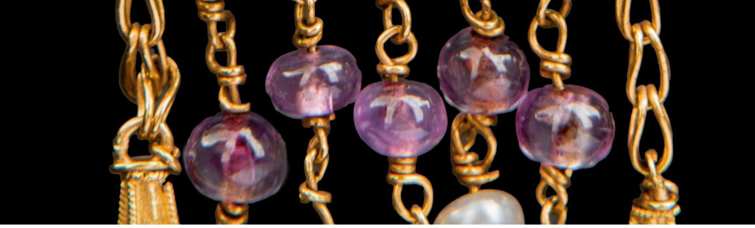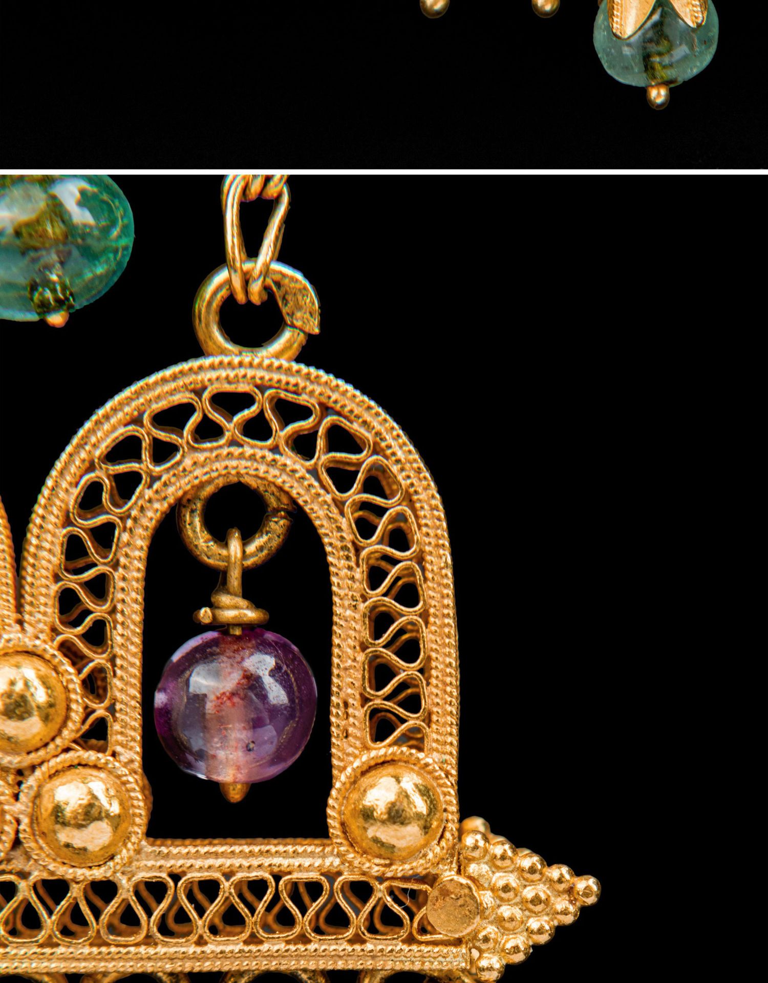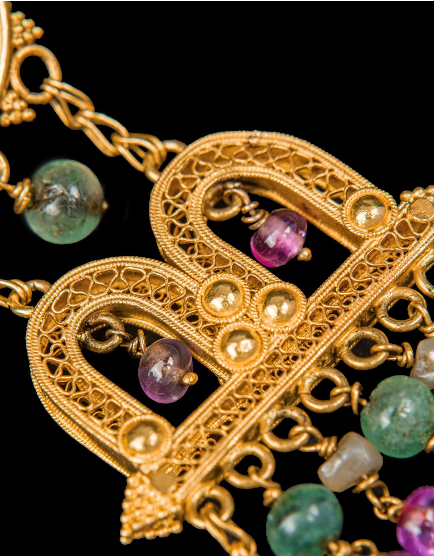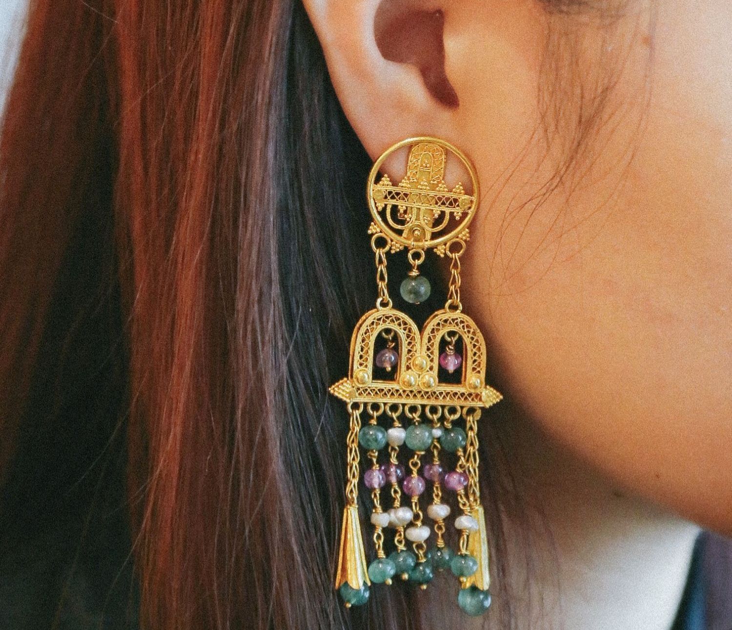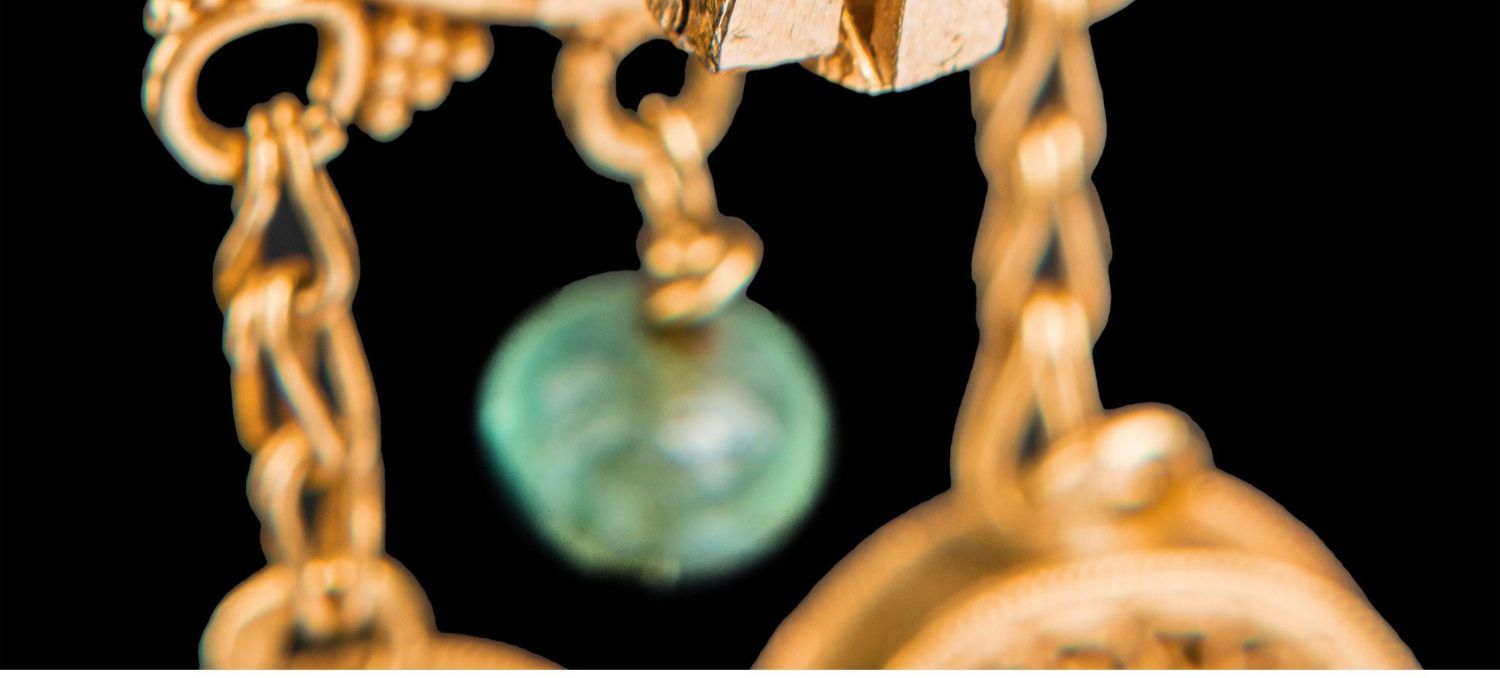 独角鹿西洋古董珠宝希腊18K金镶祖母绿粉色蓝宝石珍珠耳坠耳环