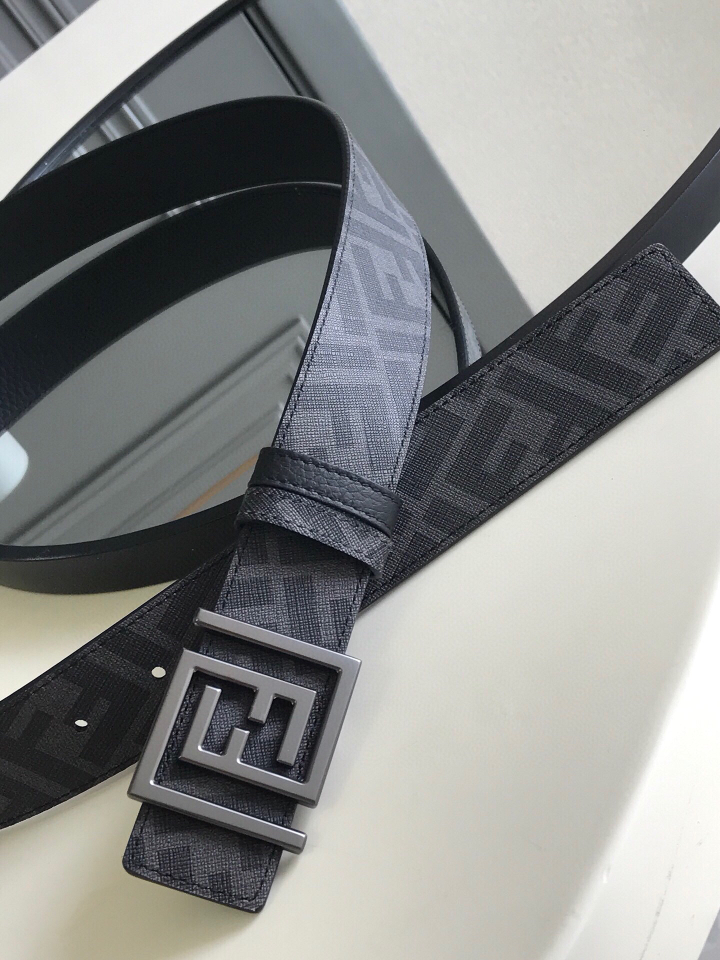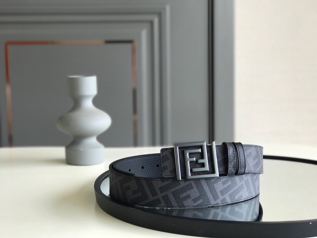 秋季特惠💰380 芬迪 新品 男士腰带 亮面双F标志 意大利进口小平纹牛皮