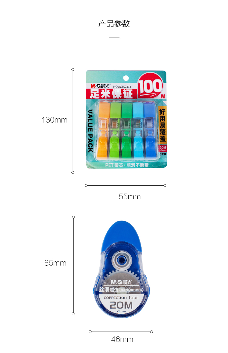 晨光(M&G)文具20m*5mm学生修正带 简约时尚涂改带 丝滑改正带 5支装ACT52314