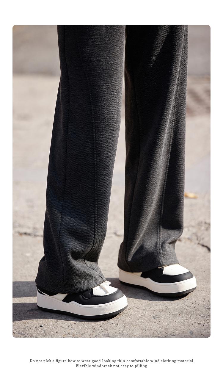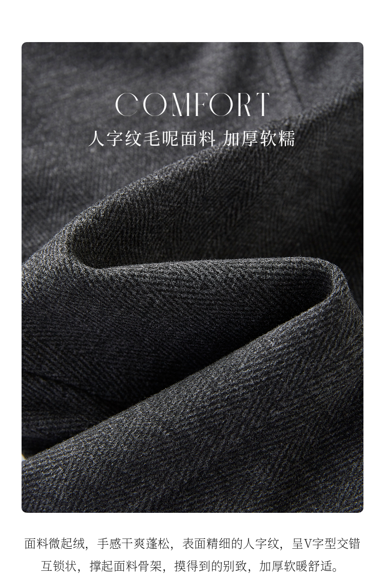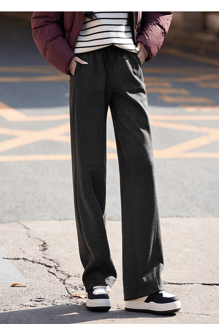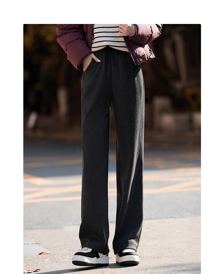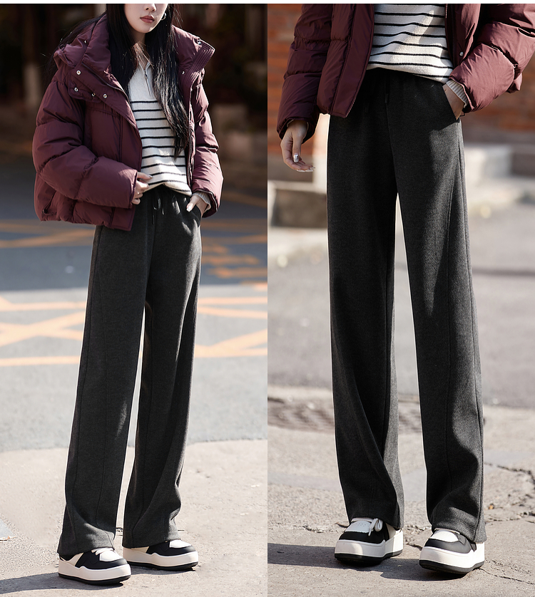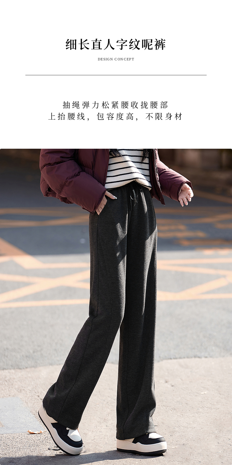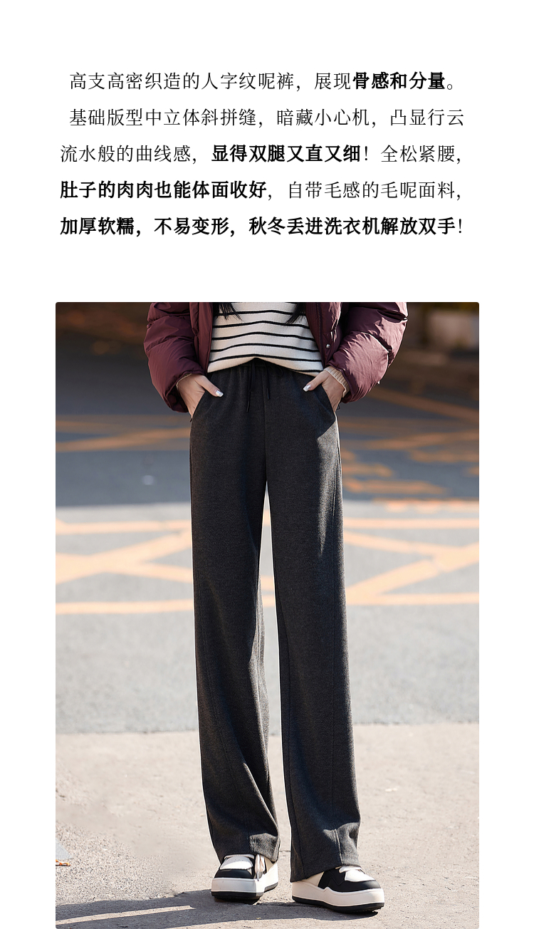 【年终特卖】熙世界人字纹窄版阔腿裤女秋冬新款高腰运动卫裤宽松直筒毛呢裤子
