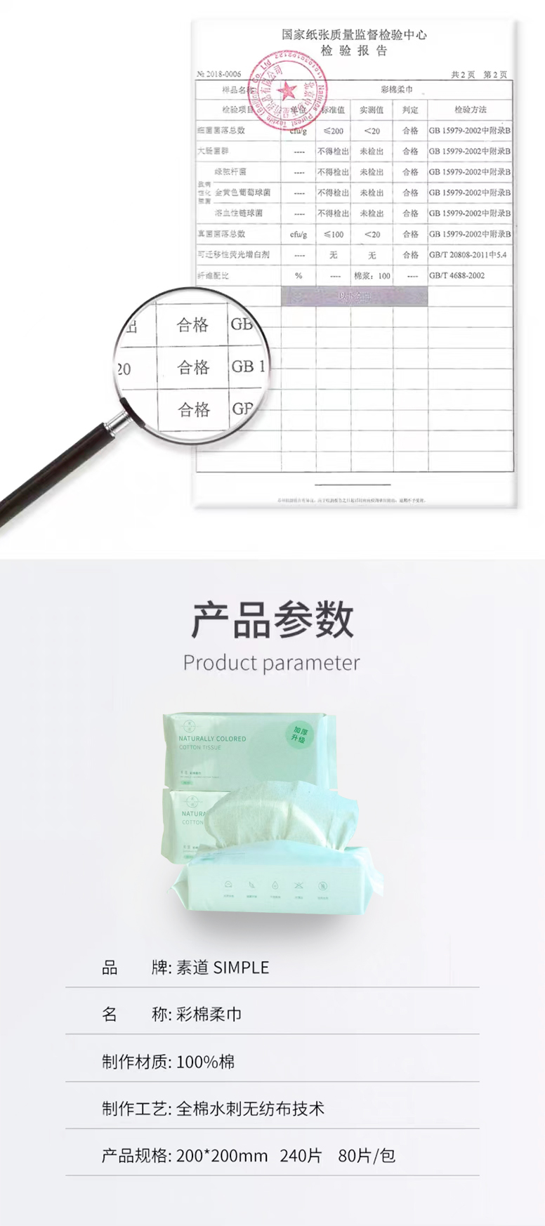 素道有机彩棉柔巾 纯棉 干湿两用 多功能纸巾 尺寸200mm*200mm/张