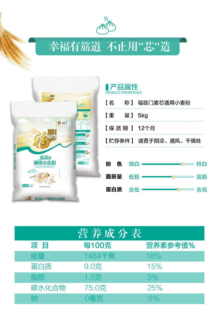 福临门麦芯通用小麦粉5kg
