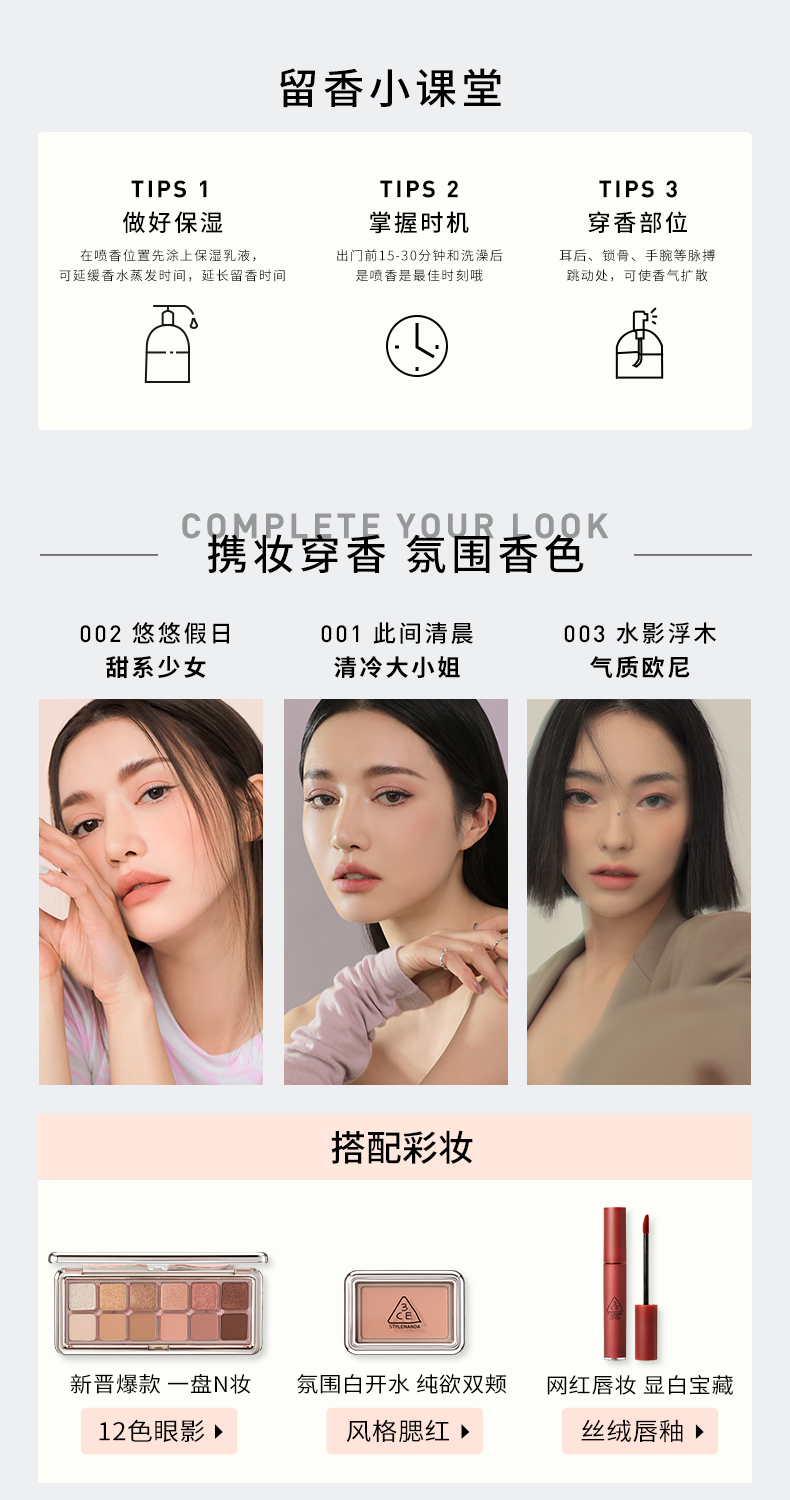 3CE新品女士香水 持久花果香木质调50ml