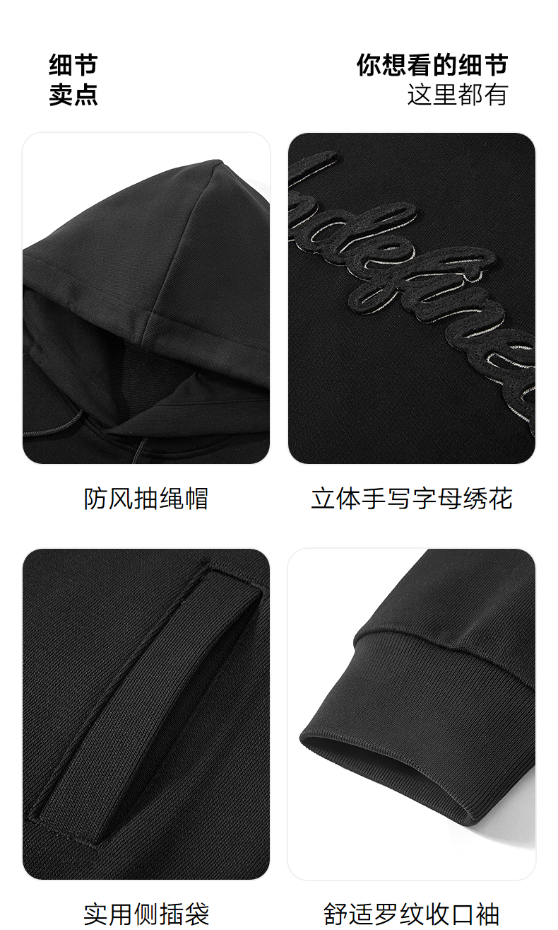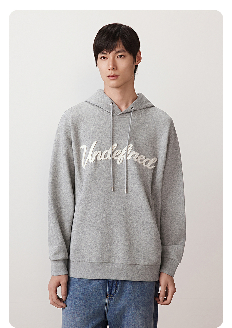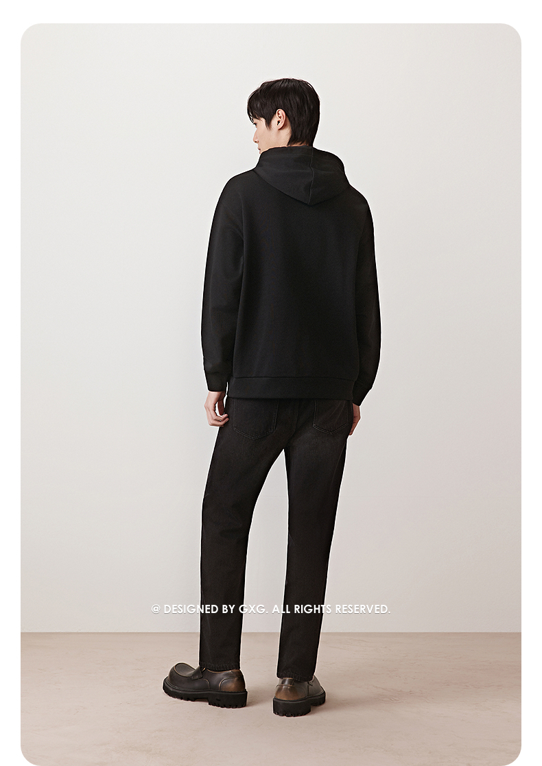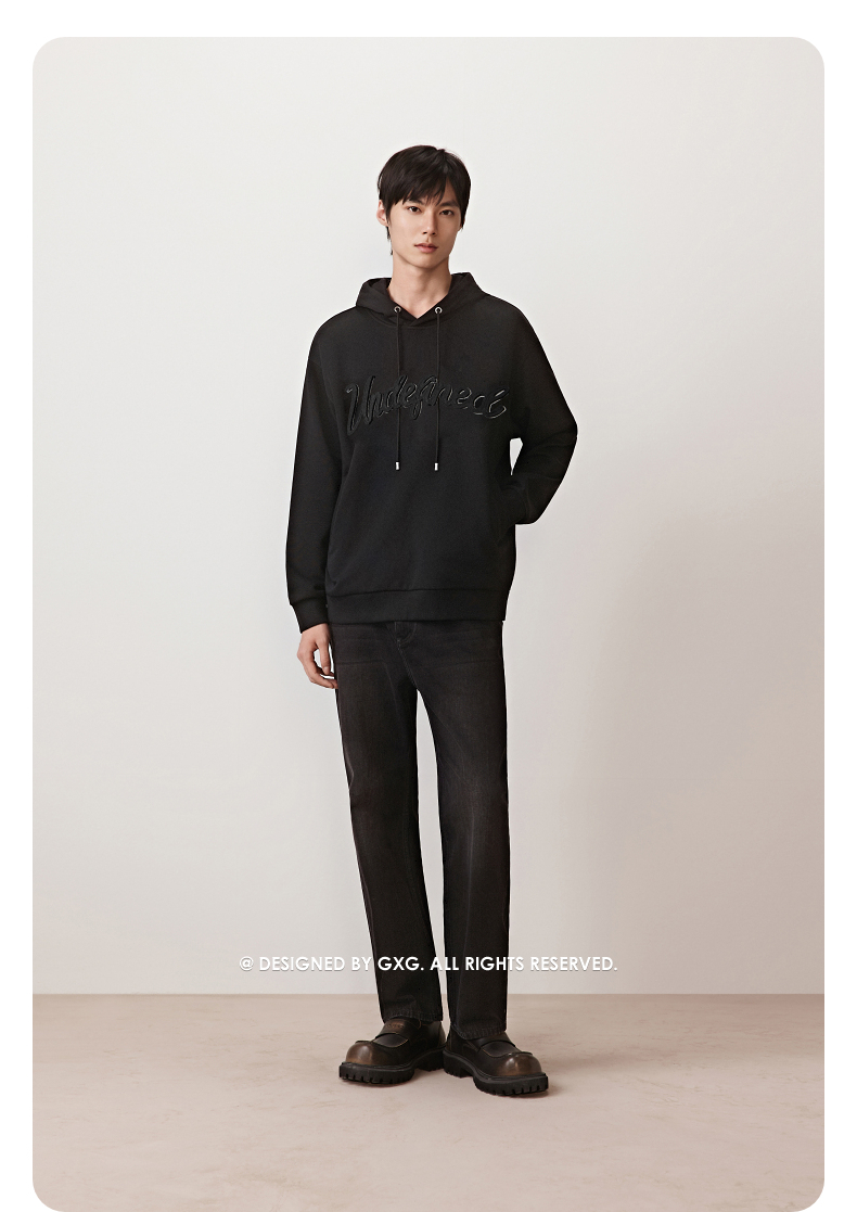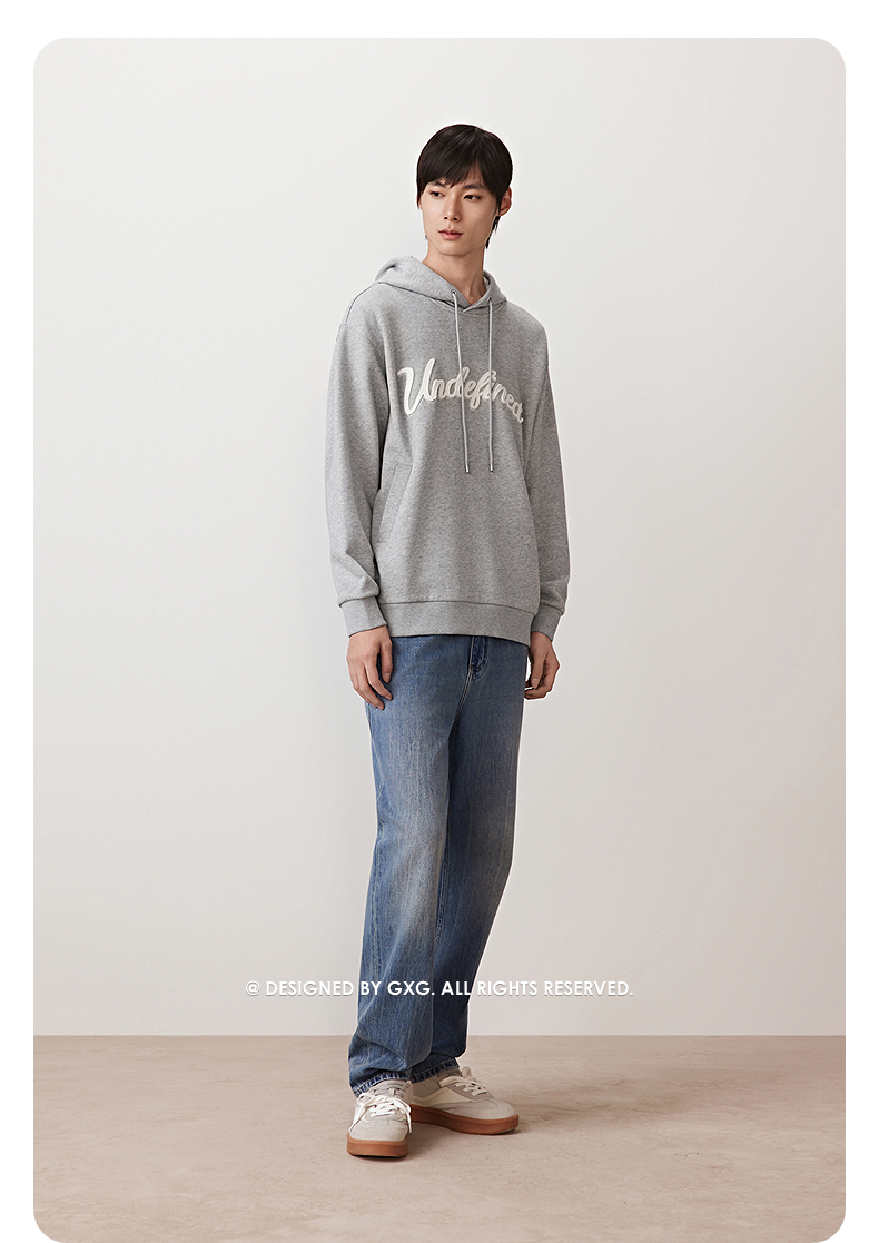 GXG男装 连帽卫衣字母绣花上衣双色长袖内搭 2025秋季新品