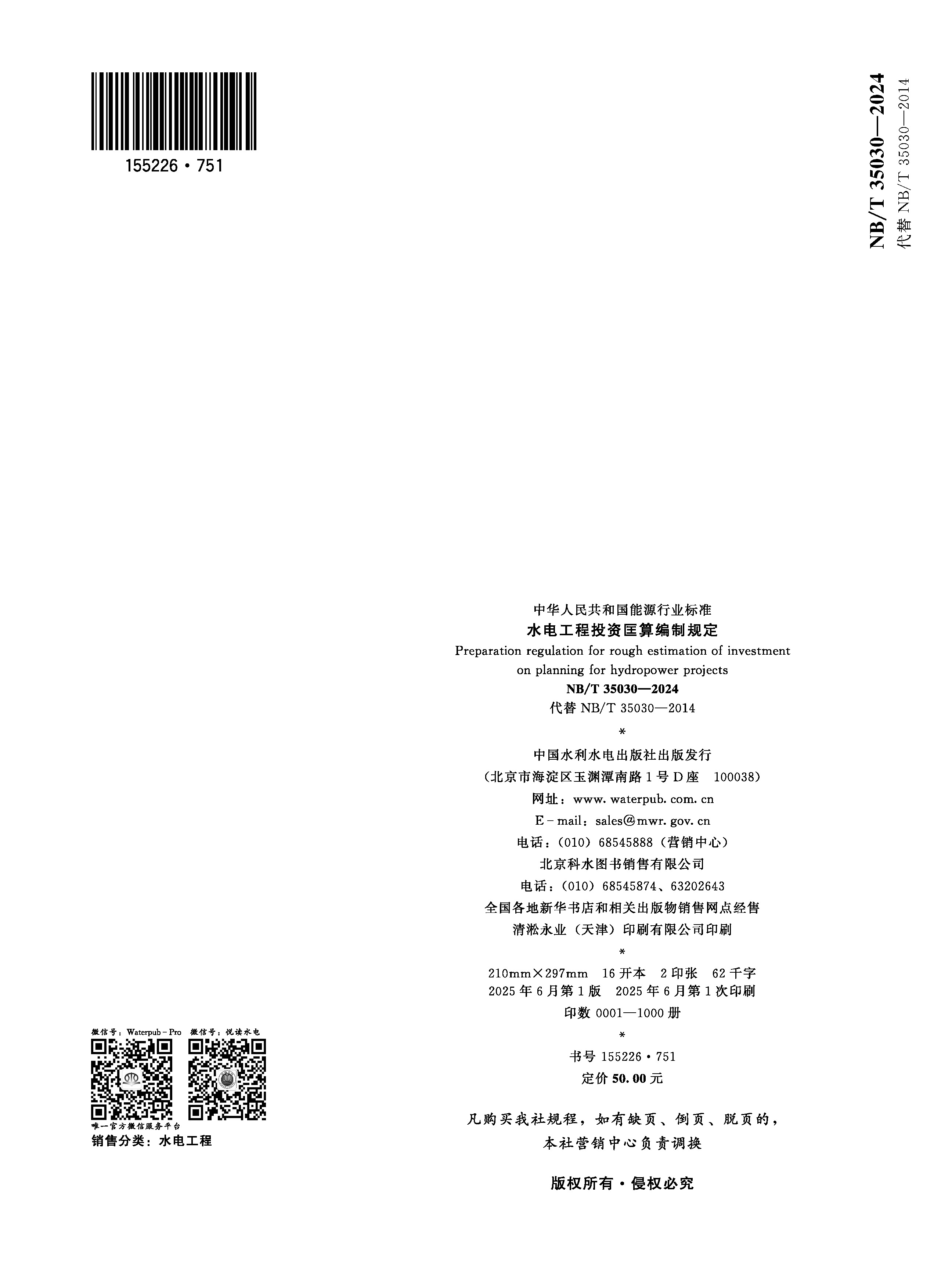 水电工程投资匡算编制规定(NB/T 35030—2024)Preparation regulation for rough estimation of investment on plann...