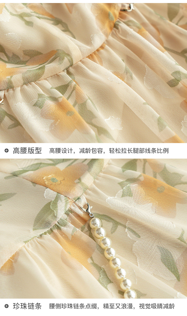 欧芮儿碎花雪纺连衣裙2021春夏新款蕾丝拼接复古提花高腰收腰裙子