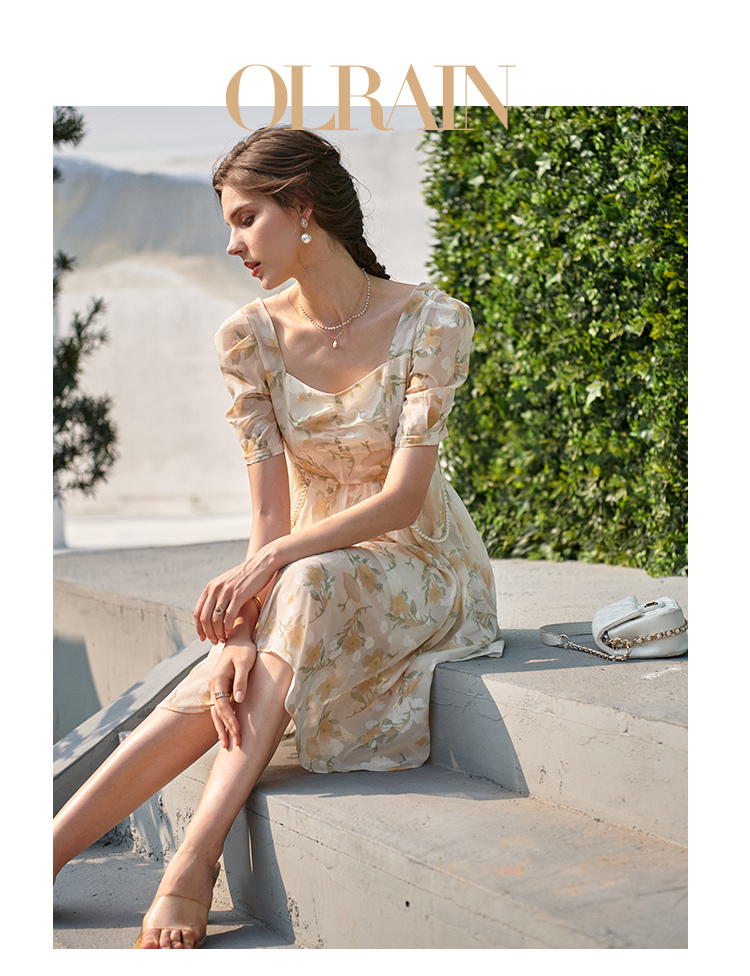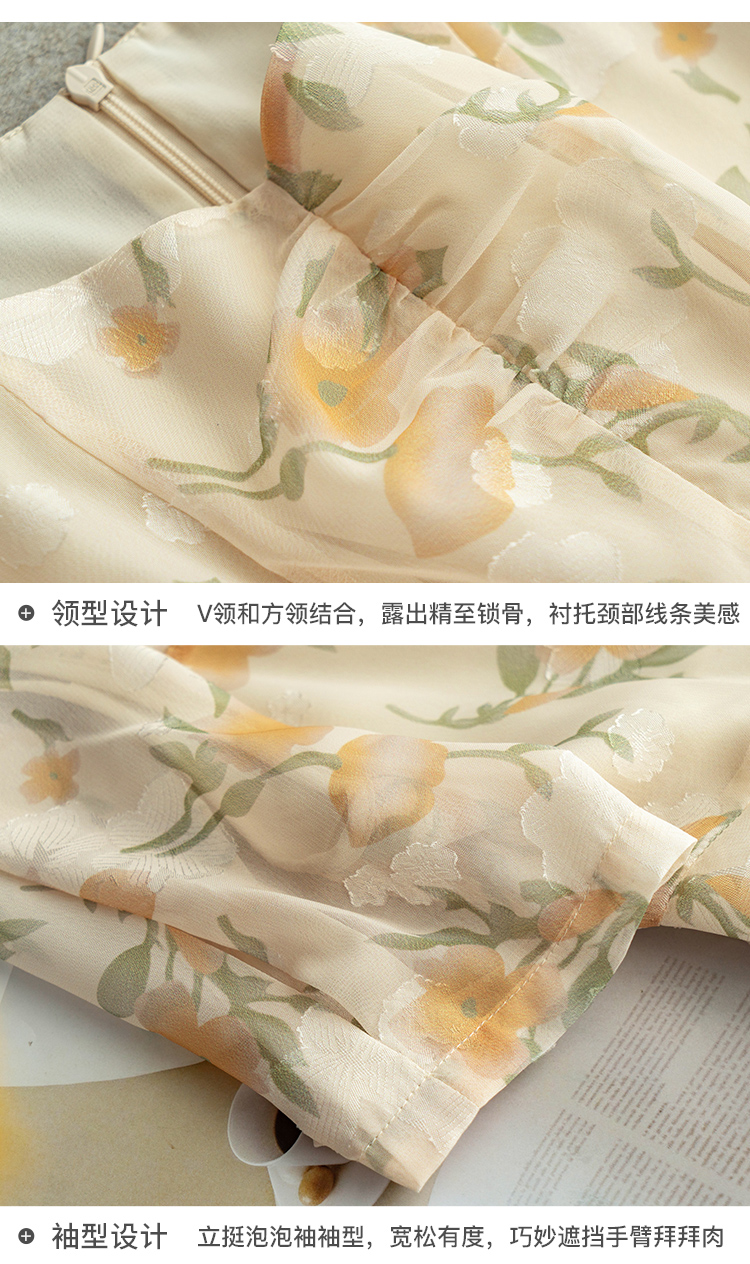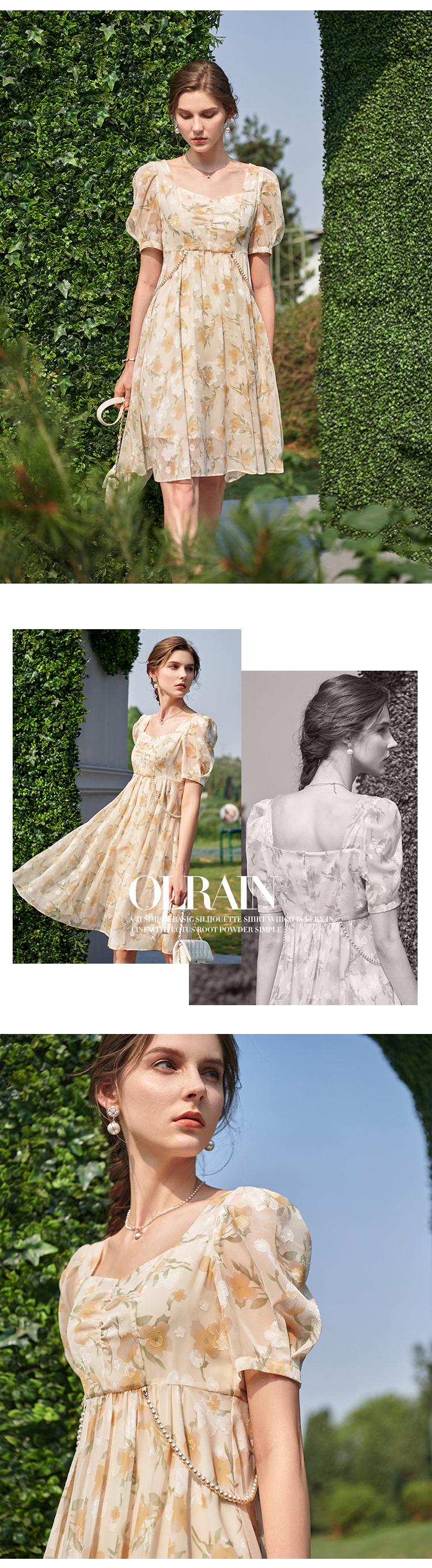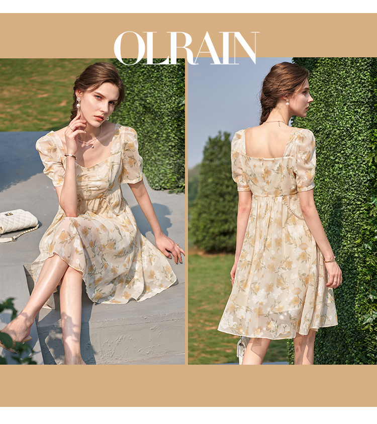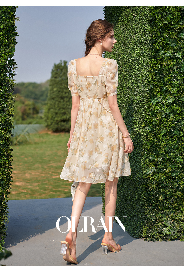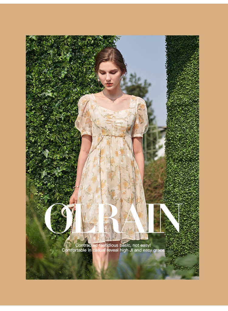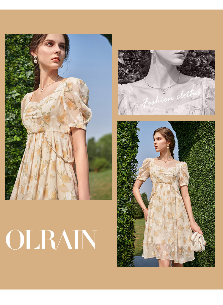 欧芮儿碎花雪纺连衣裙2021新款收腰显瘦v领气质时髦娃娃版裙