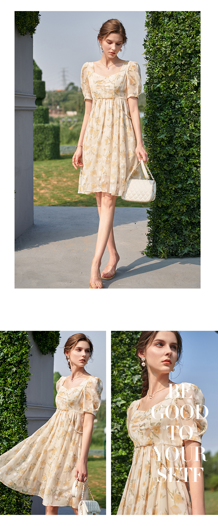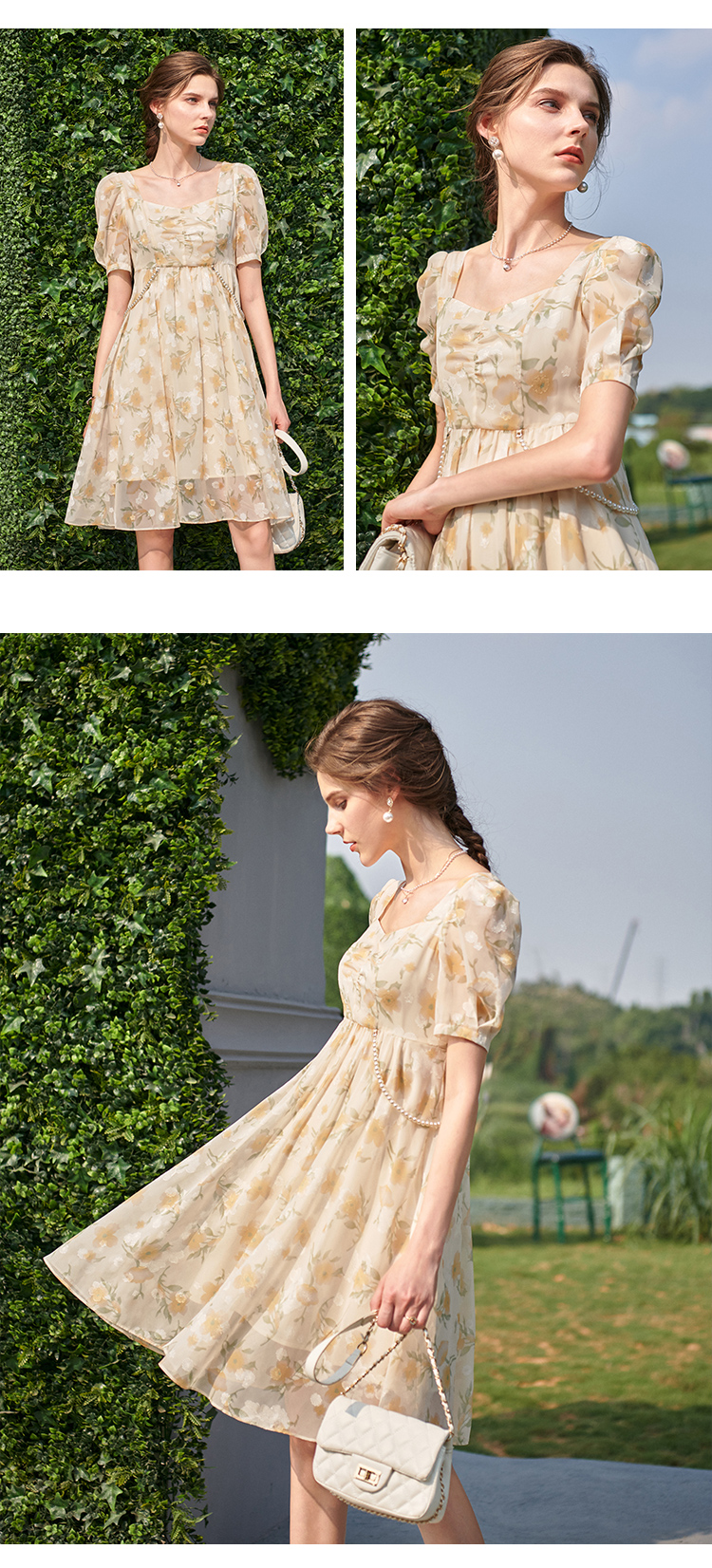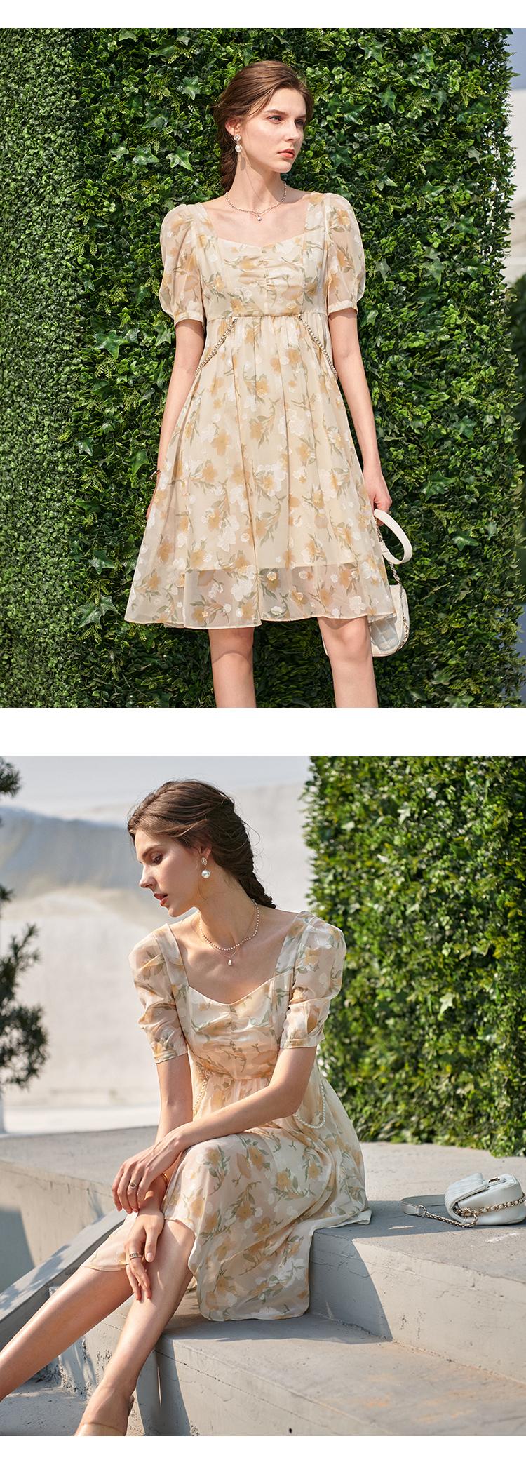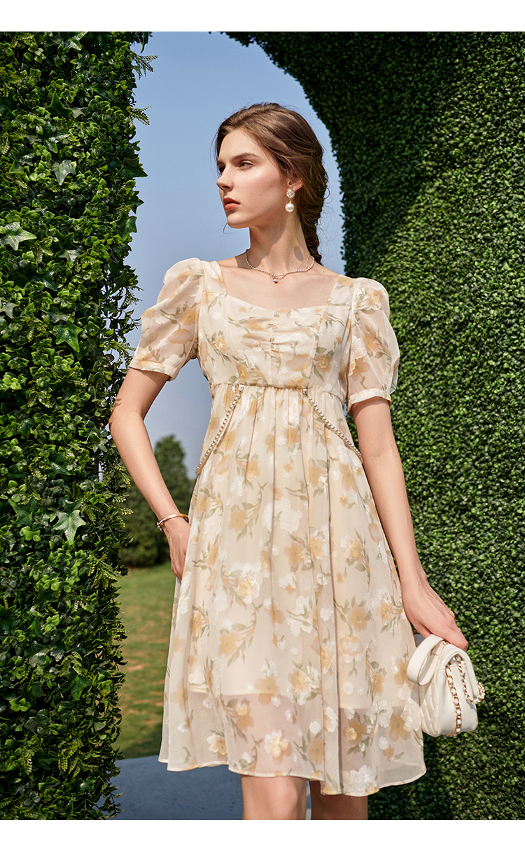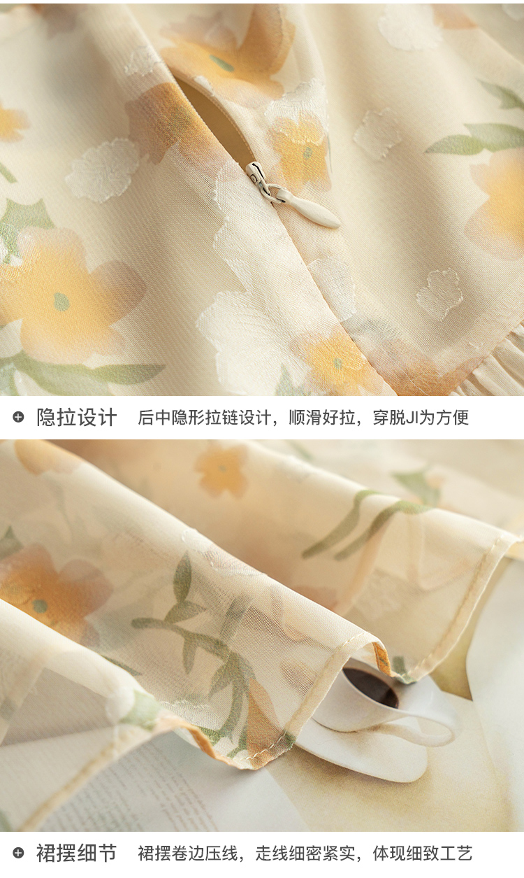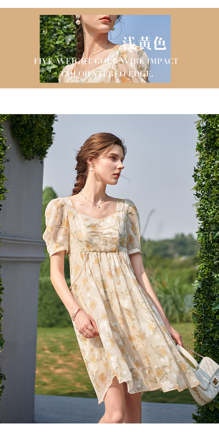 欧芮儿碎花雪纺连衣裙2021新款收腰显瘦v领气质时髦娃娃版裙