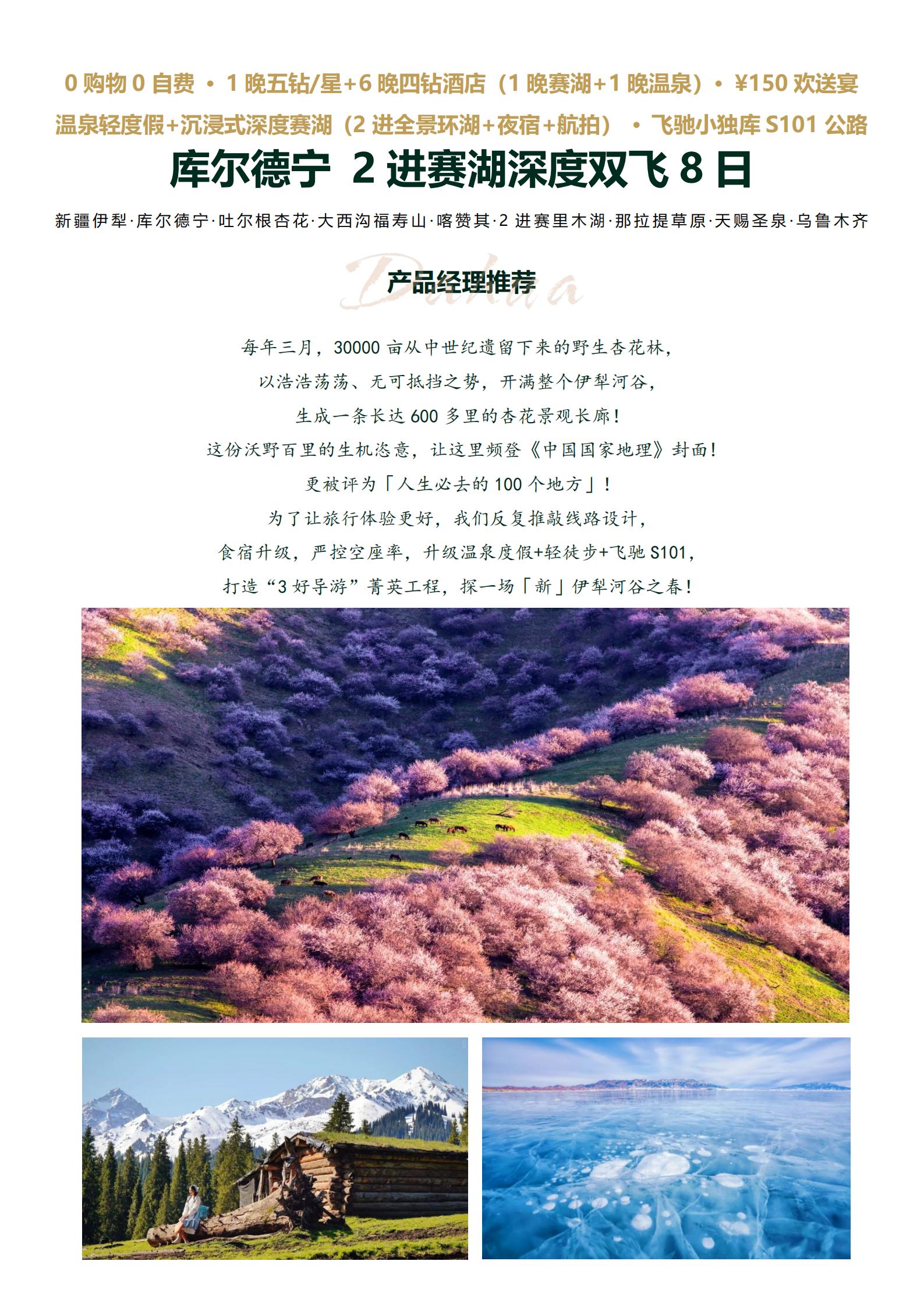 【清明 赏花】<新疆8天双飞纯玩团>伊犁 · 库尔德宁 · 吐尔根杏花 · 大西沟福寿山 · 喀赞其 · 2进赛里木湖 · 那拉提草原 · 天赐圣泉 · 乌鲁木齐