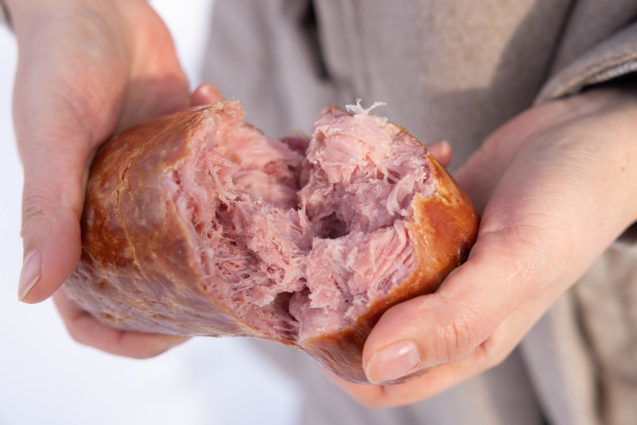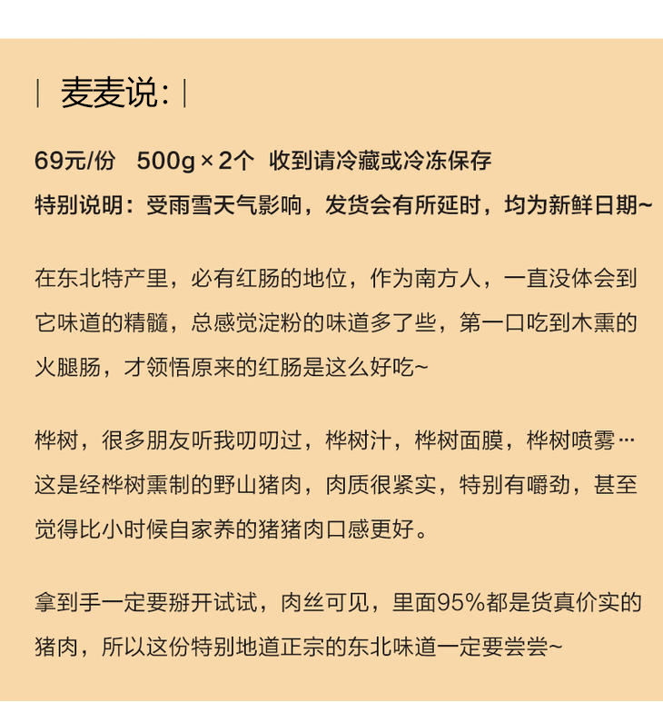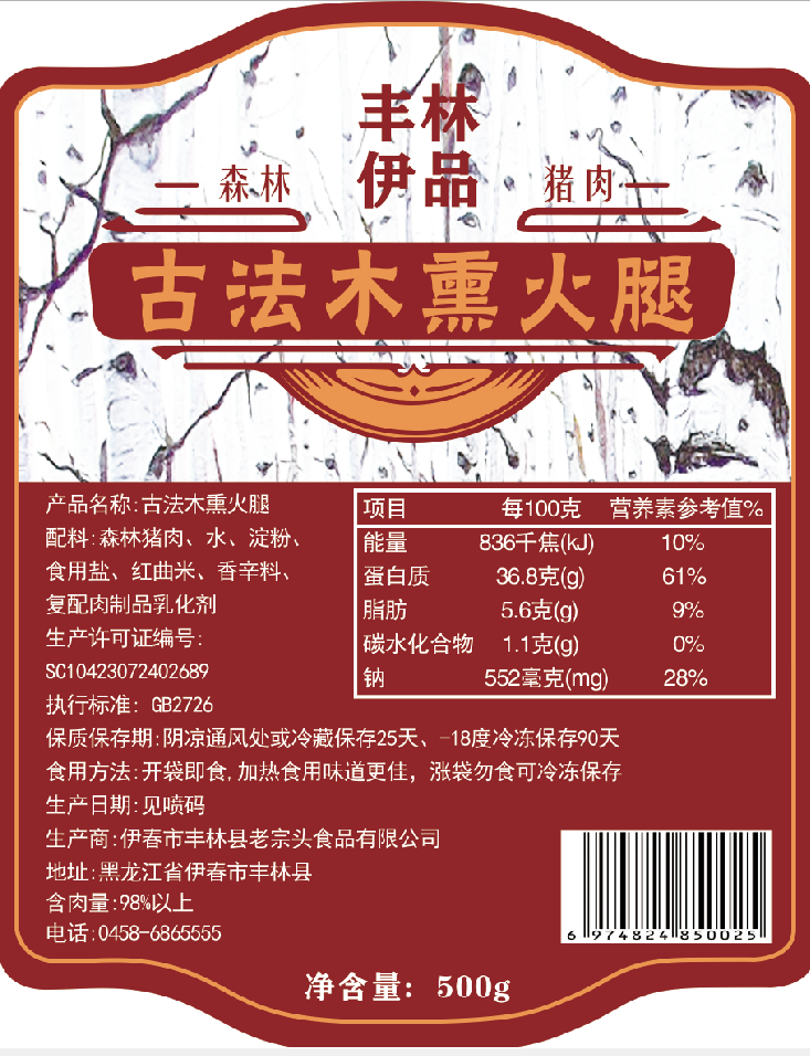 【黑猪肉大火腿】采用森林跑山猪,含有98%精瘦肉,古法木熏,肉质厚实有嚼劲,可开袋即食,可烫炒煮,样样美味!一份500g*2根!【特价产品不支持使用优惠券】!【TJ-J仓】