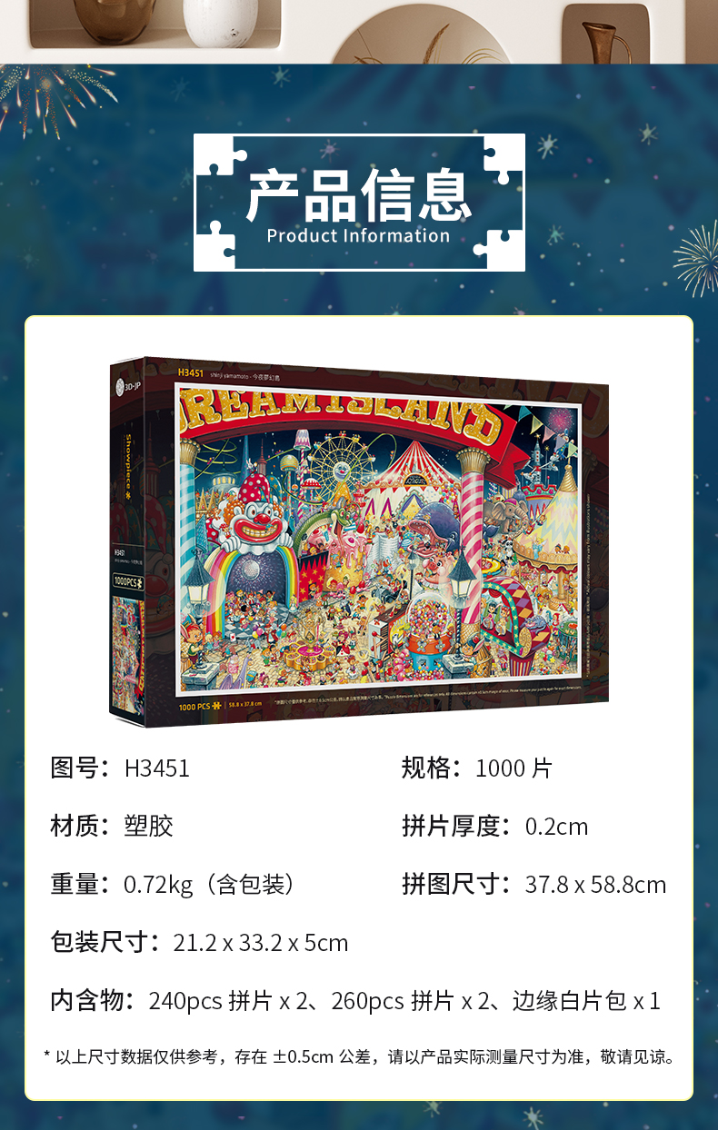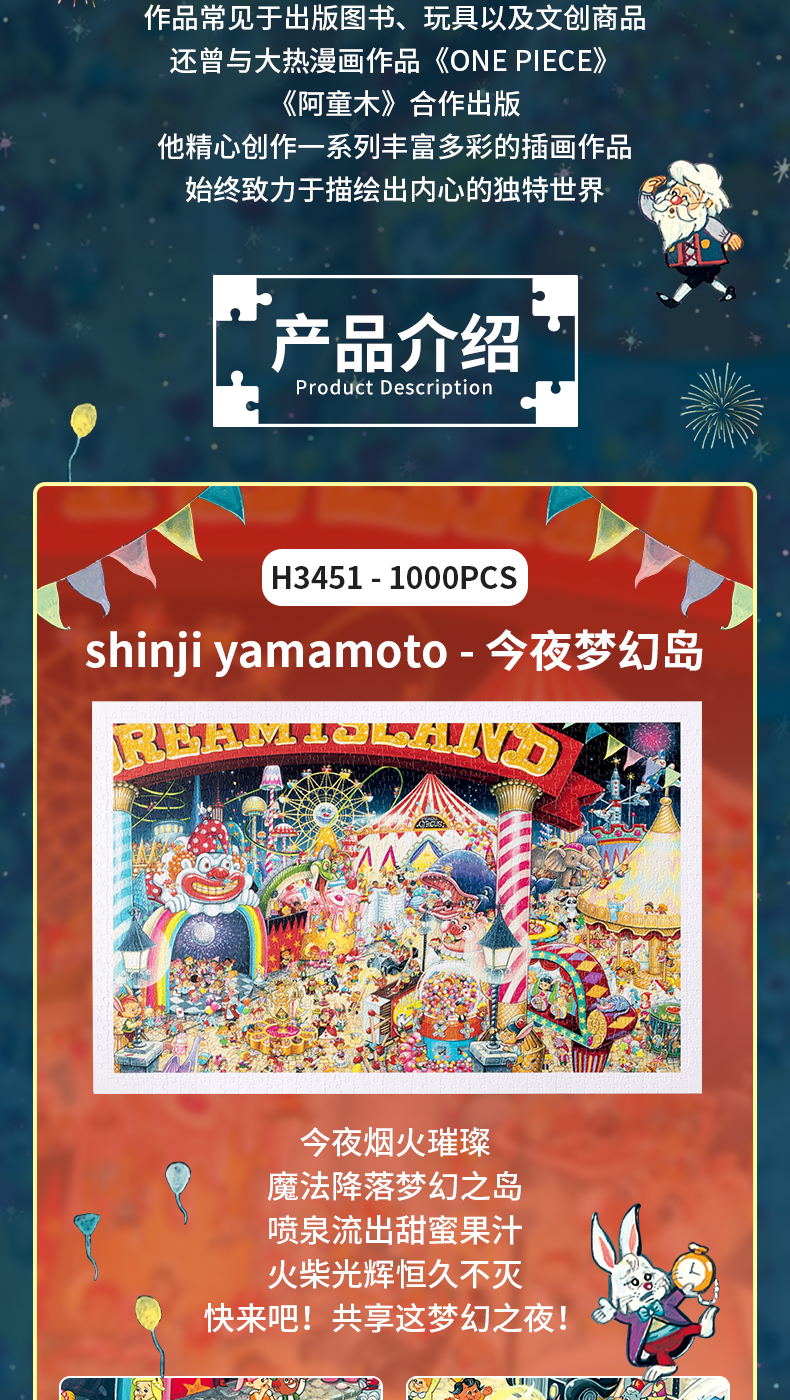 【折扣商品 不退不换】1000片 平面塑料拼图 H3451 shinji yamamoto-今夜梦幻岛