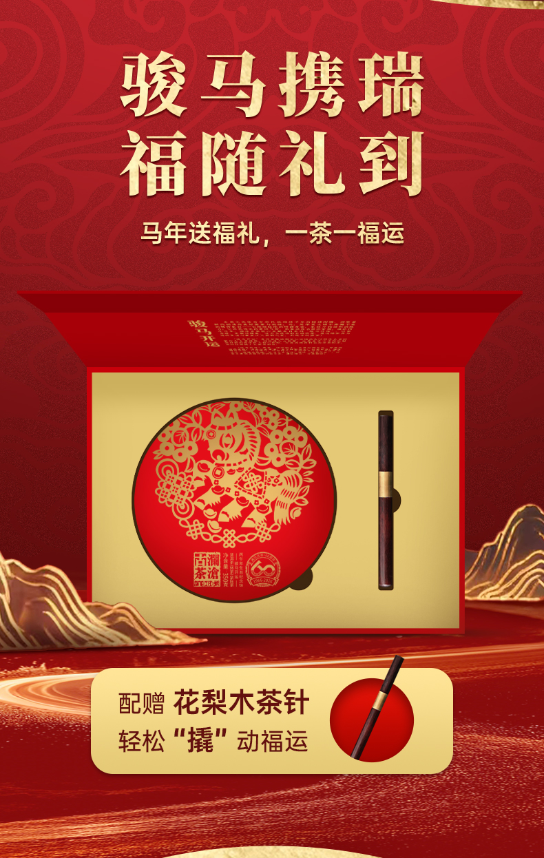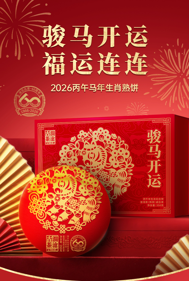 澜沧古茶2026年生肖茶骏马开运云南普洱茶熟茶大饼礼盒357g