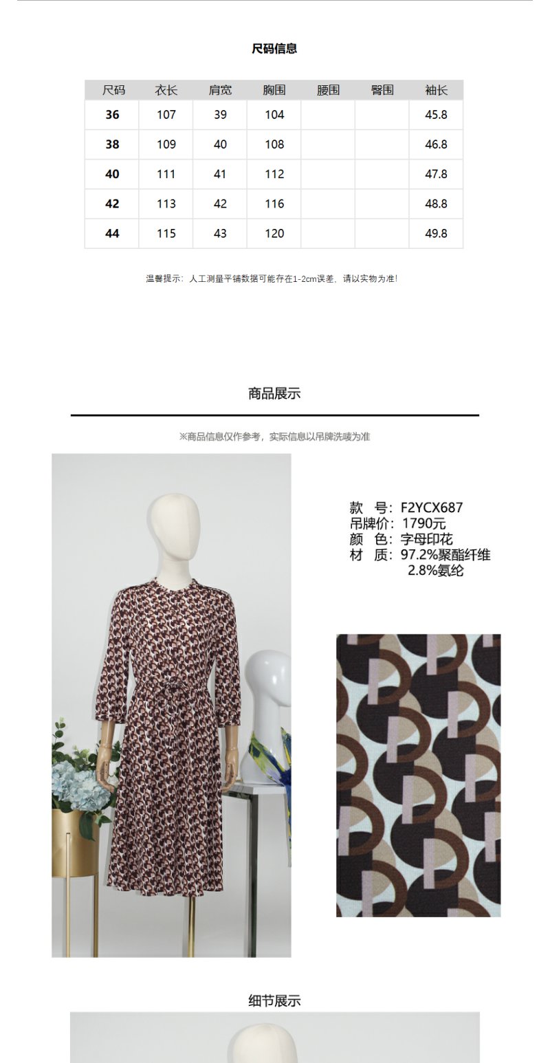 FOCALS福柯斯秋季新款圆领七分袖字母印花时尚连衣裙F2YCX687RK