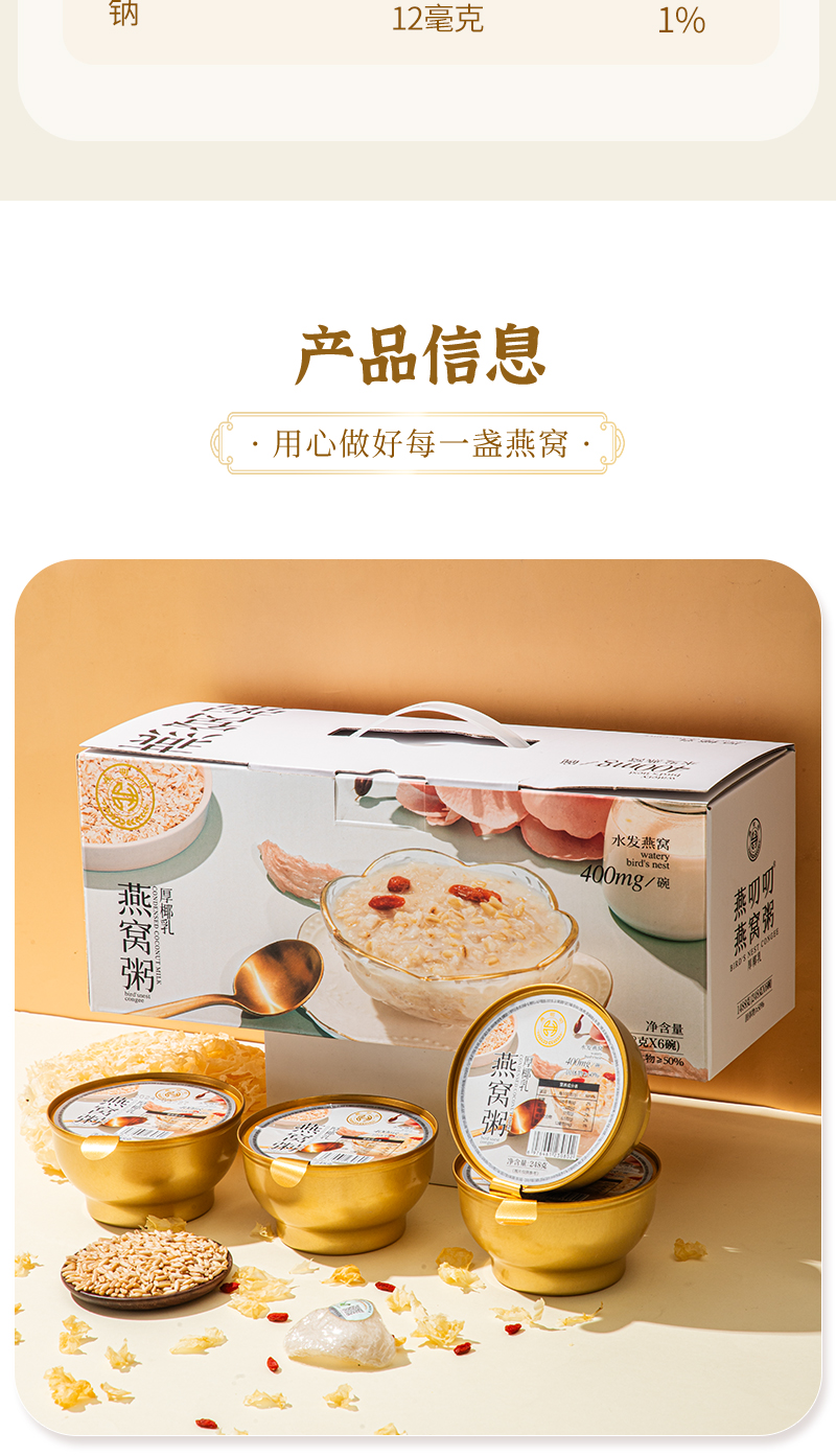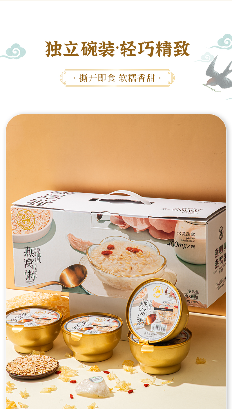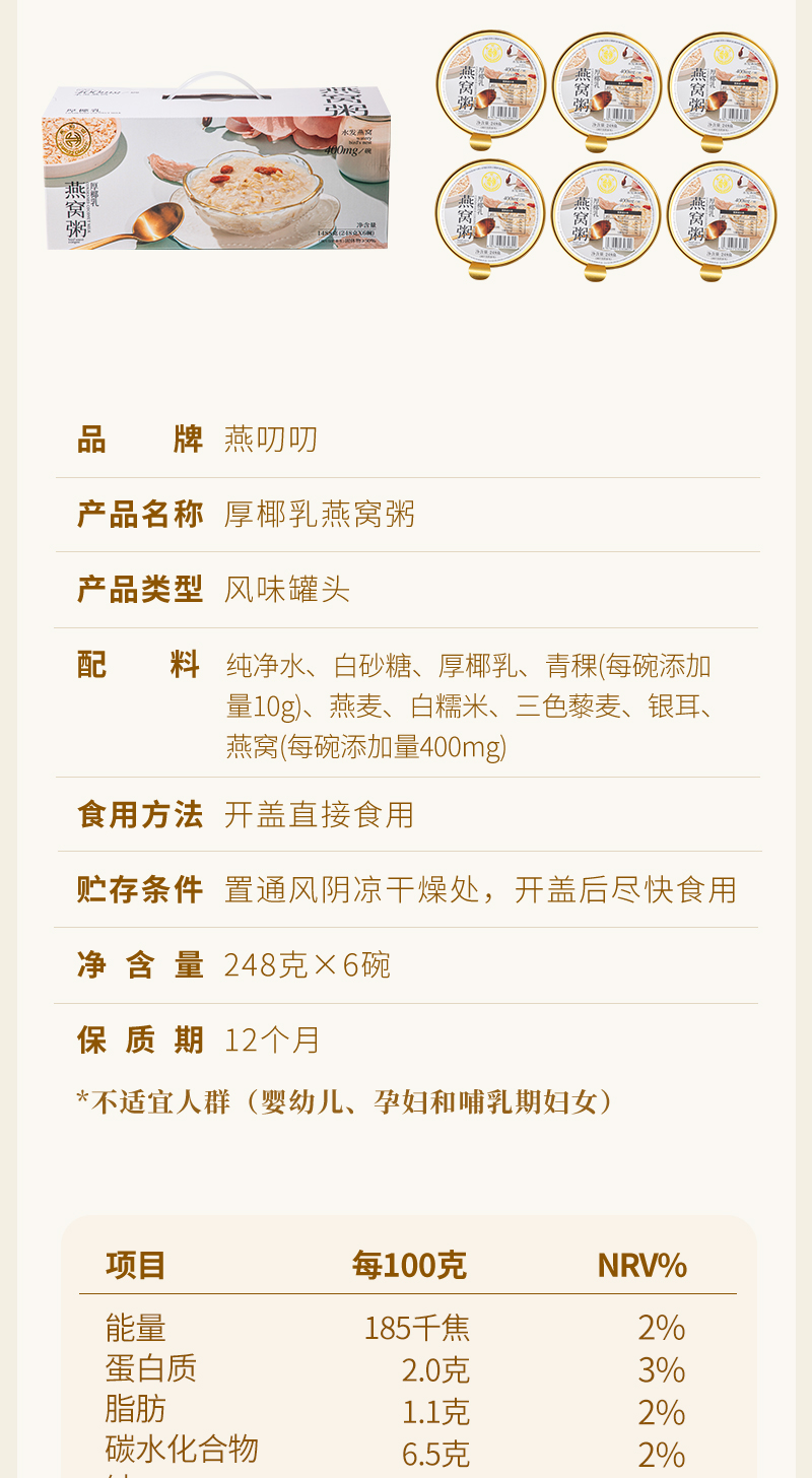 燕叨叨厚椰乳燕窝粥礼盒248g*6碗 代餐速食粥老人孕妇即食燕窝团购送礼