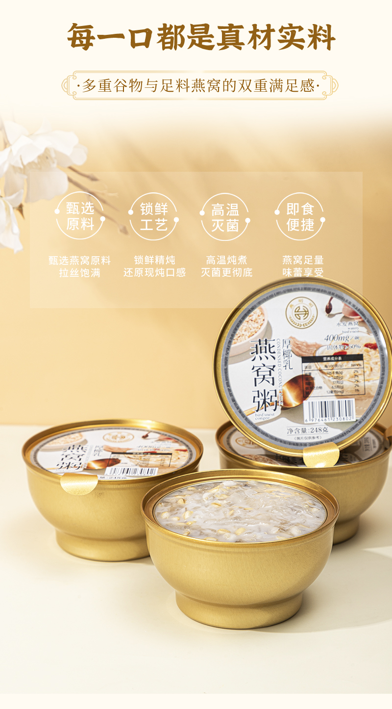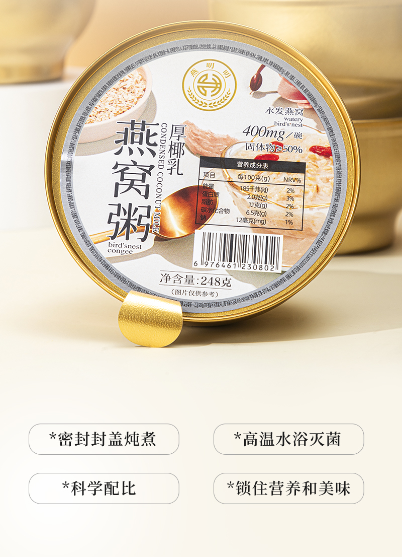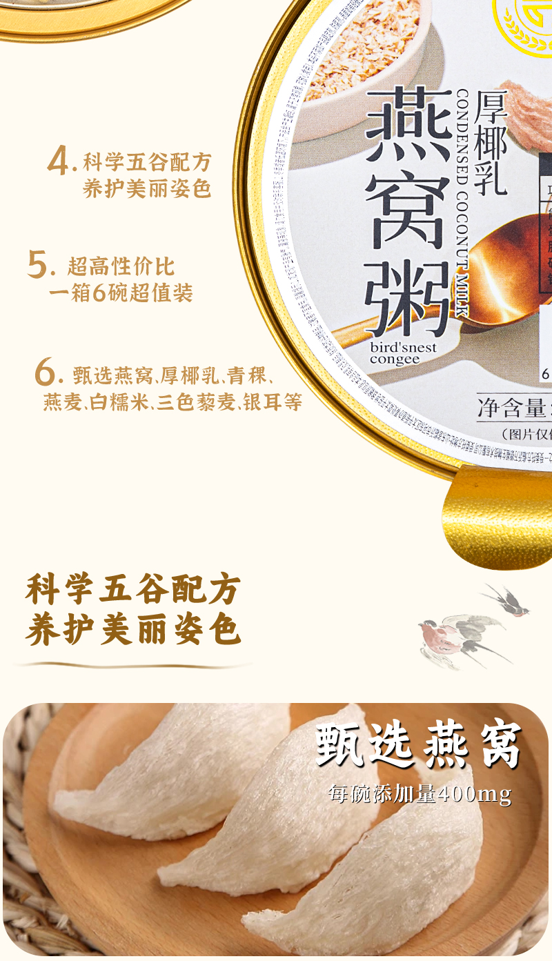 燕叨叨厚椰乳燕窝粥礼盒248g*6碗 代餐速食粥老人孕妇即食燕窝团购送礼