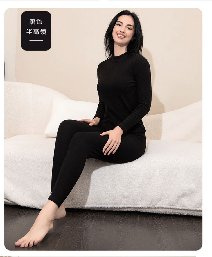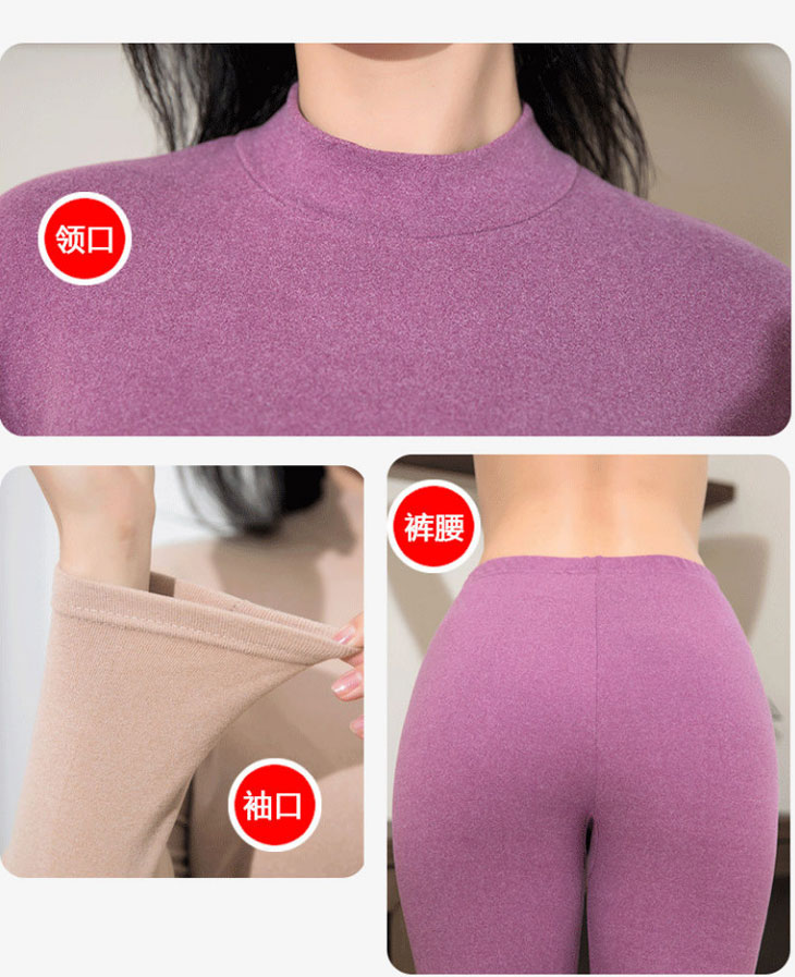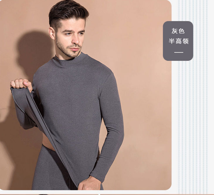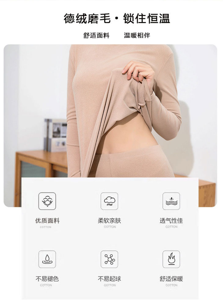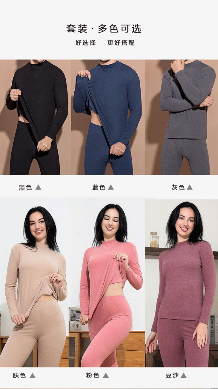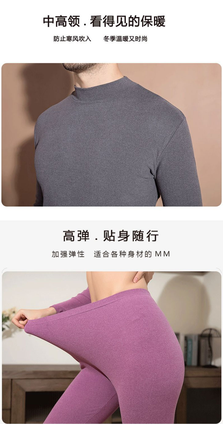 中领德绒保暖内衣 双面磨毛打底衫 男女半高领德绒内衣套装