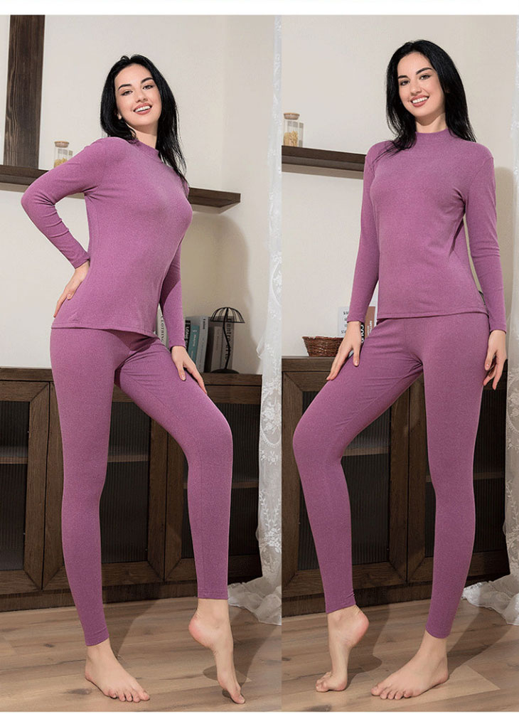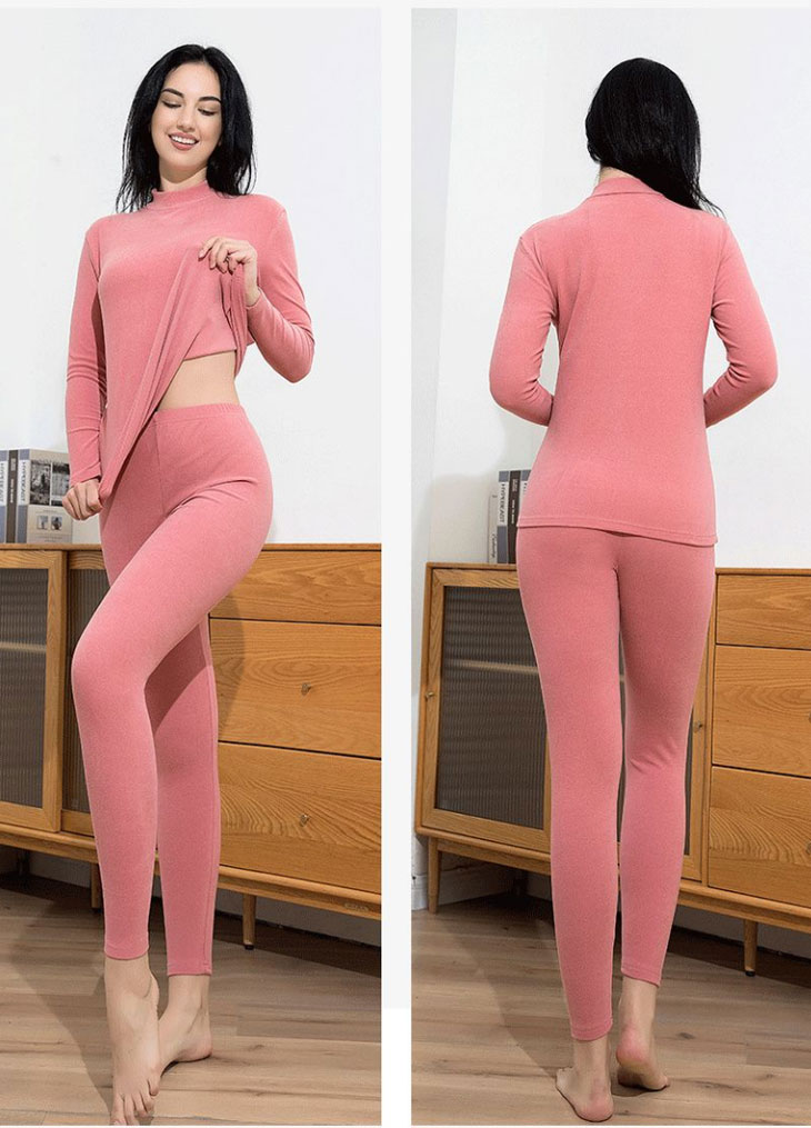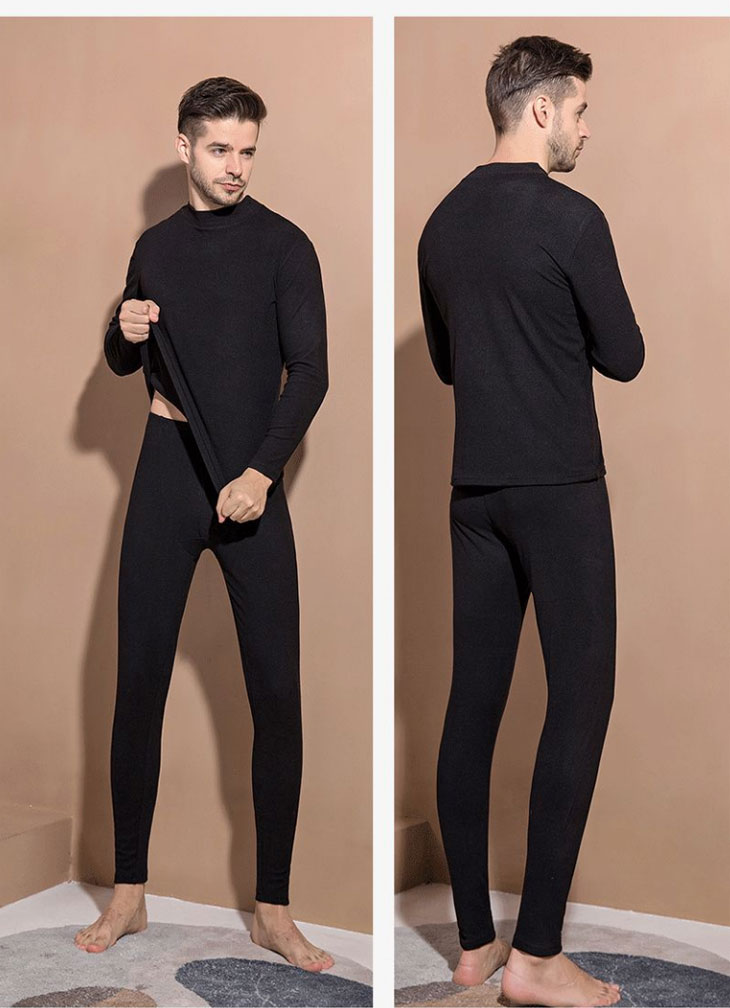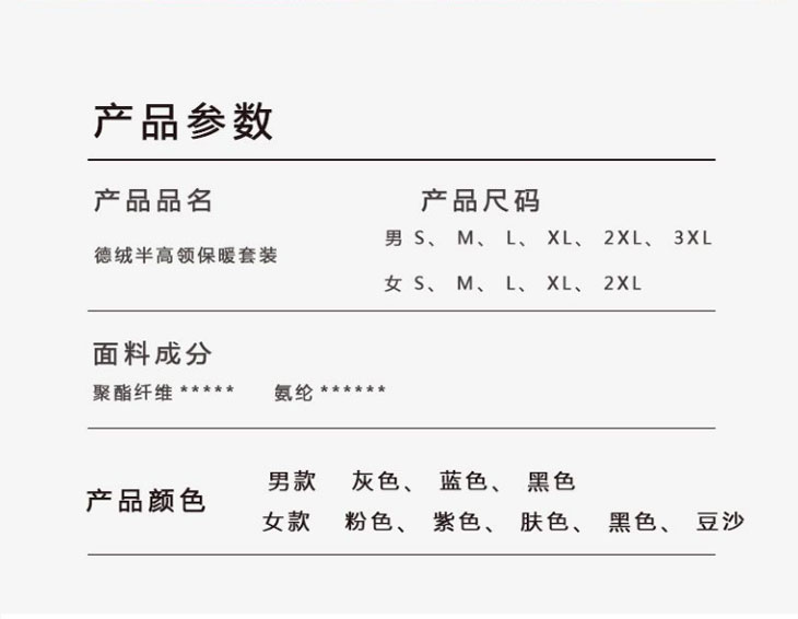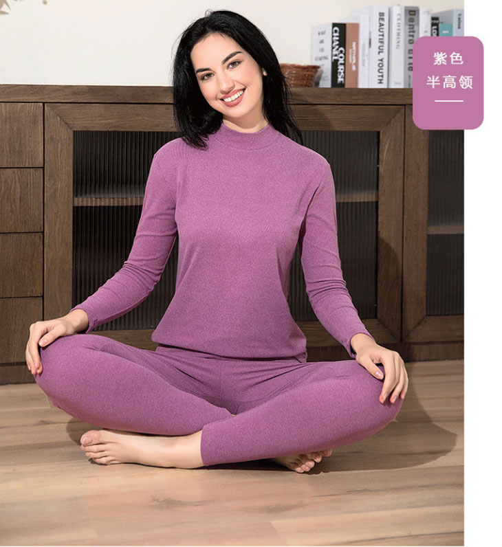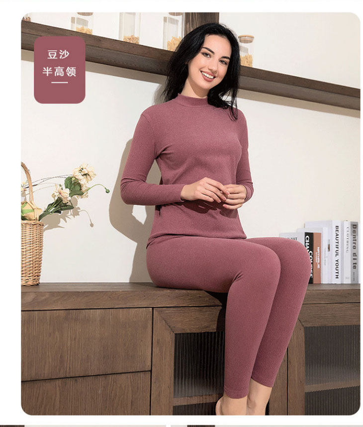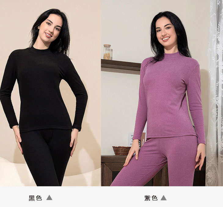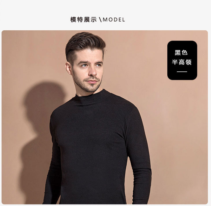 中领德绒保暖内衣 双面磨毛打底衫 男女半高领德绒内衣套装