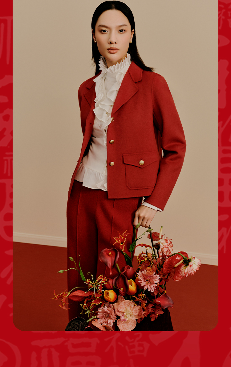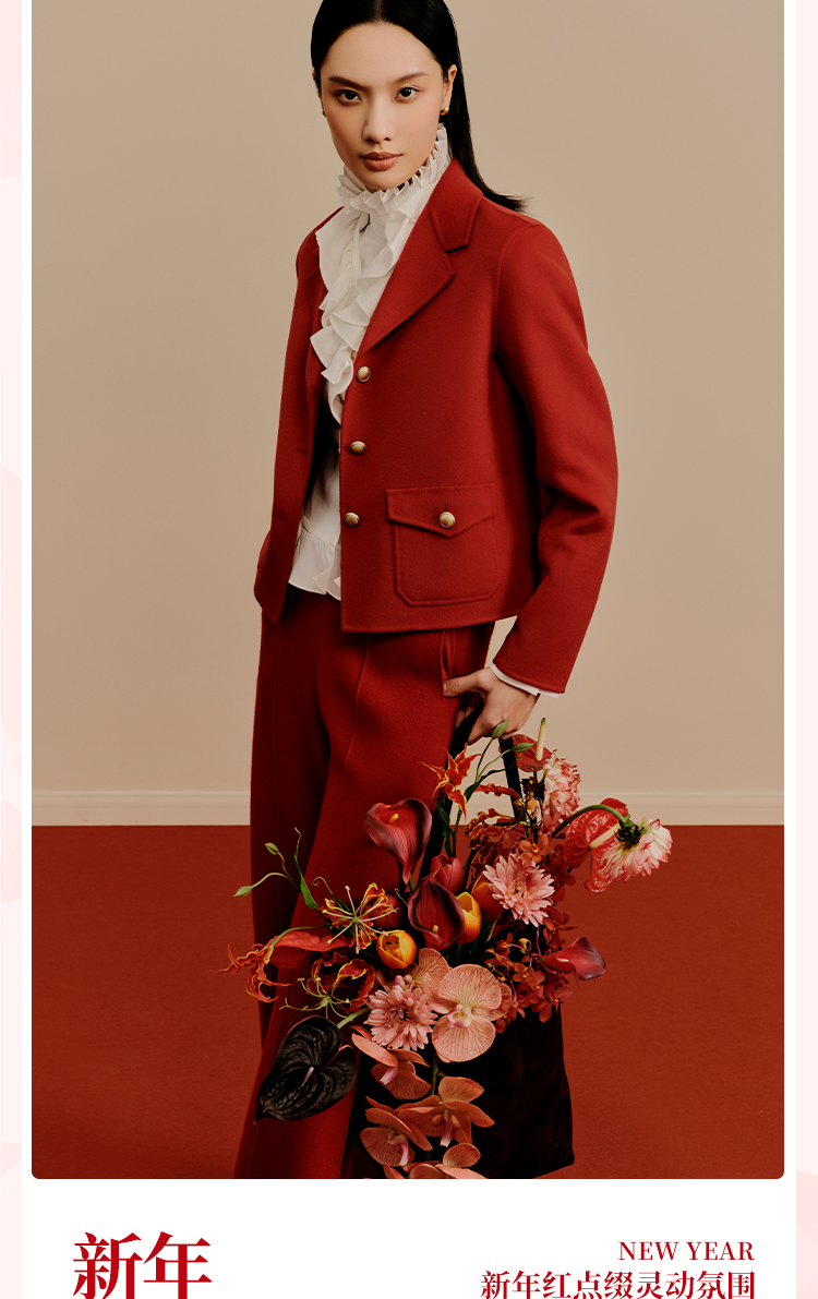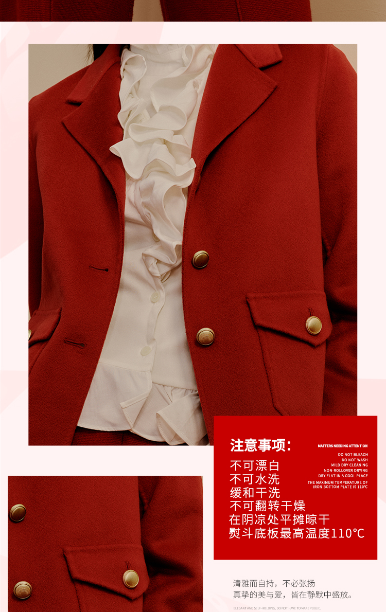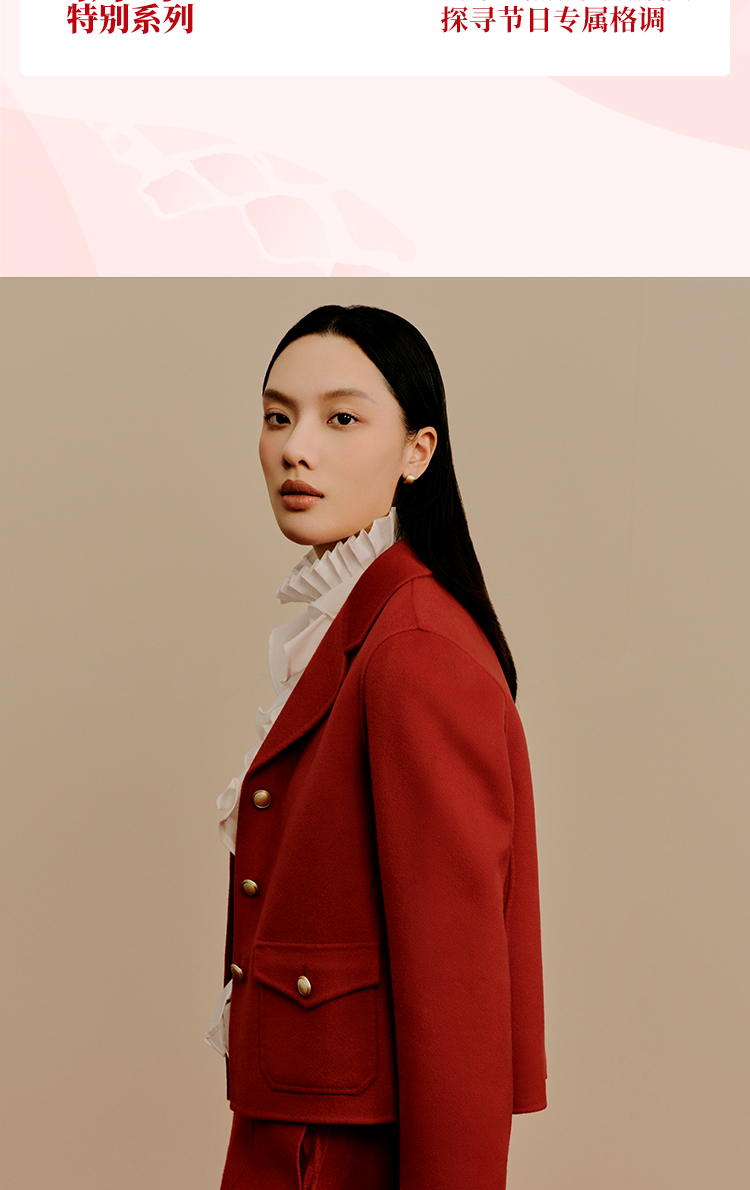 东黎 • 小山羊绒女士秋冬西服领小香风双面呢羊绒大衣 3322