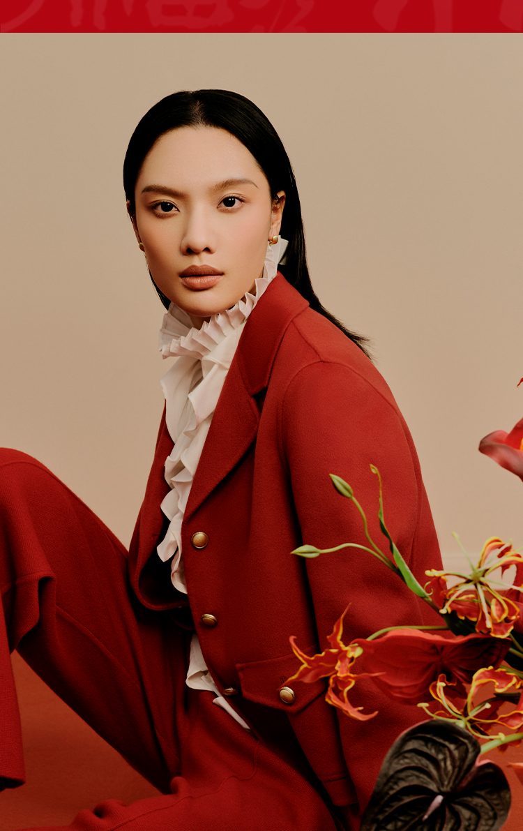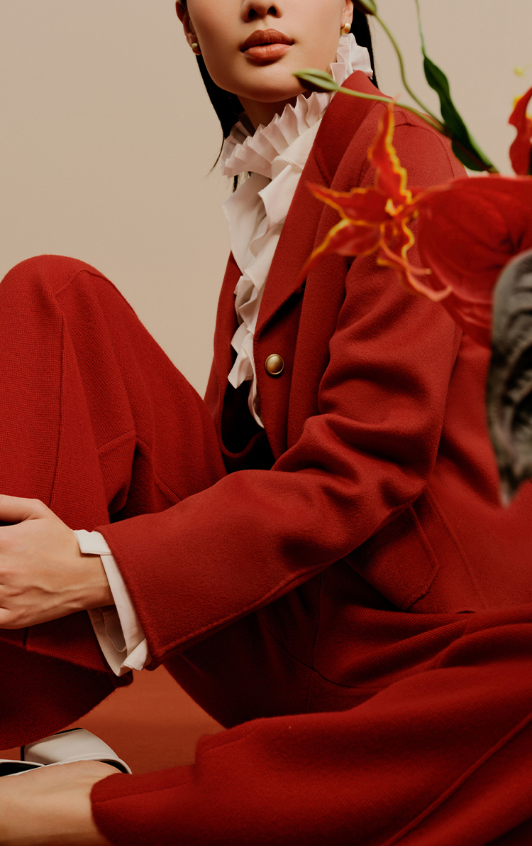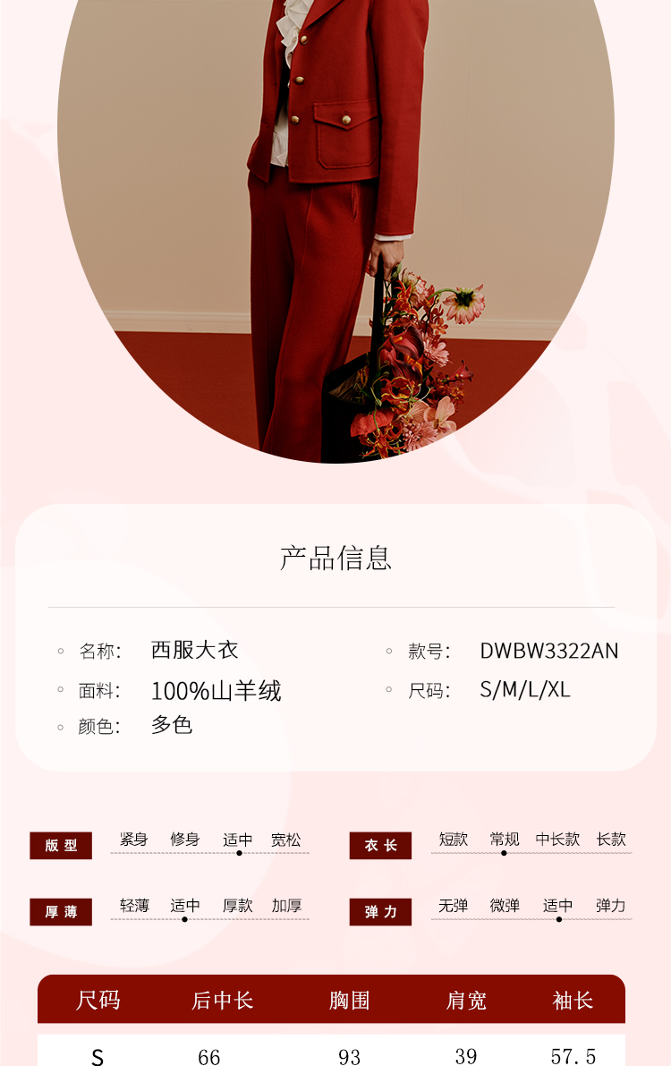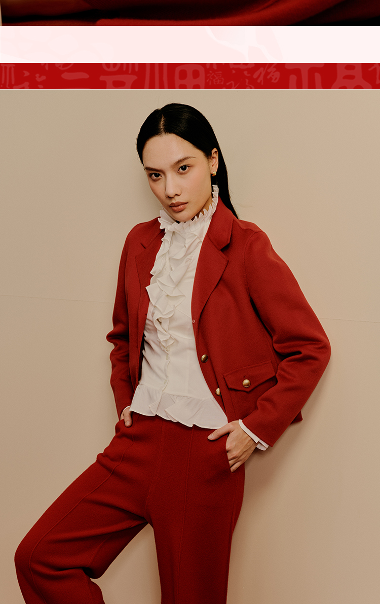 东黎 • 小山羊绒女士秋冬西服领小香风双面呢羊绒大衣 3322