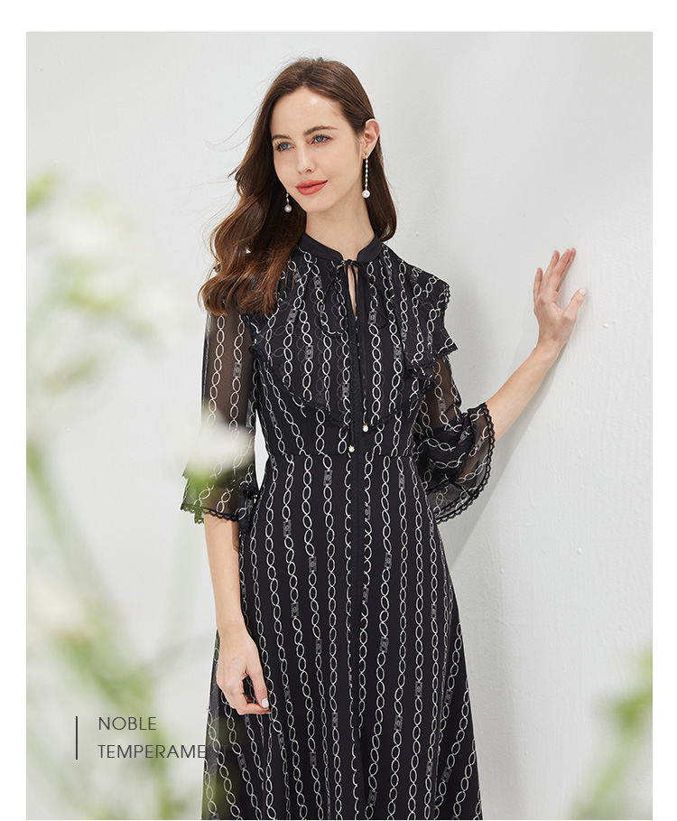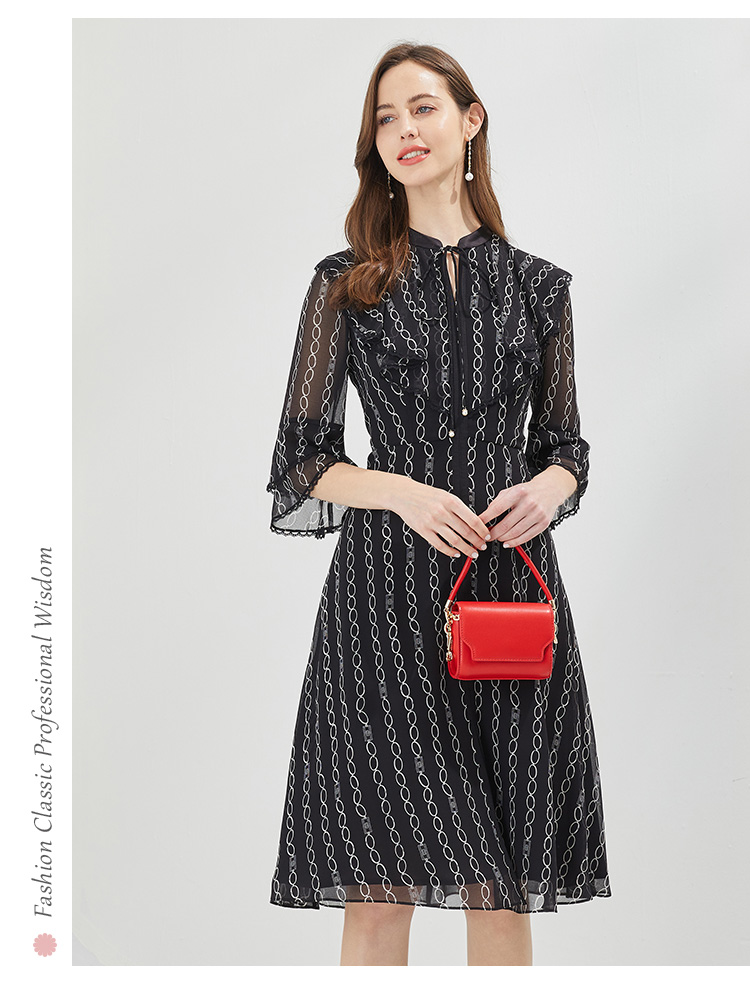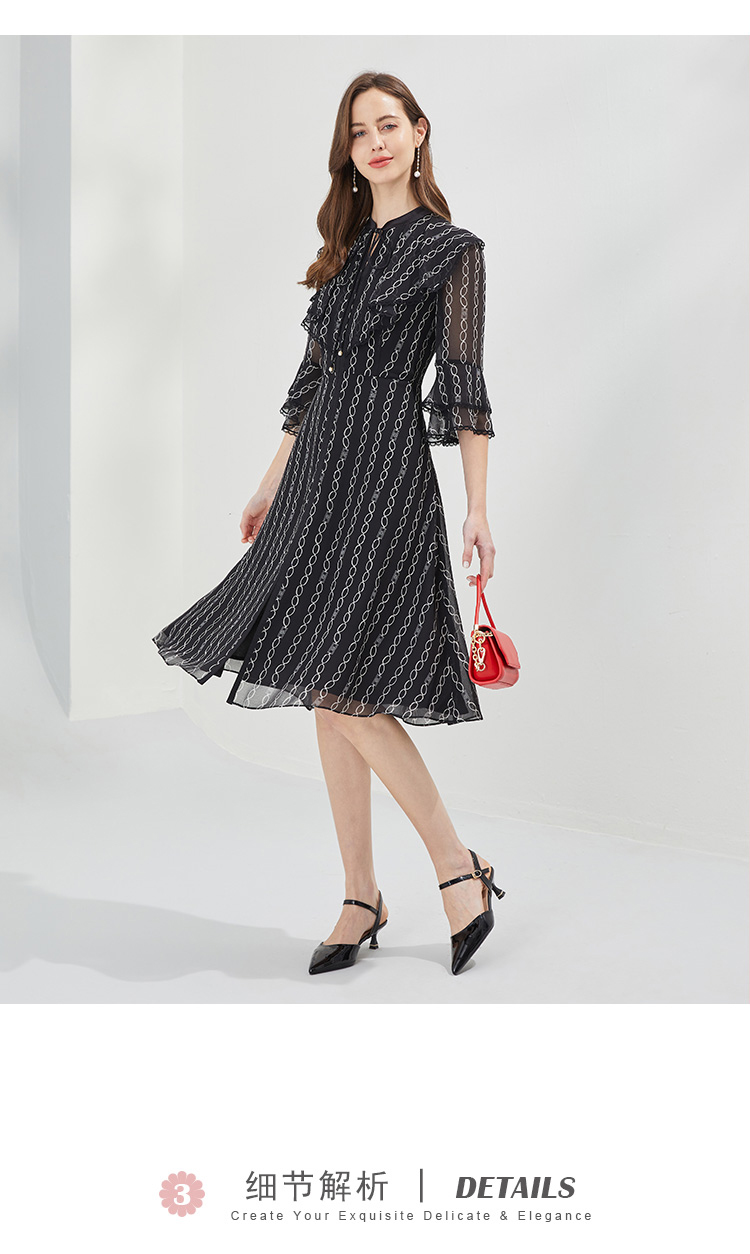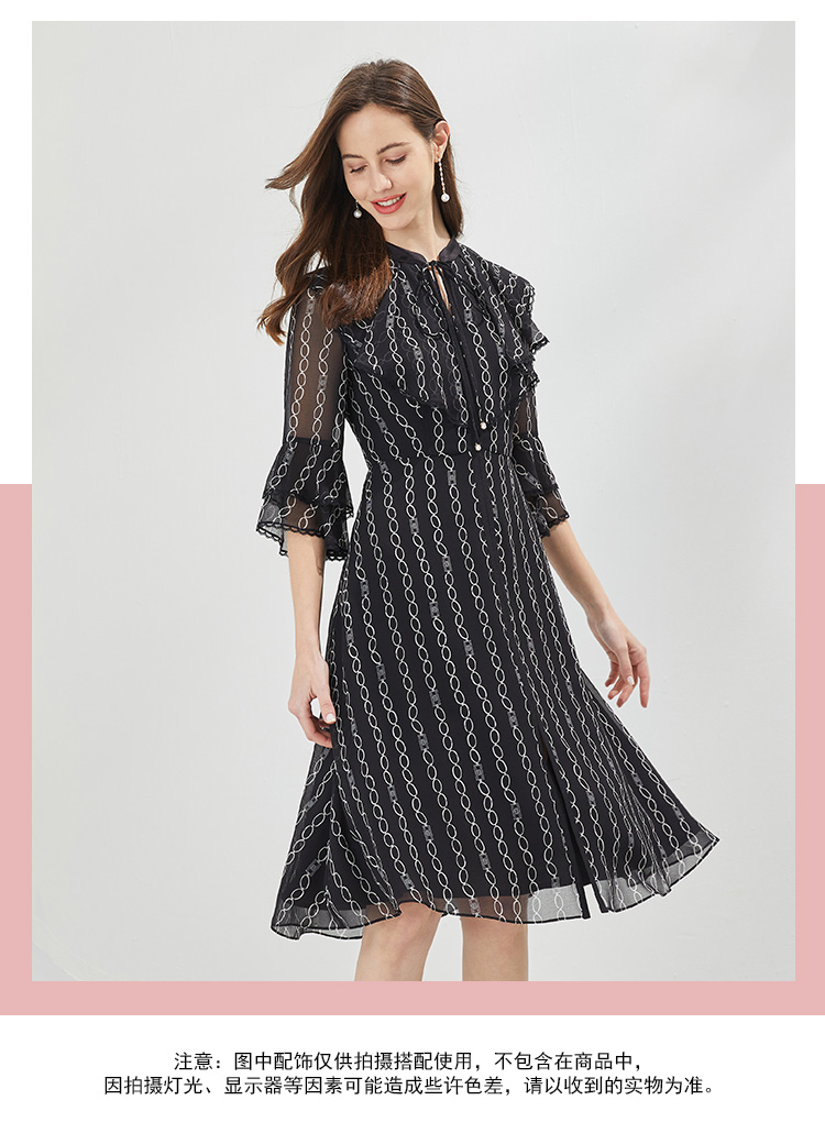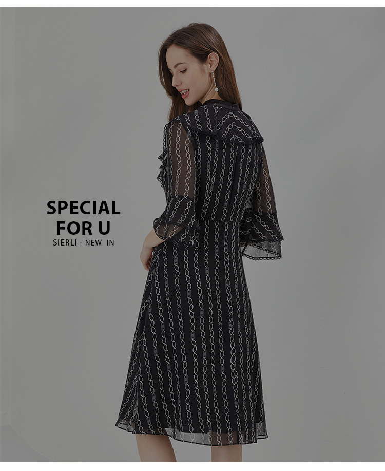 QG8A4斯尔丽斯尔丽瑟俪2021夏季上新荷叶边喇叭袖收腰A摆中长连衣裙
