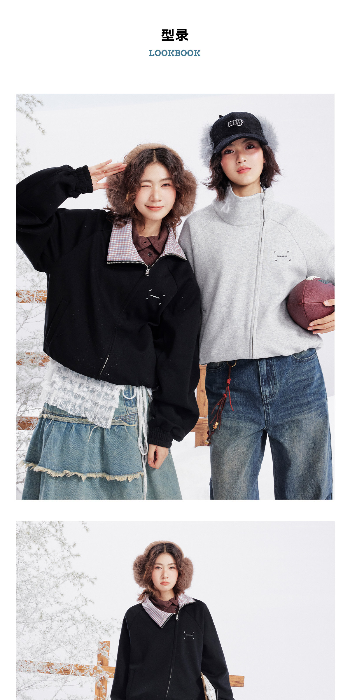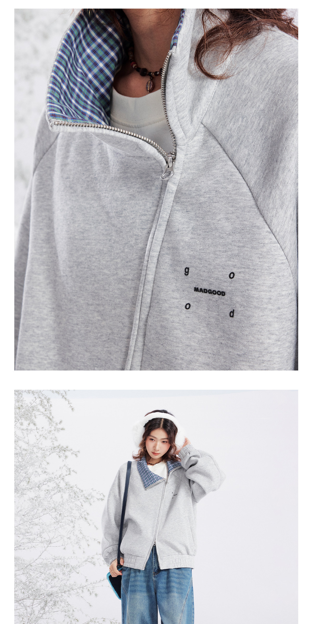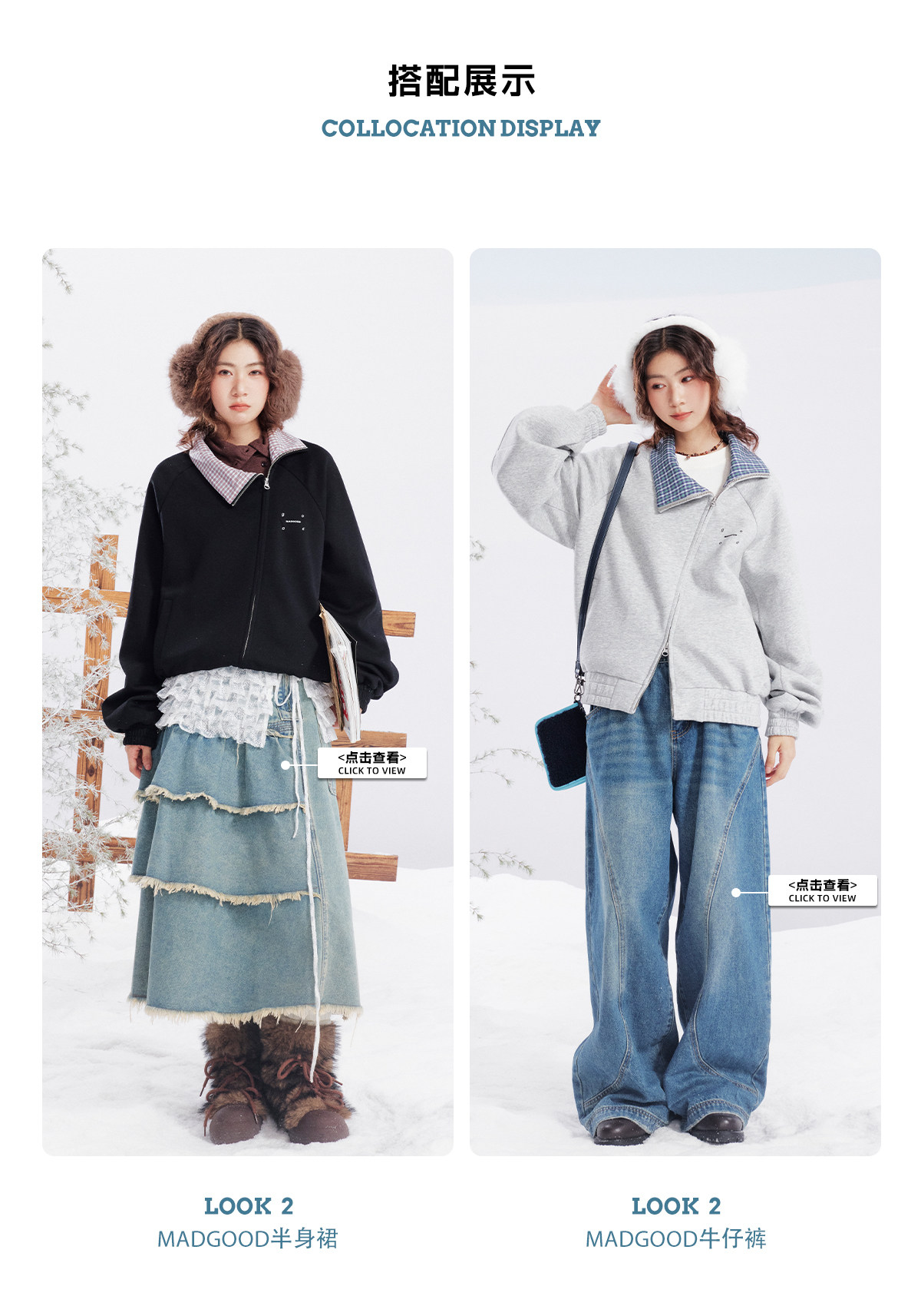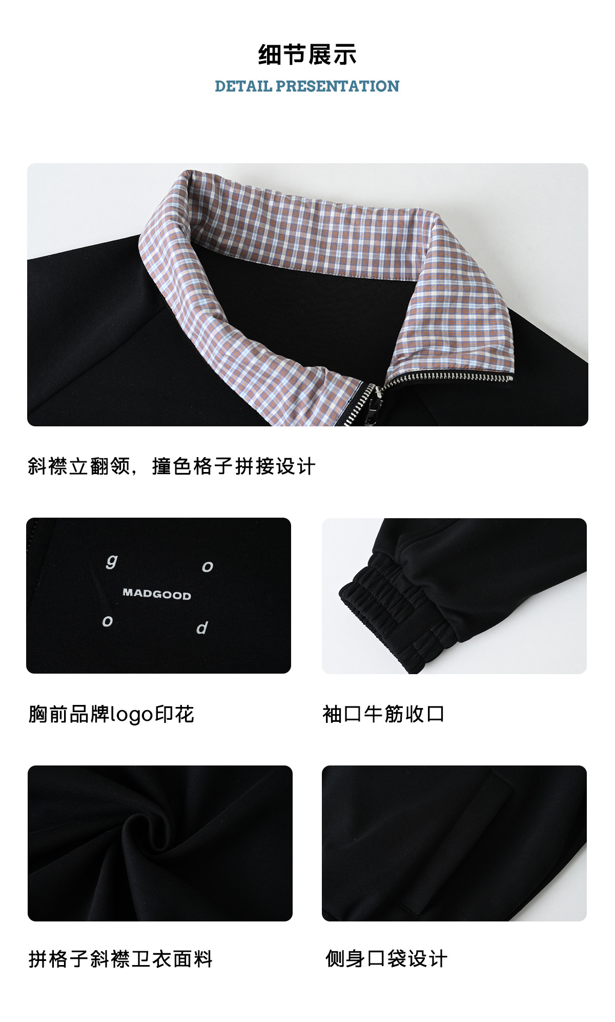 马得工地/MDGDWT141419/拼格子斜襟卫衣外套