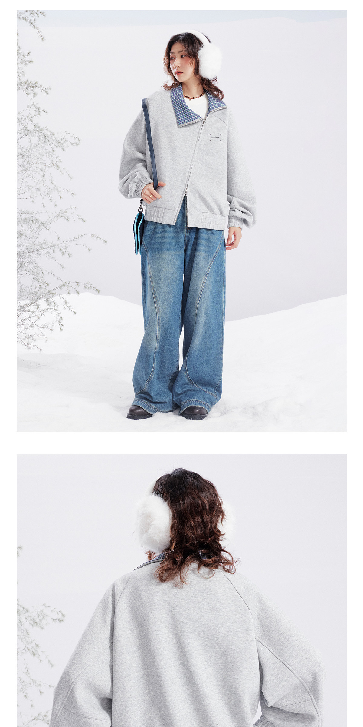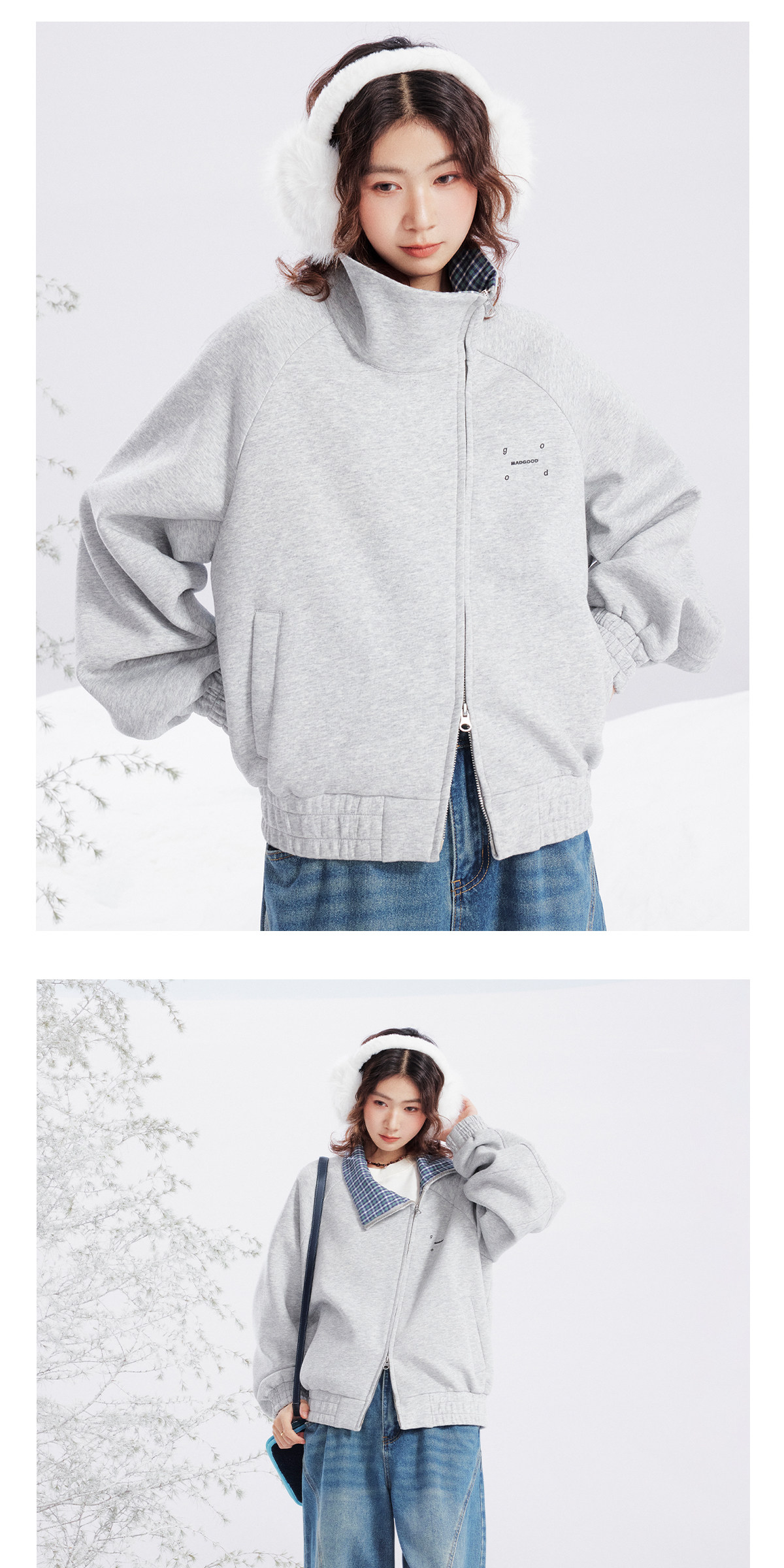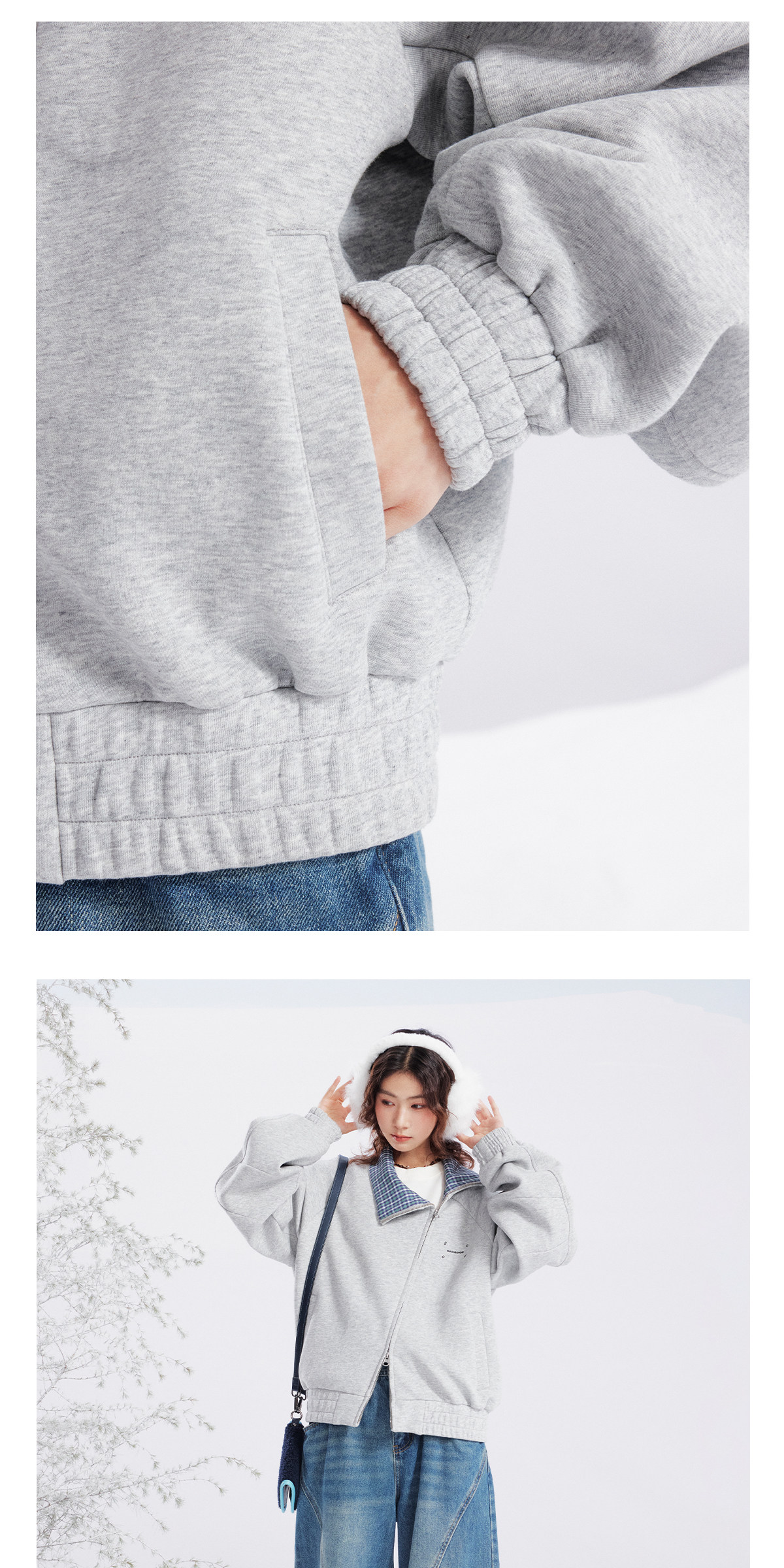 马得工地/MDGDWT141419/拼格子斜襟卫衣外套