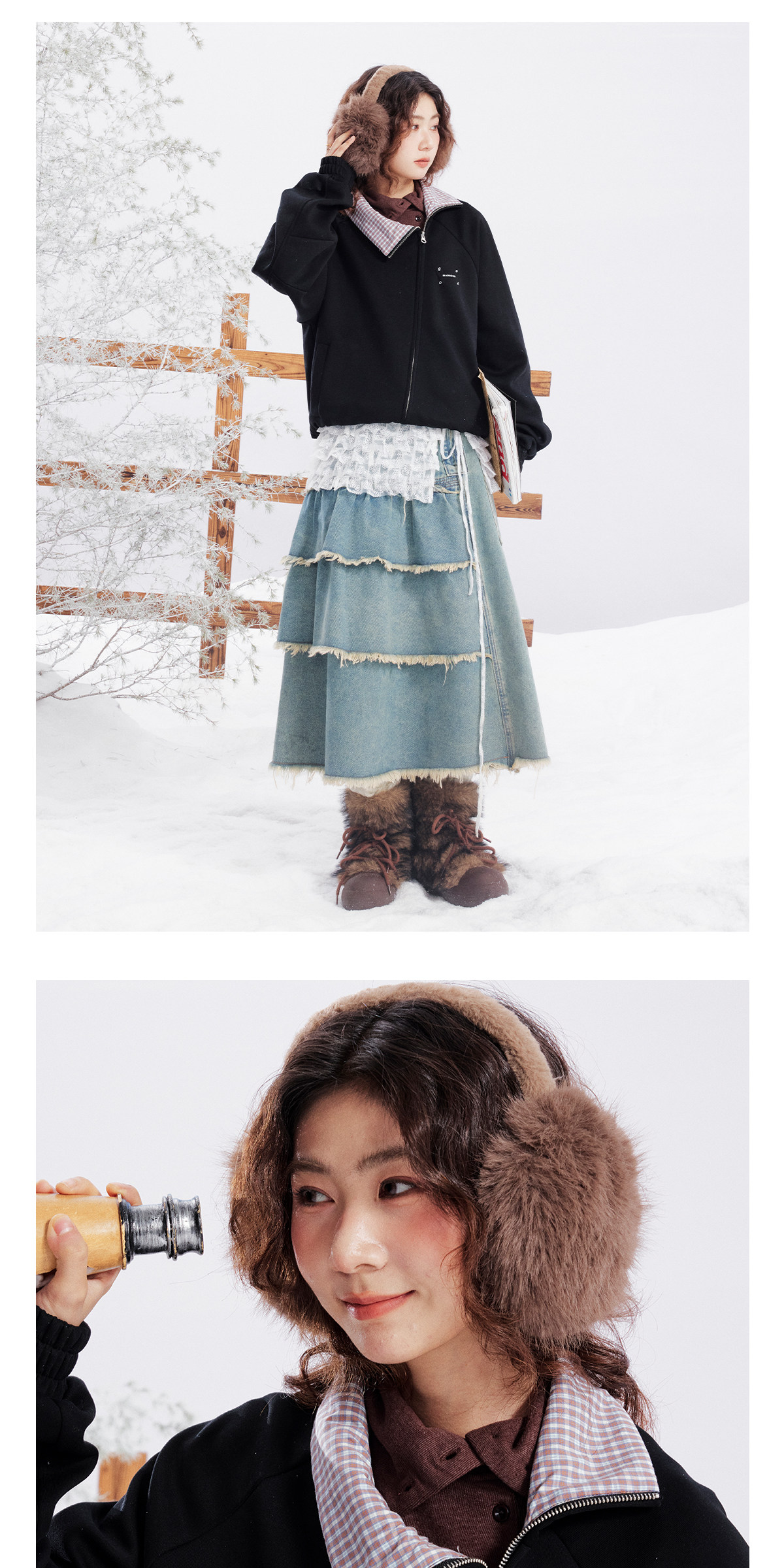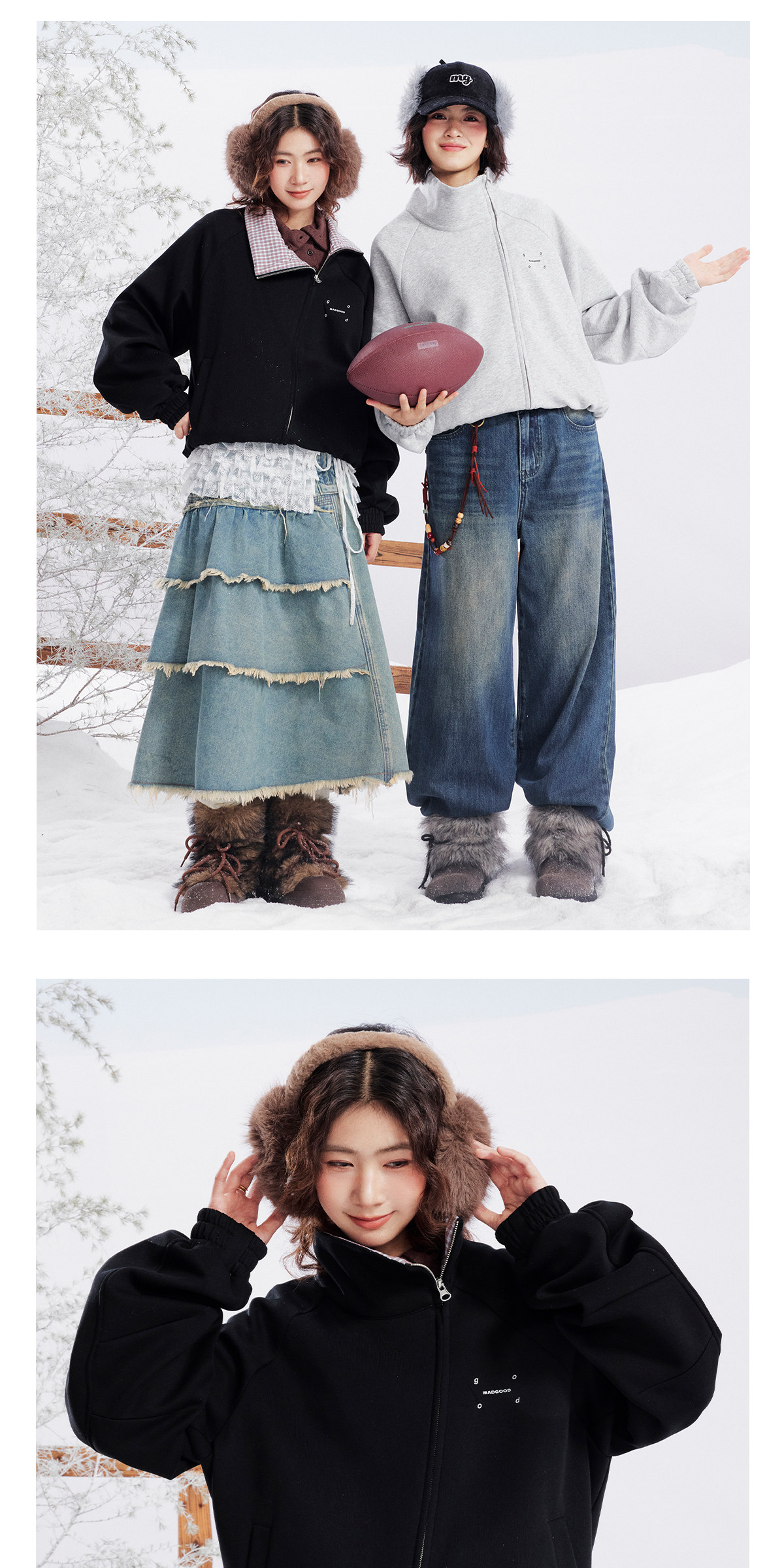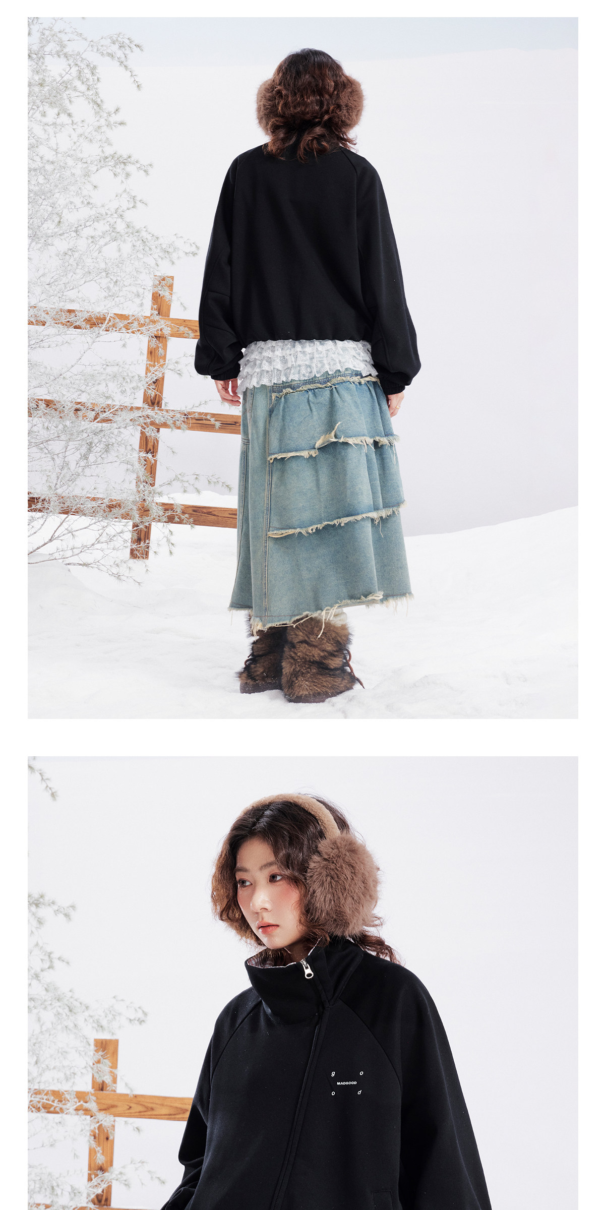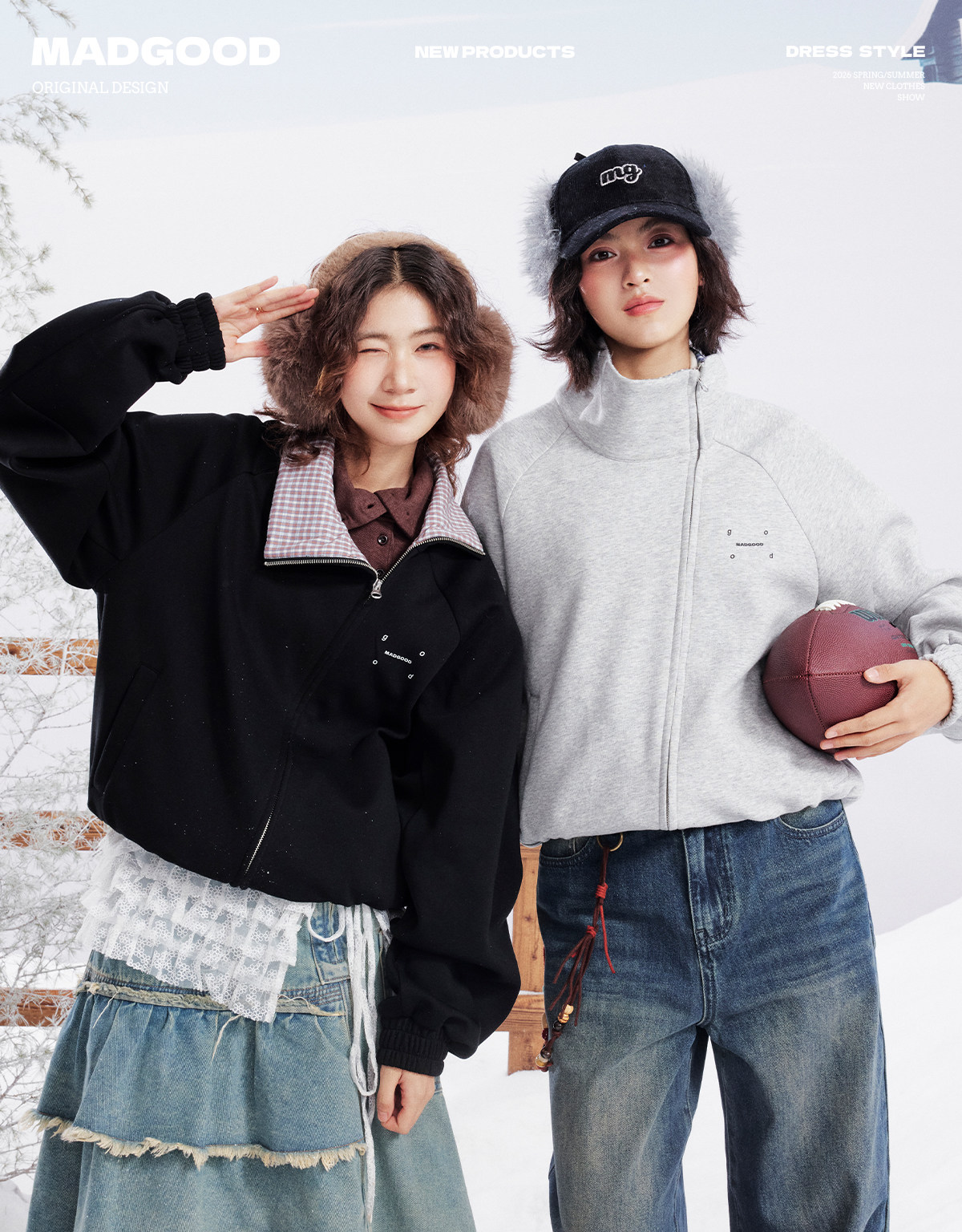 马得工地/MDGDWT141419/拼格子斜襟卫衣外套