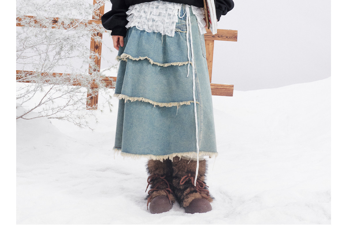 SUPERTOFU(SPTF)/新墨洗水牛仔阔身背带裤