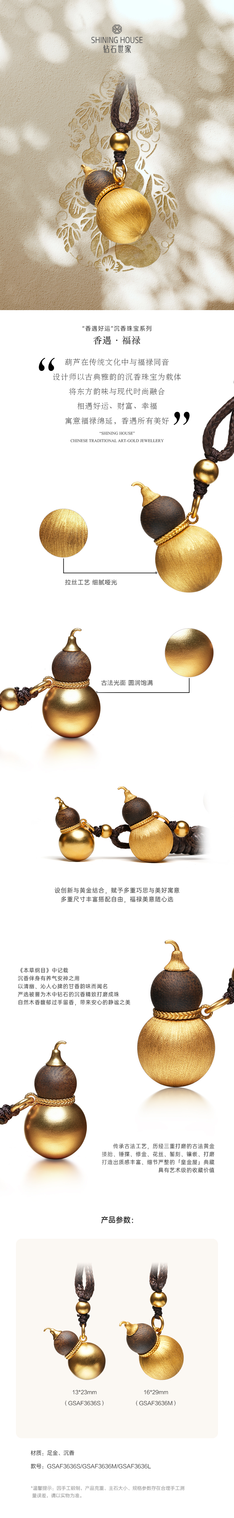 【沉香黄金】【福满厚禄系列】钻石世家 如意葫芦足金沉香吊坠(配绳) 古法黄金吊坠挂坠【黄金产品不支持无理由退换货】预计3-5天发货