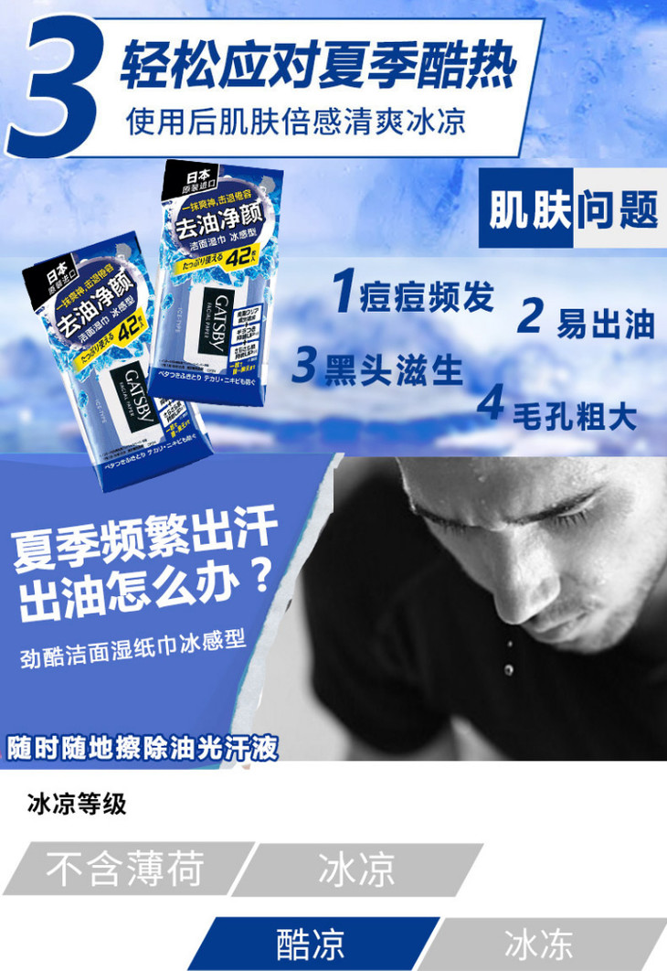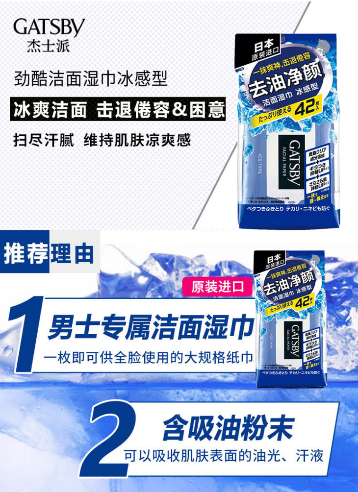 杰士派 劲酷洁面湿纸巾冰感型 42片