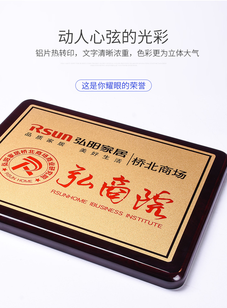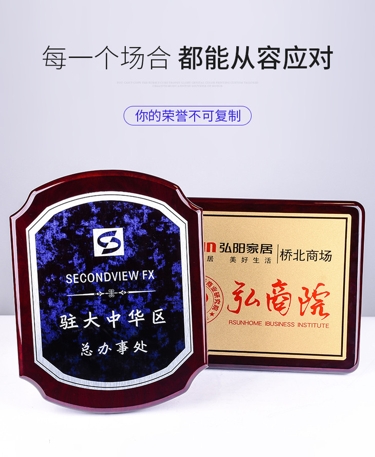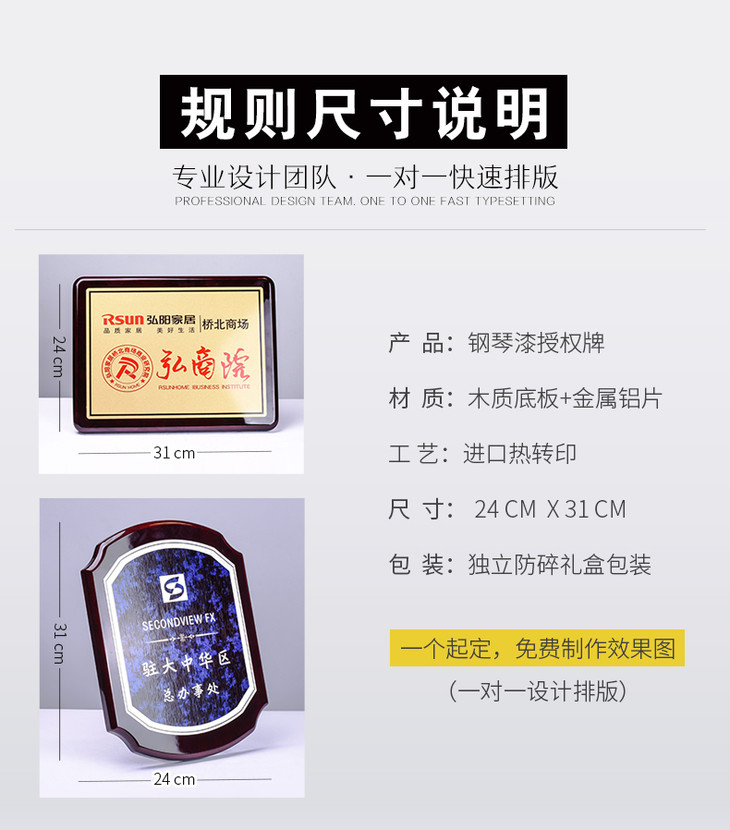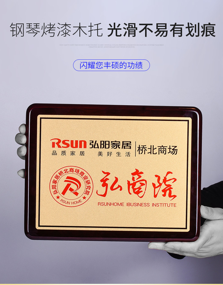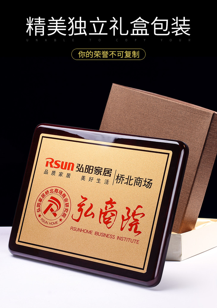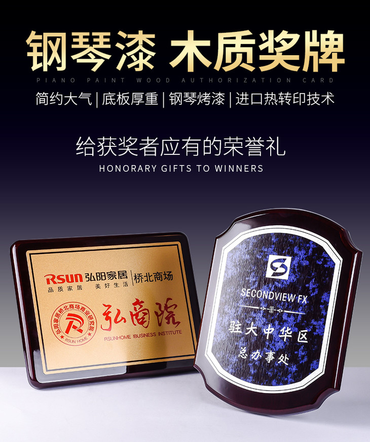 钢琴漆木质奖牌定制定做加盟代理牌匾高档金属荣誉证书授权牌制作