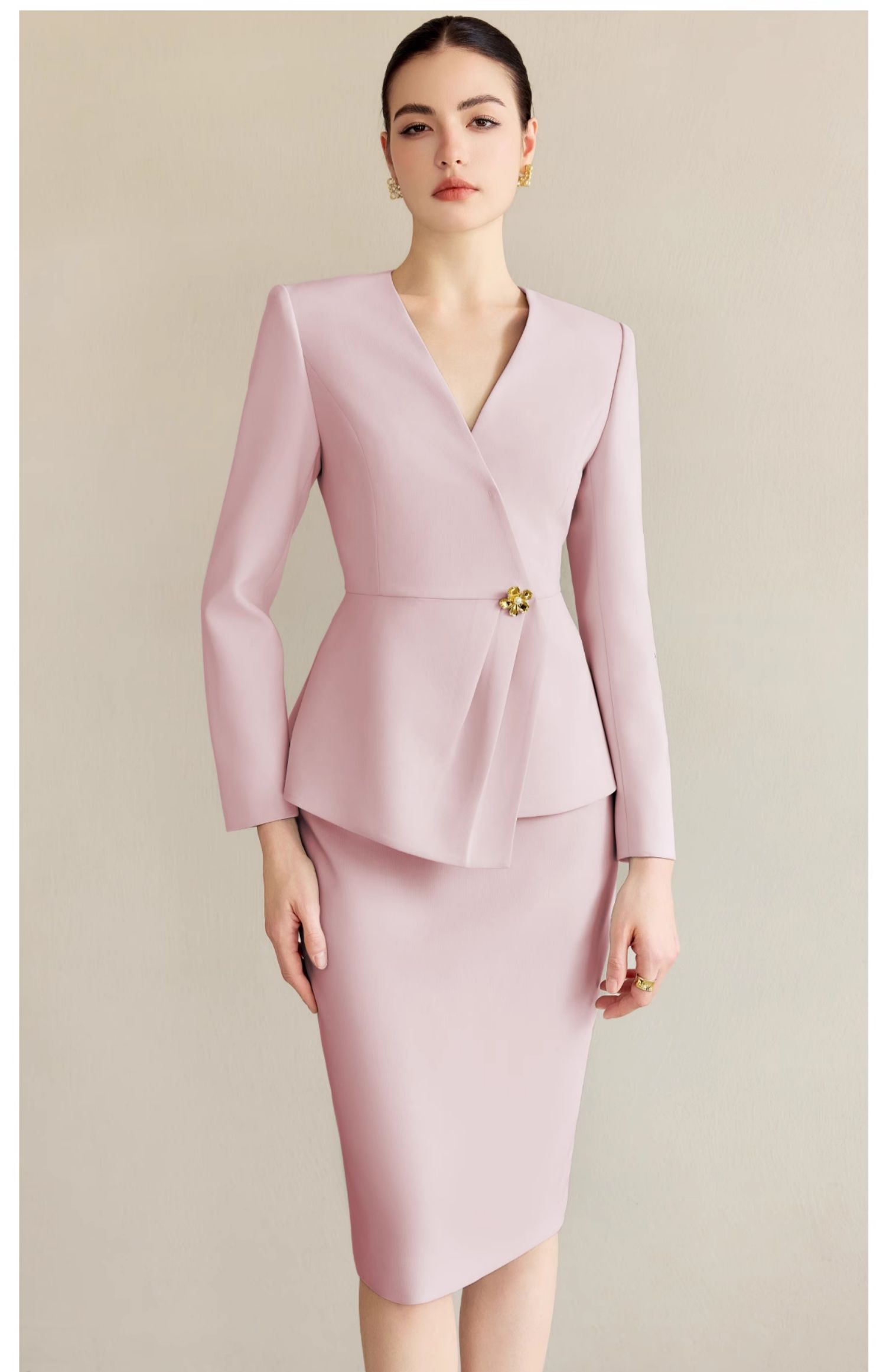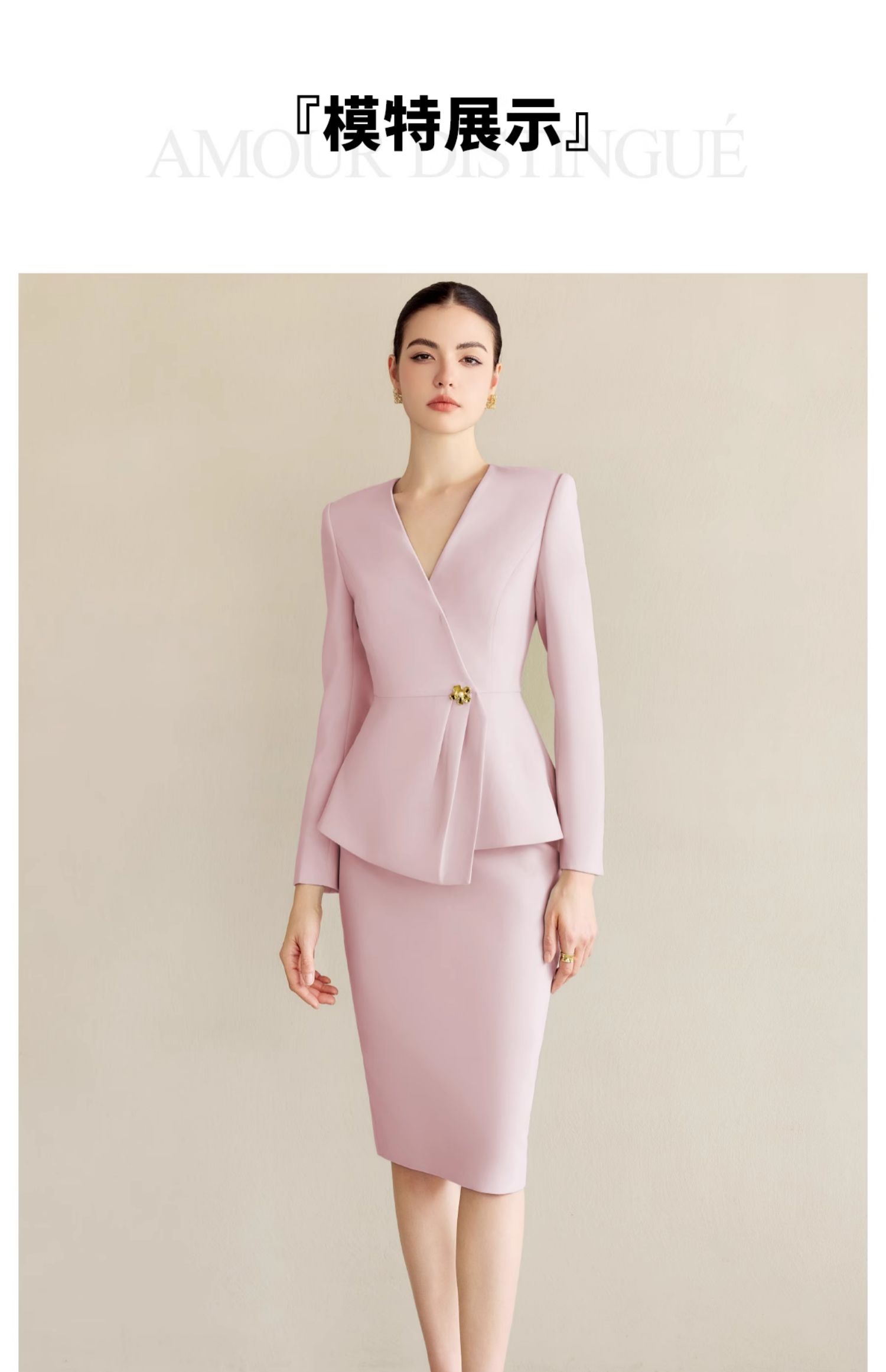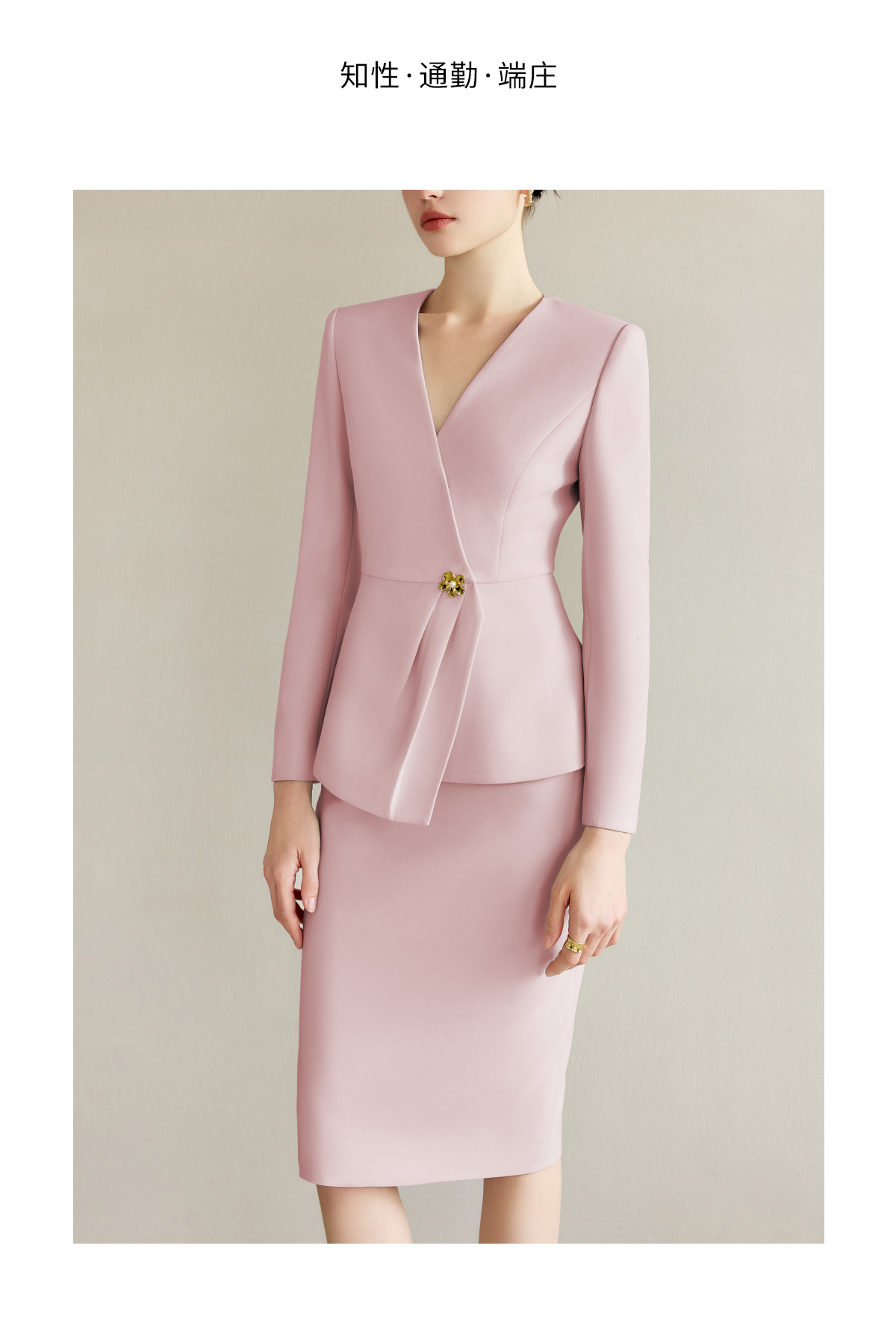IWY/气质粉色职业装女神范正装套装女高端前台主持人工作服西装套裙CS2226