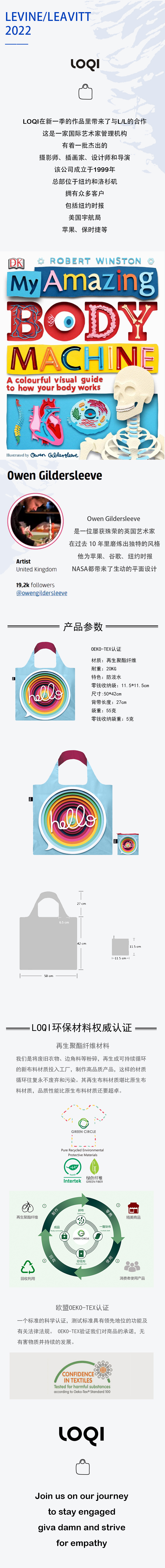 德国LOQI x L/L 艺术系列 OW.HE你好 万用环保袋 INS网红风全新再生环保材料 单肩可折叠 旅行大容量 防泼水 超轻50g可承重40斤