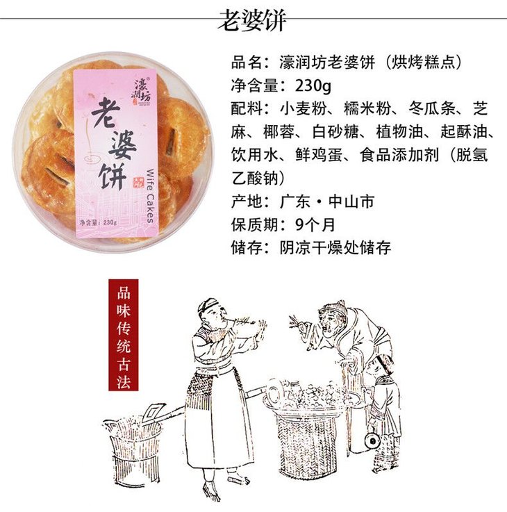 澳门手信濠润坊老公饼 老婆饼230g传统糕点早餐点心伴手礼零食下午茶