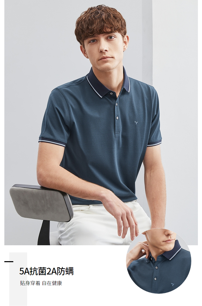 【含桑蚕丝】柒牌短袖t恤男polo衫夏季新款商务休闲凉感抗菌上衣124T73370