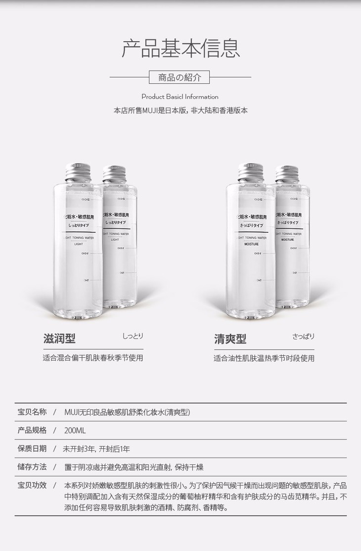 【保税仓】MUJI/无印良品 敏感肌用化妆水清爽型 200ml
