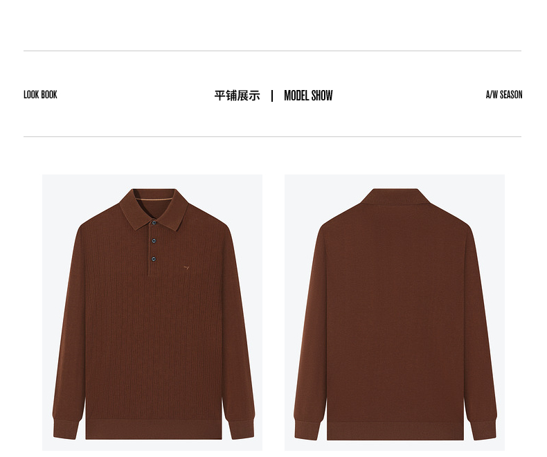 柒牌男装翻领羊毛衫男2024秋冬新款时尚休闲舒适百搭青年打底毛衣 127Y70150