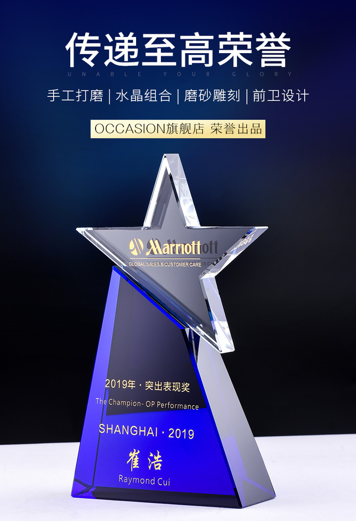 水晶奖牌定制定做比赛颁奖创意礼品五角星纪念品刻字授权荣誉制作