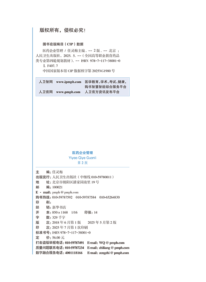 医药企业管理 第2二版 十四五规划教材全国高等职业教育药品类专业第四轮规划教材 任灵梅 主编 供药医疗器械经营与服务等专业用