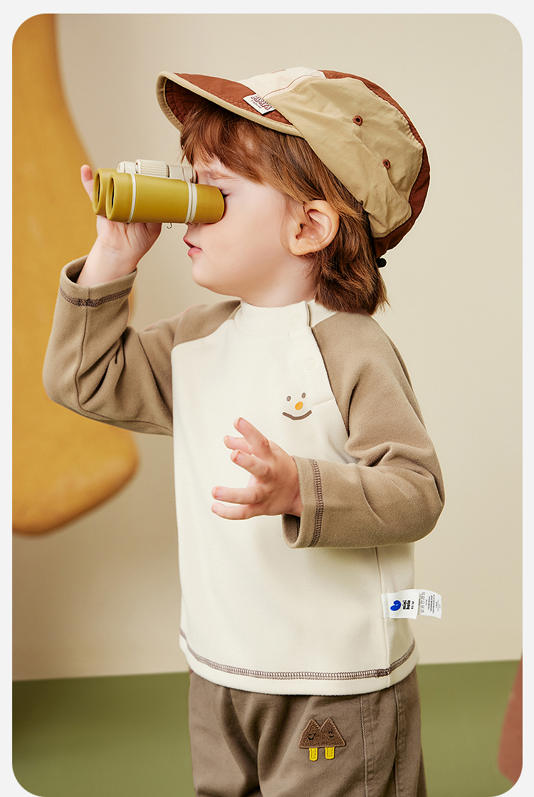 迷你巴拉宝宝亲肤T恤吸湿发热柔软亲肤双面抓绒2025冬装新款